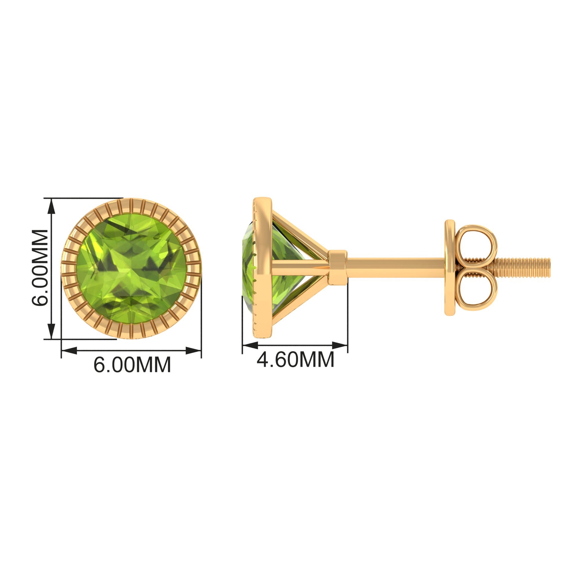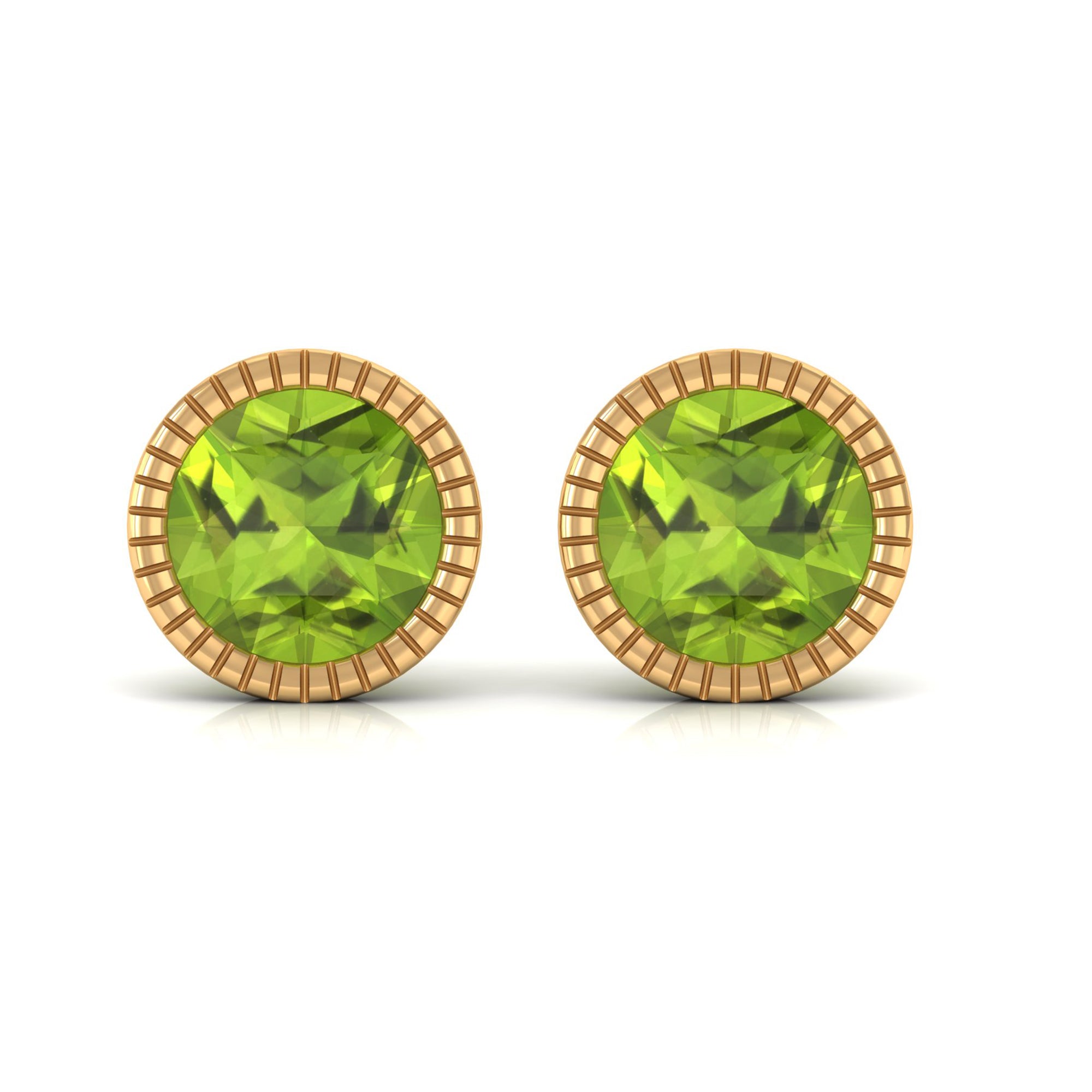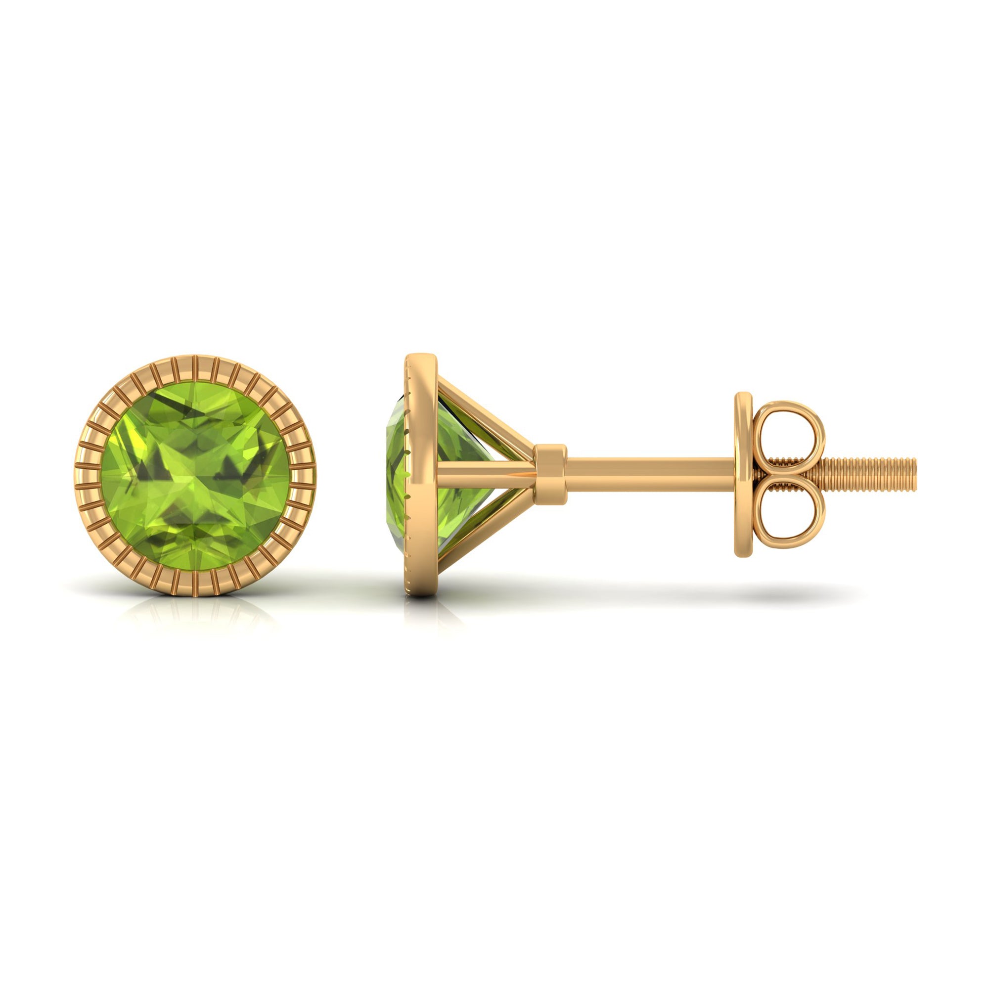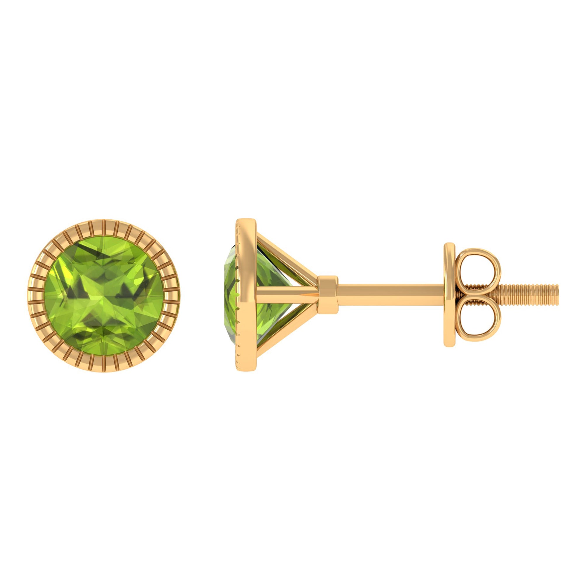 Adorn your ears with grace and sophistication by wearing these Round Peridot Solitaire Stud Earrings, delicately set in a bezel for a timeless allure.