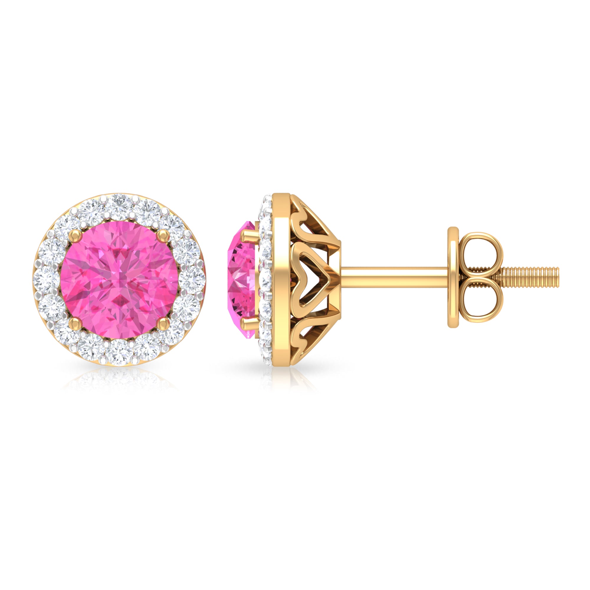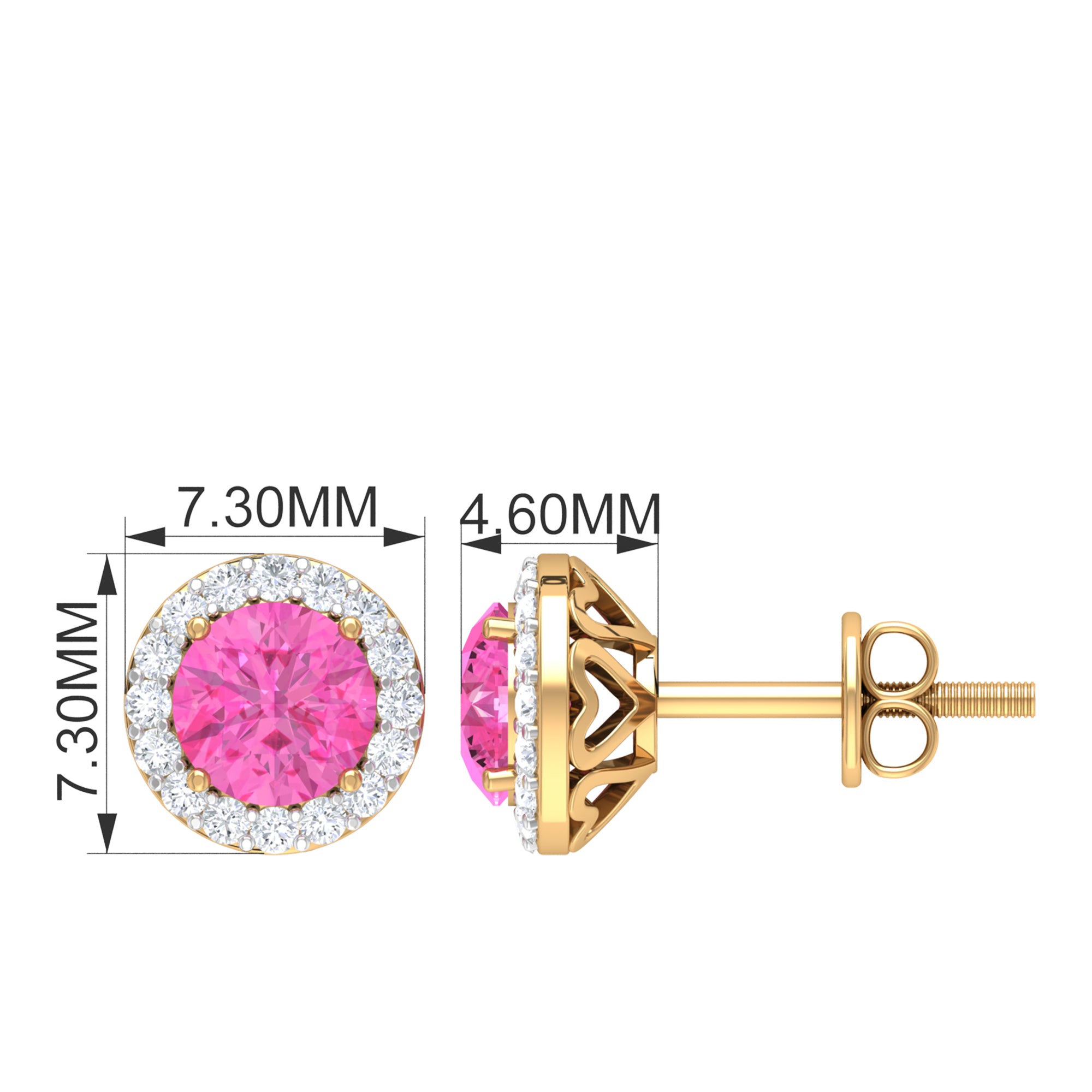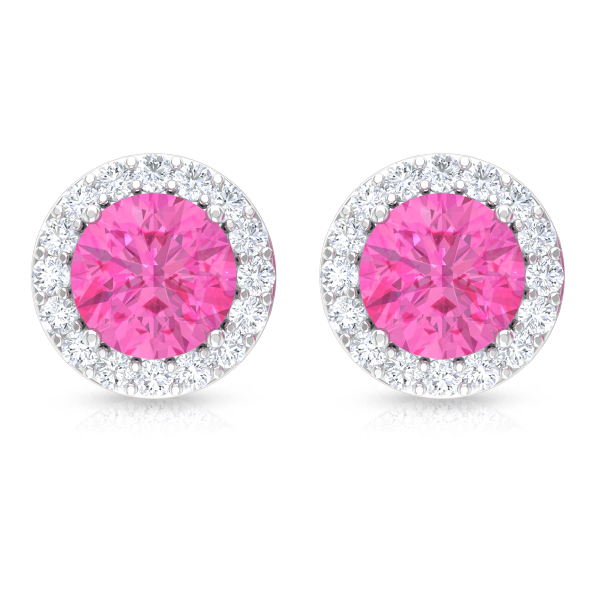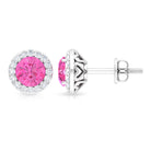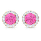 Round Pink Sapphire Halo Stud Earrings with Diamond