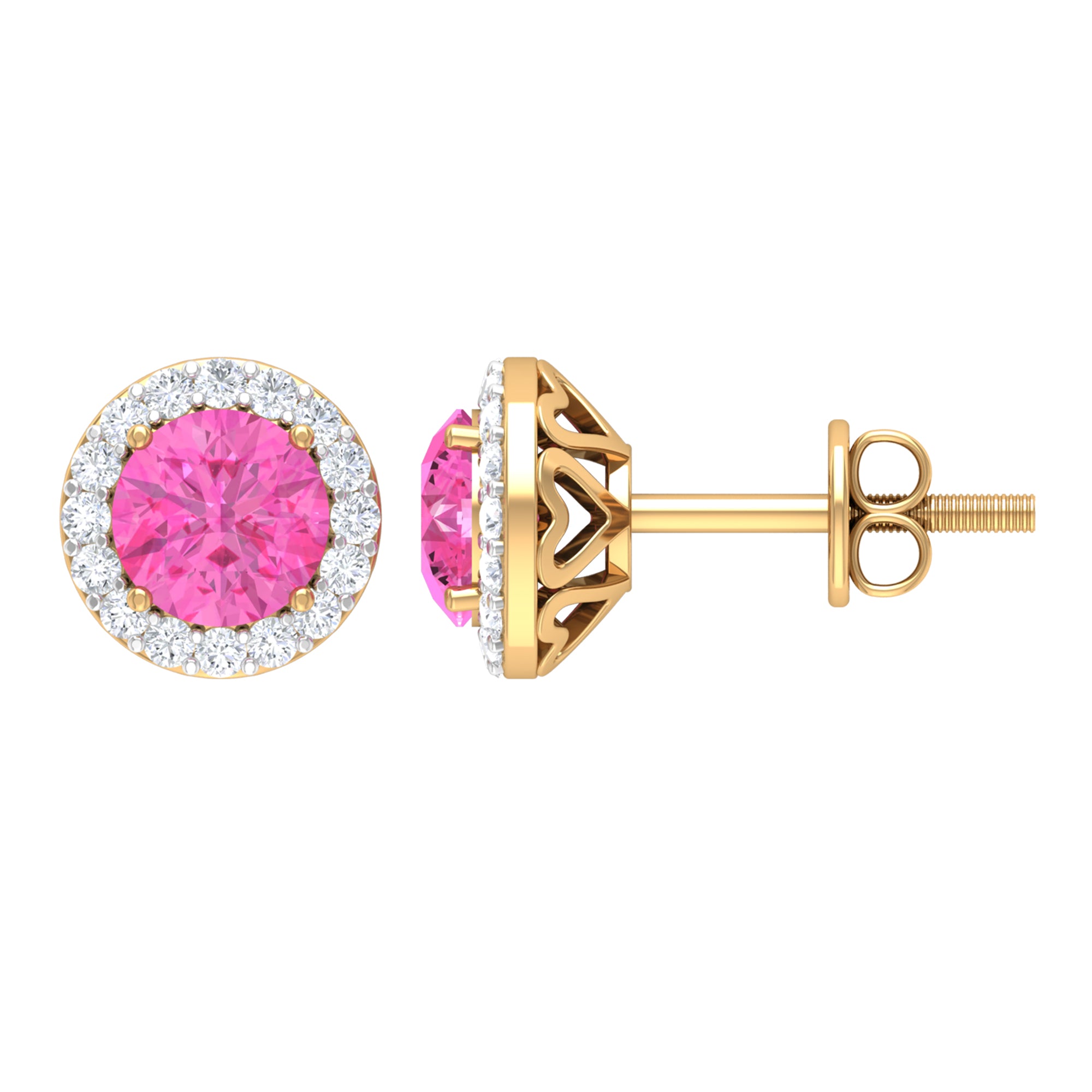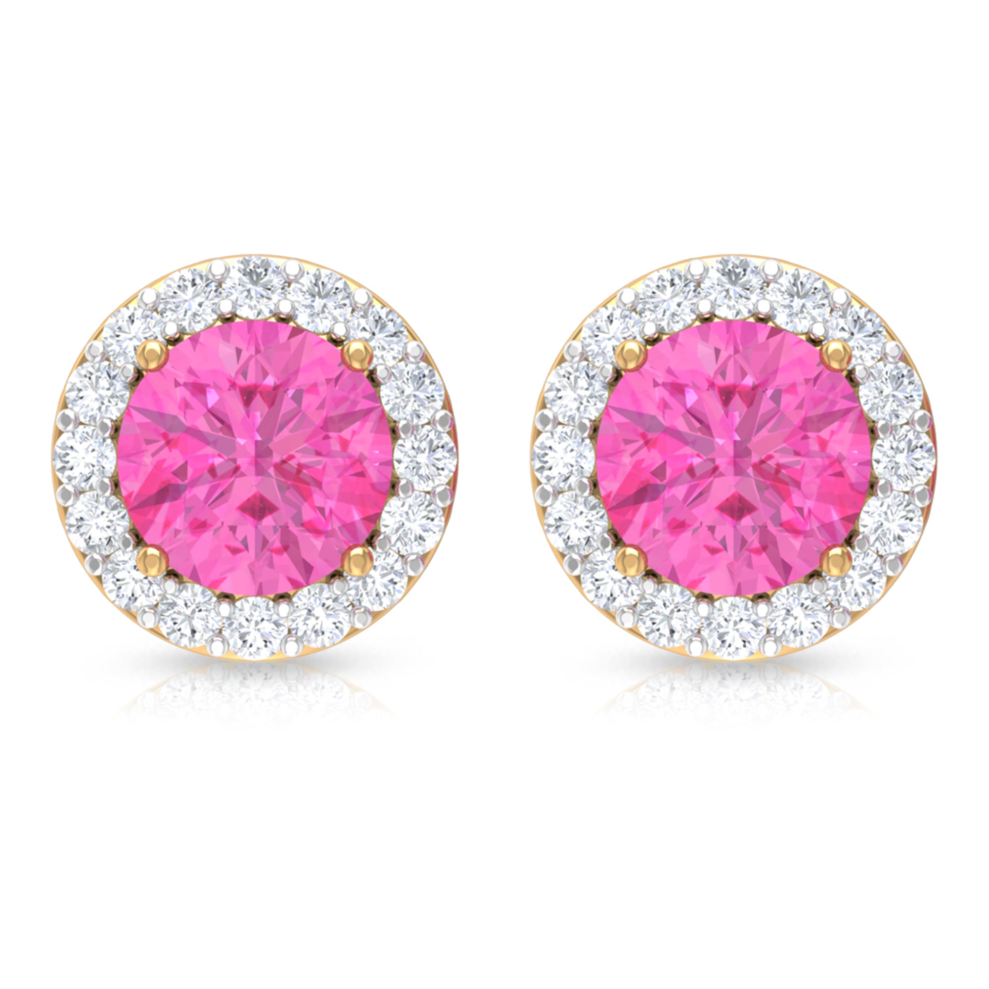 Elevate your style game with our trendy Halo Stud Earrings. Adorned with Round Cut Pink Sapphire encircled by a halo of Round Cut Diamond stones. These sapphire earrings offer high customizability, allowing you to select your preferred metal colour from the available options.