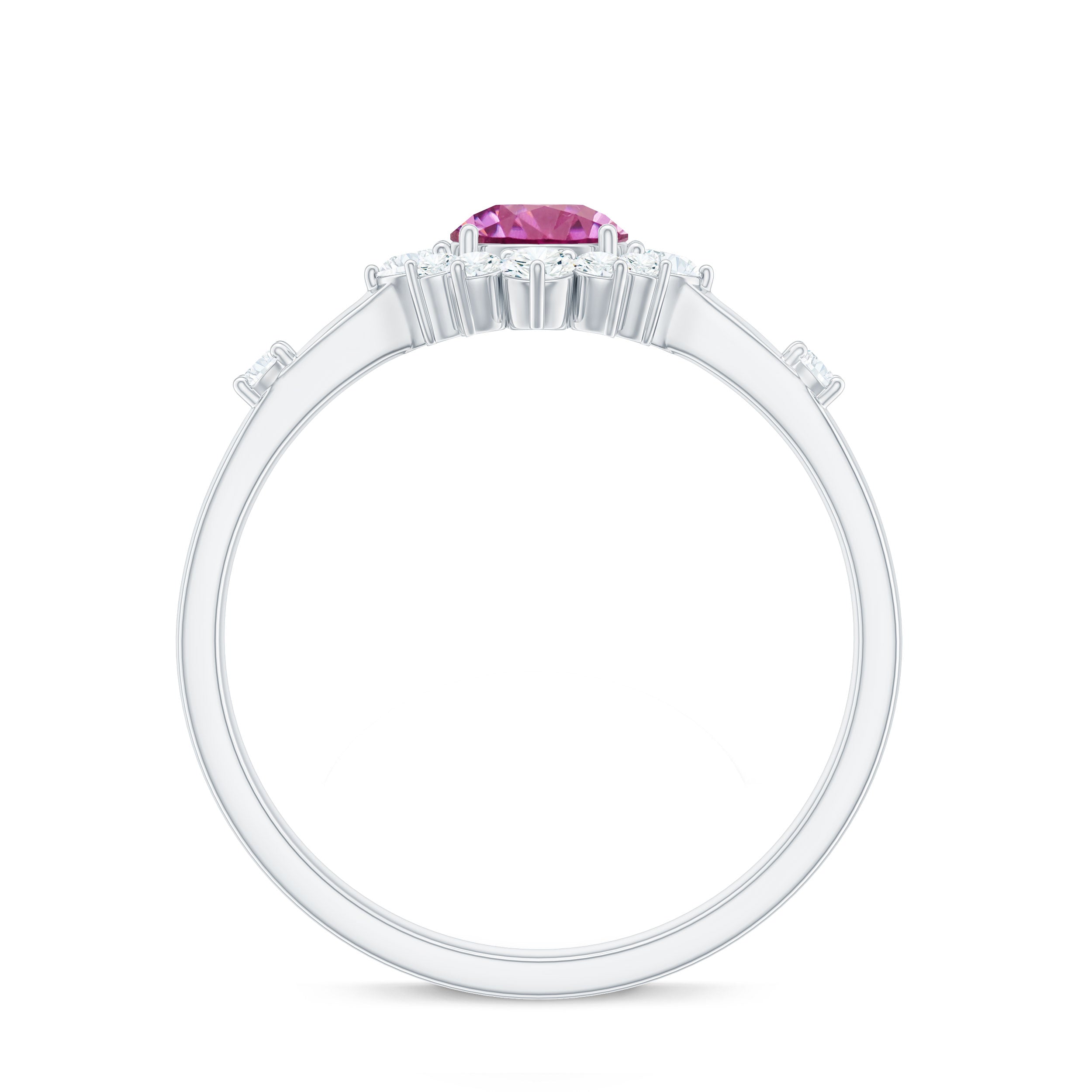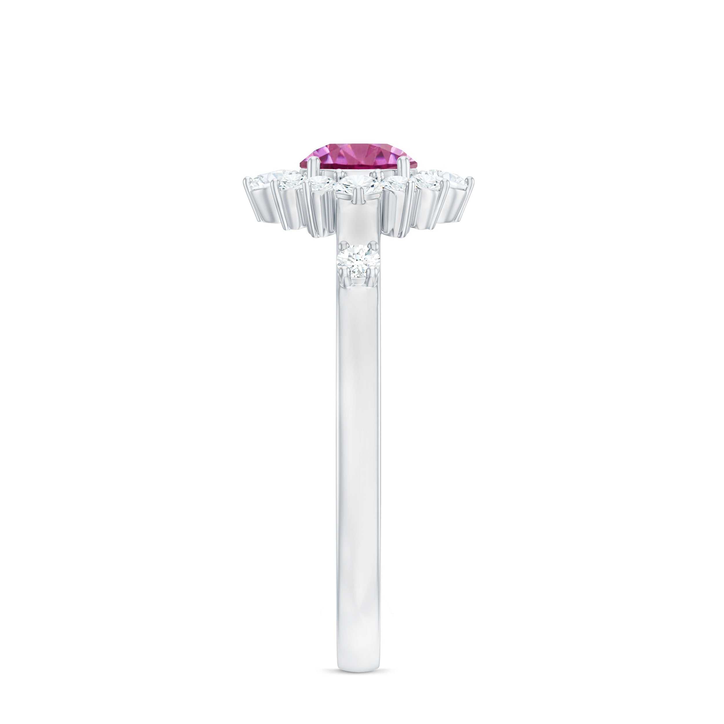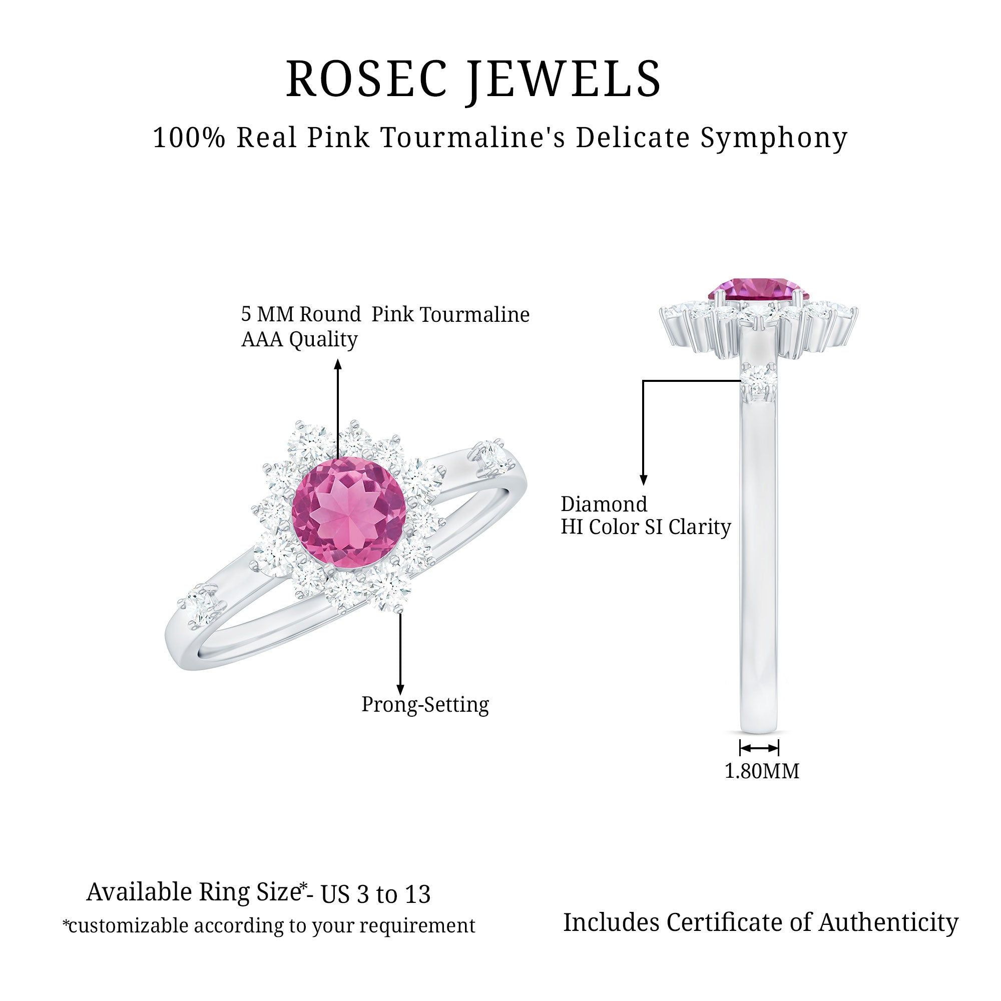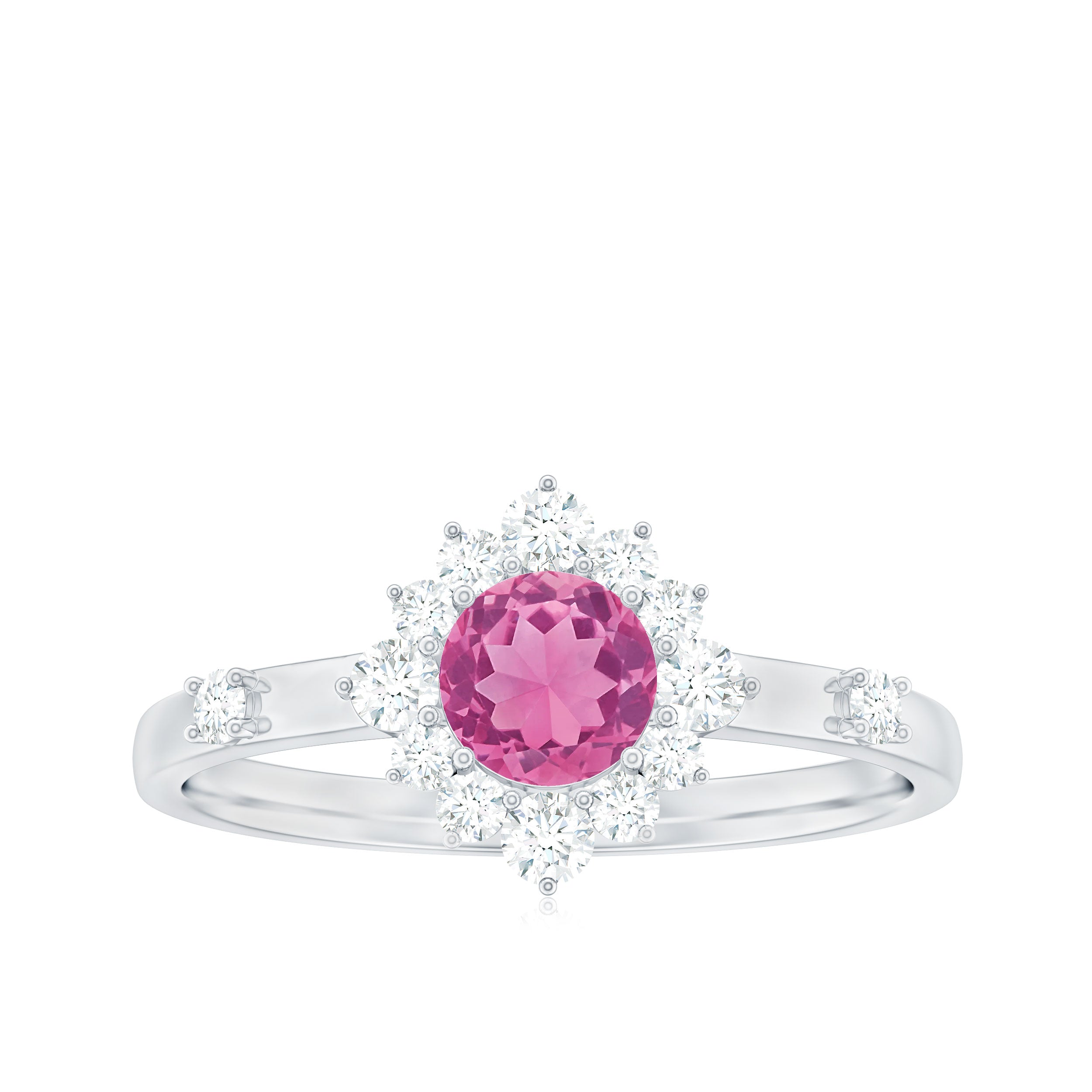 Round Pink Tourmaline Classic Halo Engagement Ring with Diamond