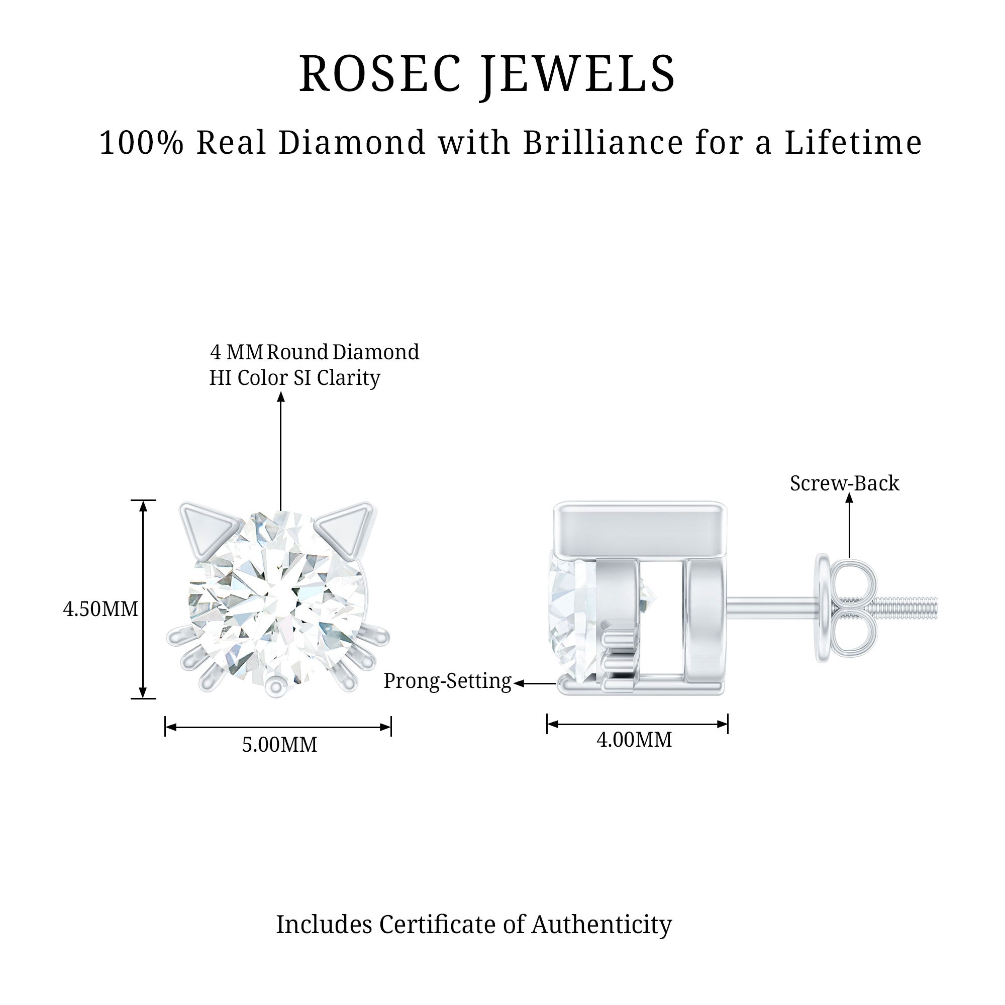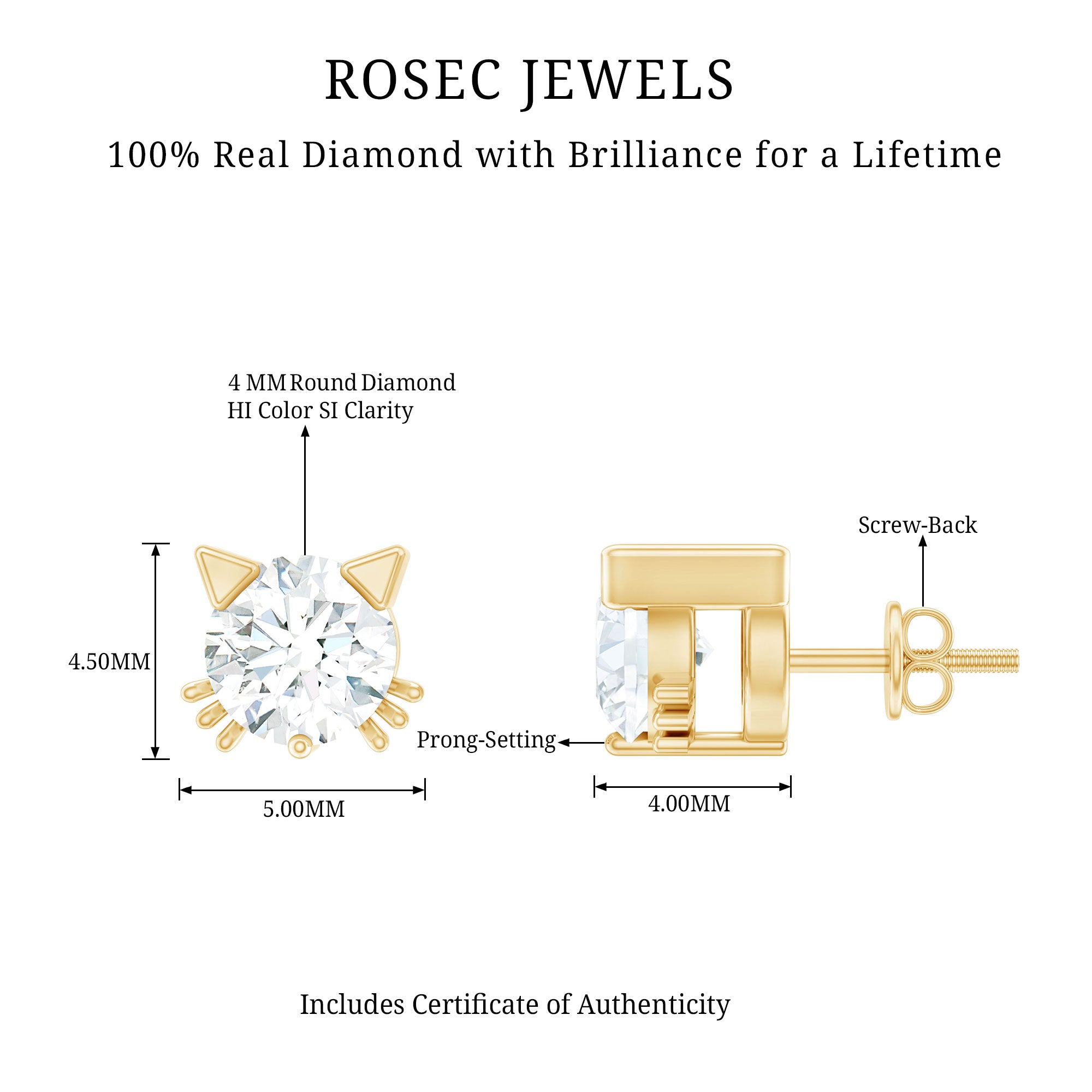 Let these Cat Earrings elevate your style with their cute design and dazzling allure. They are adorned with Round Diamond secured in prong setting adding a touch of sparkle to the overall design. Crafted with proper care and attention, these Diamond Earrings showcase a modern aesthetic suitable for both casual and formal looks. Gift these cute earrings to your dear ones and show them how much they mean to you.