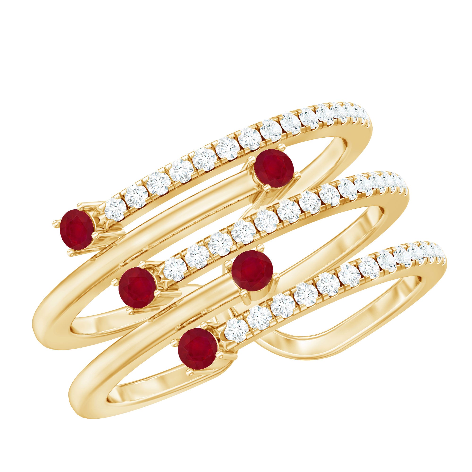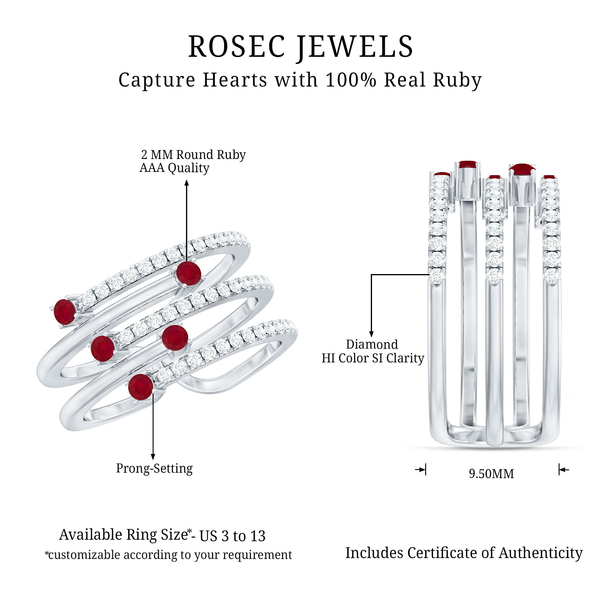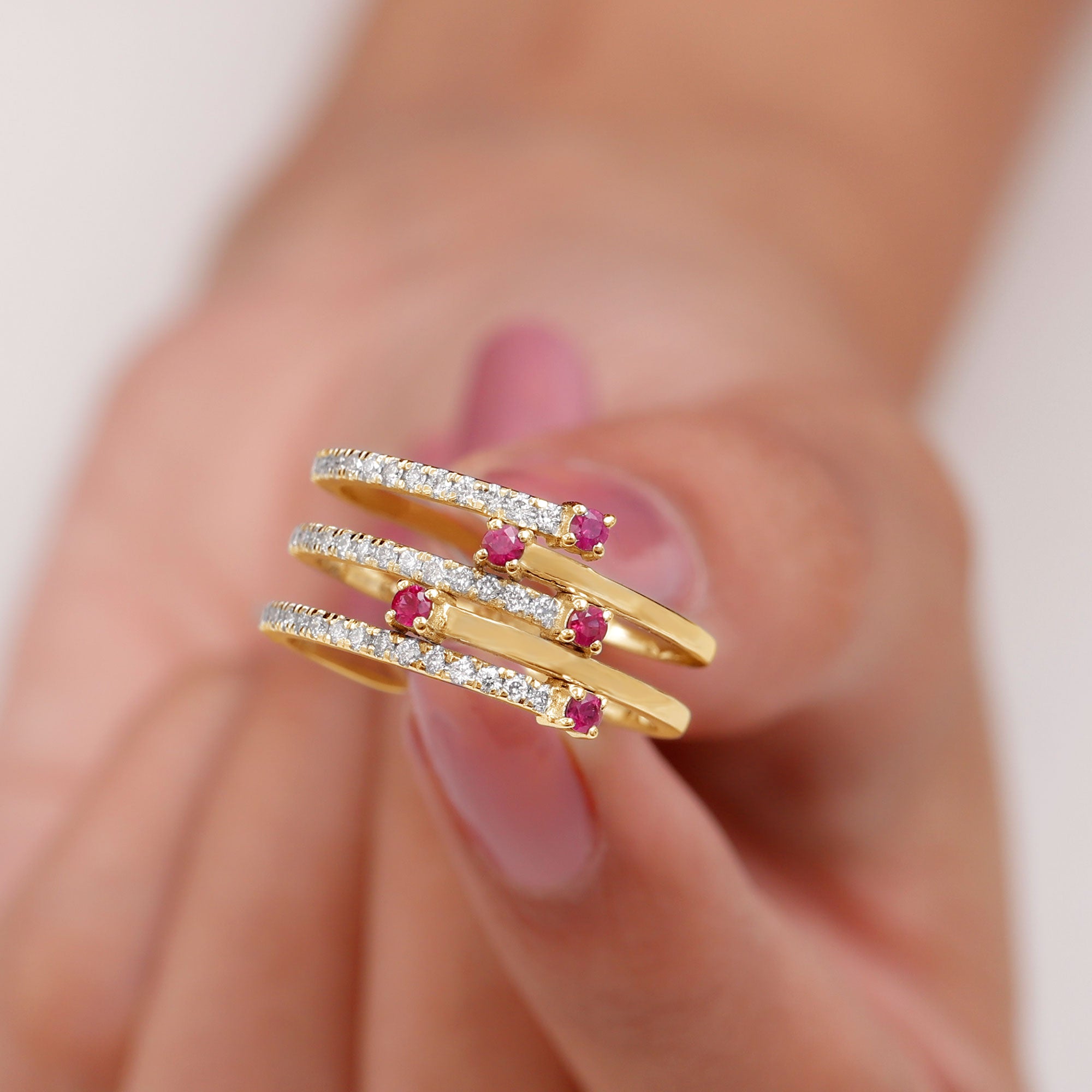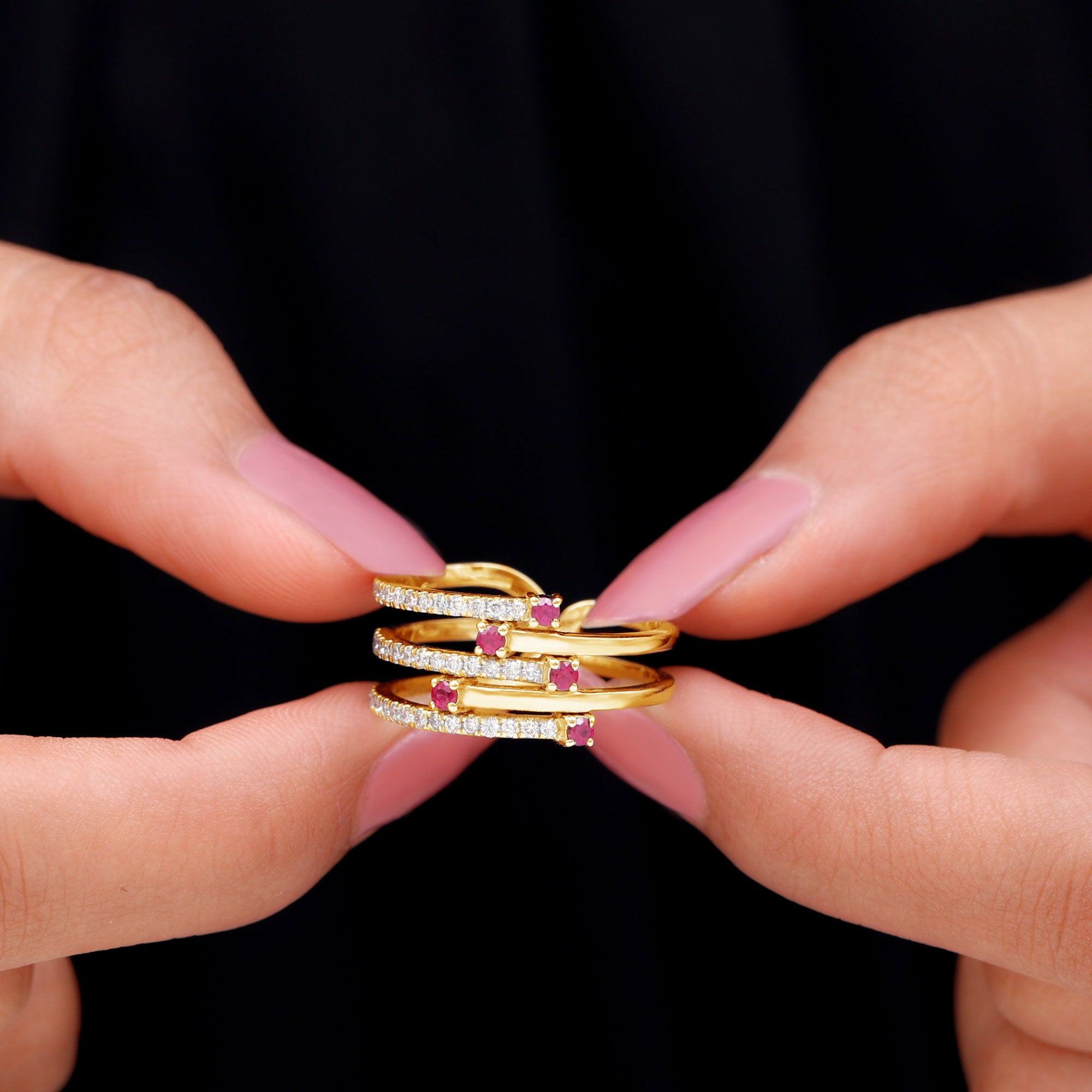 Treat yourself to the beauty and luxury of this stunning round ruby and Diamond wrap ring. This stunning Round Ruby and Diamond Wrap Ring is a perfect way to add a touch of luxury and elegance to your wardrobe. The ring features round-cut rubies in a zig-zag form, surrounded by a halo of sparkling Diamond stones. This ring is perfect for any occasion, from a night out on the town to a formal event. It is also a great gift for a loved one, especially for those born in July, as the ruby is the birthstone for that month.