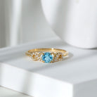 Indulge in lasting sparkle and graceful beauty with an Aquamarine and Diamond Engagement Ring designed to symbolize endless love. At the center sits a 6 MM round cut aquamarine, set securely in claw setting. Diamond accents are carefully set along the infinity shaped band, creating a continuous loop of brilliance that represents forever. The combination of aquamarine and diamonds makes the Criss Cross Engagement Ring eye-catching yet sophisticated, perfect for anyone who enjoys subtle luxury with meaningful detail. Aquamarine is also the March birthstone, making this Infinity Promise Ring a thoughtful choice for someone born in that month or for anyone who appreciates the calming energy of this beautiful gemstone. Its timeless design fits beautifully as a promise ring, engagement ring, or a special gift to mark an important moment. Whether worn alone or paired with other jewelry, the Aquamarine Engagement Ring brings elegance and sparkle to any wardrobe.