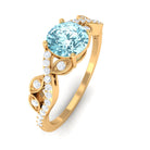 Representing the harmony between nature and everlasting love, this Aquamarine Engagement Ring is a breathtaking ode to romance and artistry. At its center glows a 6 mm Round Shape Aquamarine gemstone set in Prong Setting, its blue hue reminiscent of clear skies and gentle waters, a perfect symbol of peace, purity and emotional depth. The true magic of this Nature Inspired Engagement Ring lies in its enchanting band with Leaf Motifs, gracefully adorned with sparkling Diamond stones that shimmer like morning dew resting on delicate petals. Crafted with exceptional perfection and care, this Aquamarine Diamond Engagement Ring is designed for the woman whose soul is as graceful and radiant as the natural world itself. Whether chosen for a proposal, a meaningful milestone or a heartfelt gift, this Solitaire Engagement Ring captures the essence of love that grows and flourishes with time. Presented in a signature jewelry box and available in various ring sizes, this Aquamarine Ring for Women is ready to become a poetic reminder that true love is ever-blooming and endlessly beautiful.