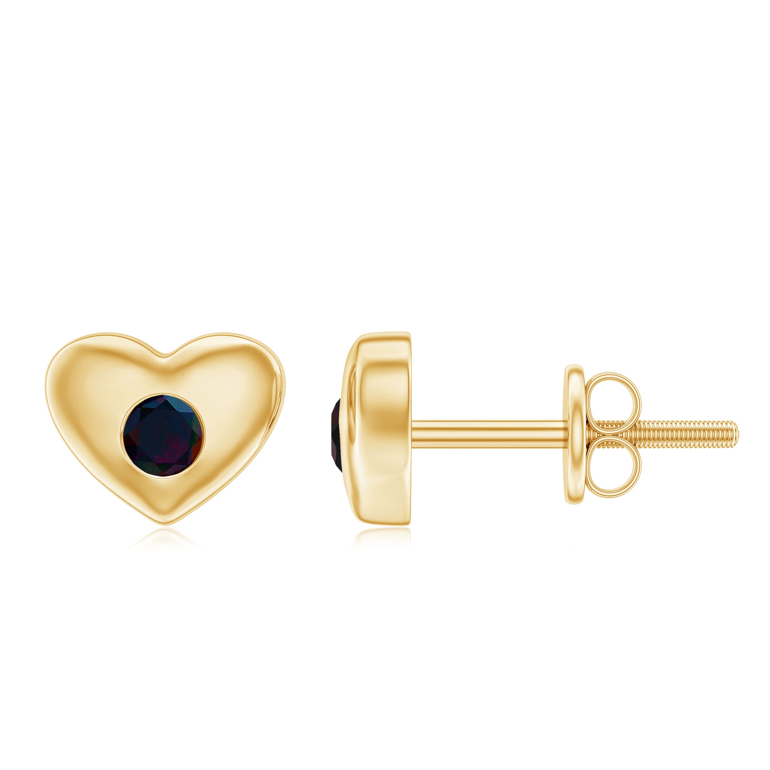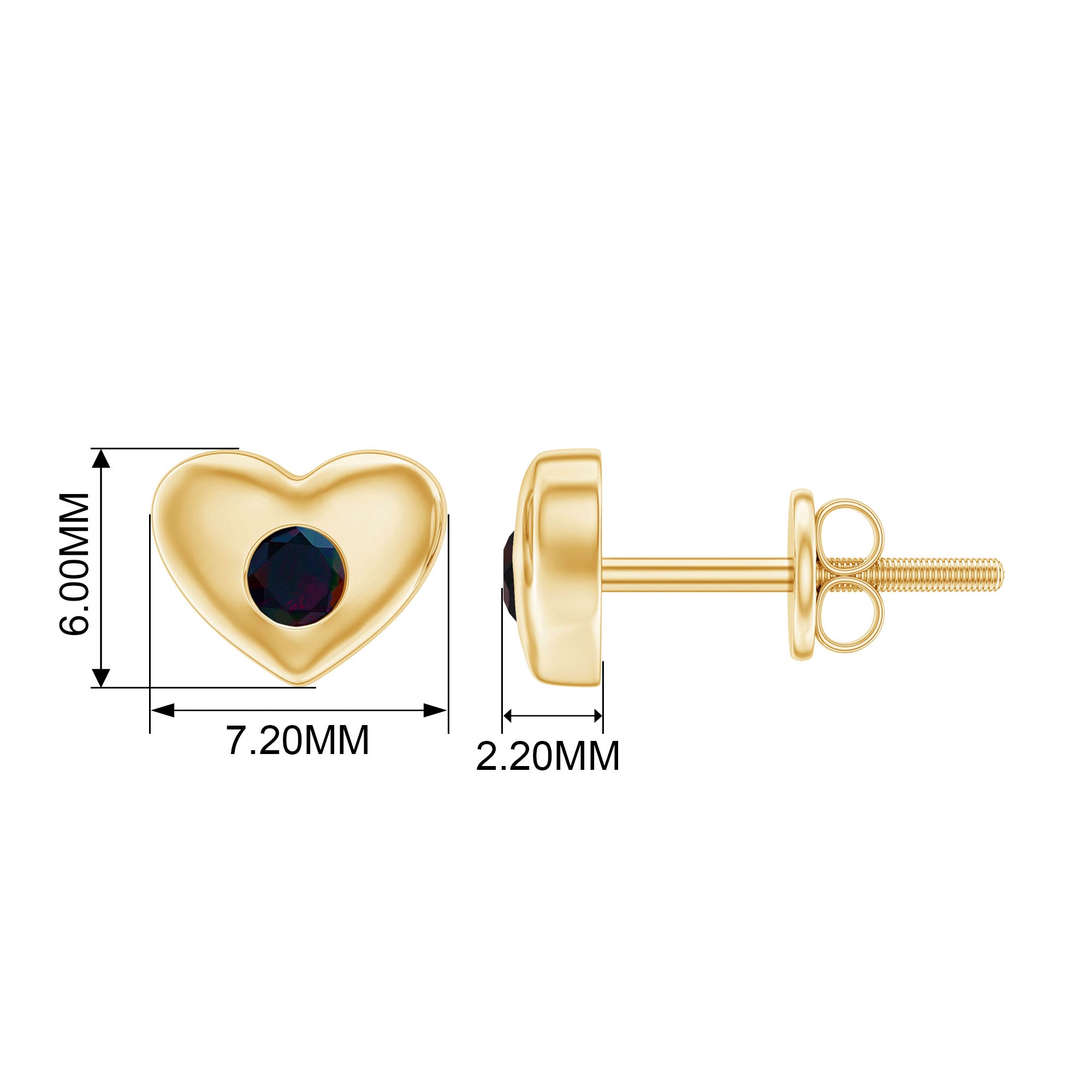 Add a touch of love to your jewelry collection with these charming Heart Stud Earrings, featuring a round-shaped Black Opal gemstone as a solitaire in a gypsy setting. Crafted from solid gold, these Black Opal earrings are the perfect way to show your affection and add a pop of color to any outfit.