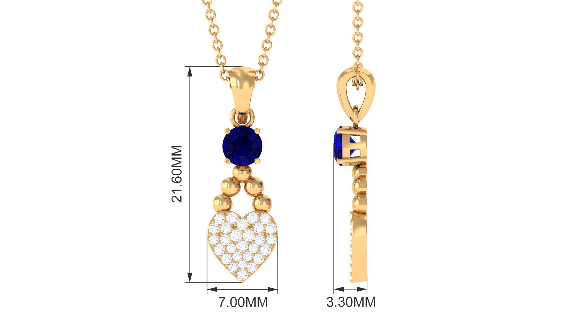 Round Shape Blue Sapphire and Diamond Heart Pendant