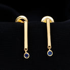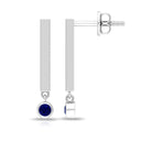 Round Shape Blue Sapphire and Gold Bar Drop Earrings for Women