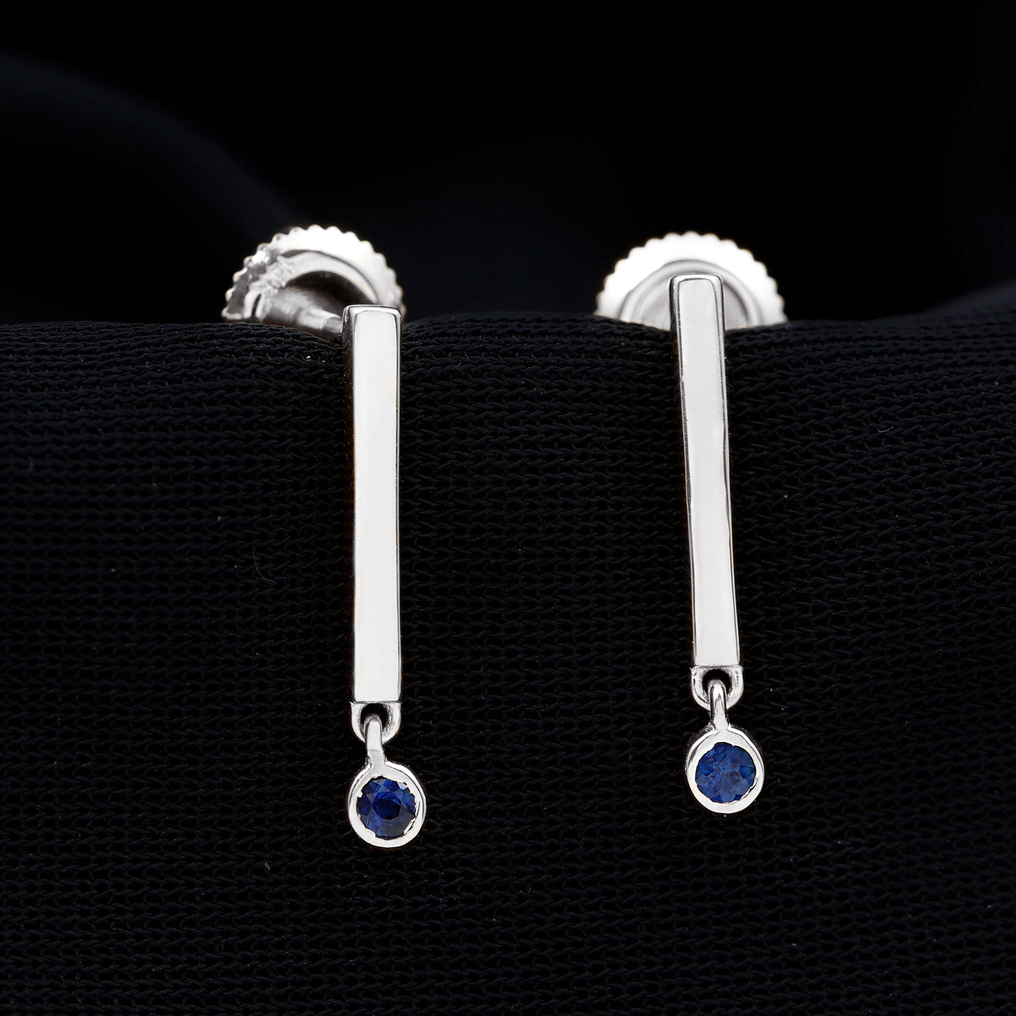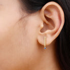 As unique as you these Gold Bar Drop Earrings with a Round Shape Blue Sapphire in a Bezel Setting, these will enhance your style and set you apart from the crowd.