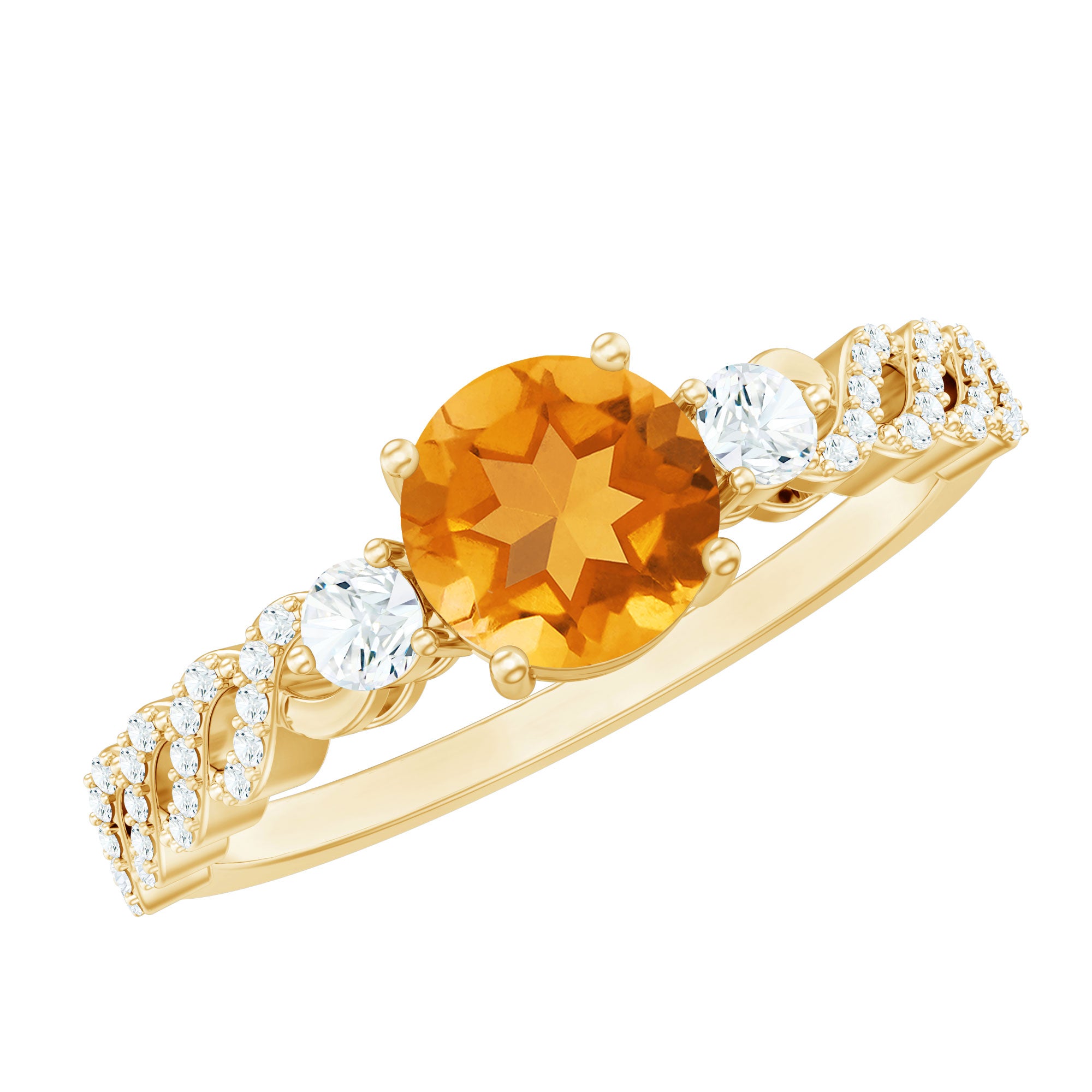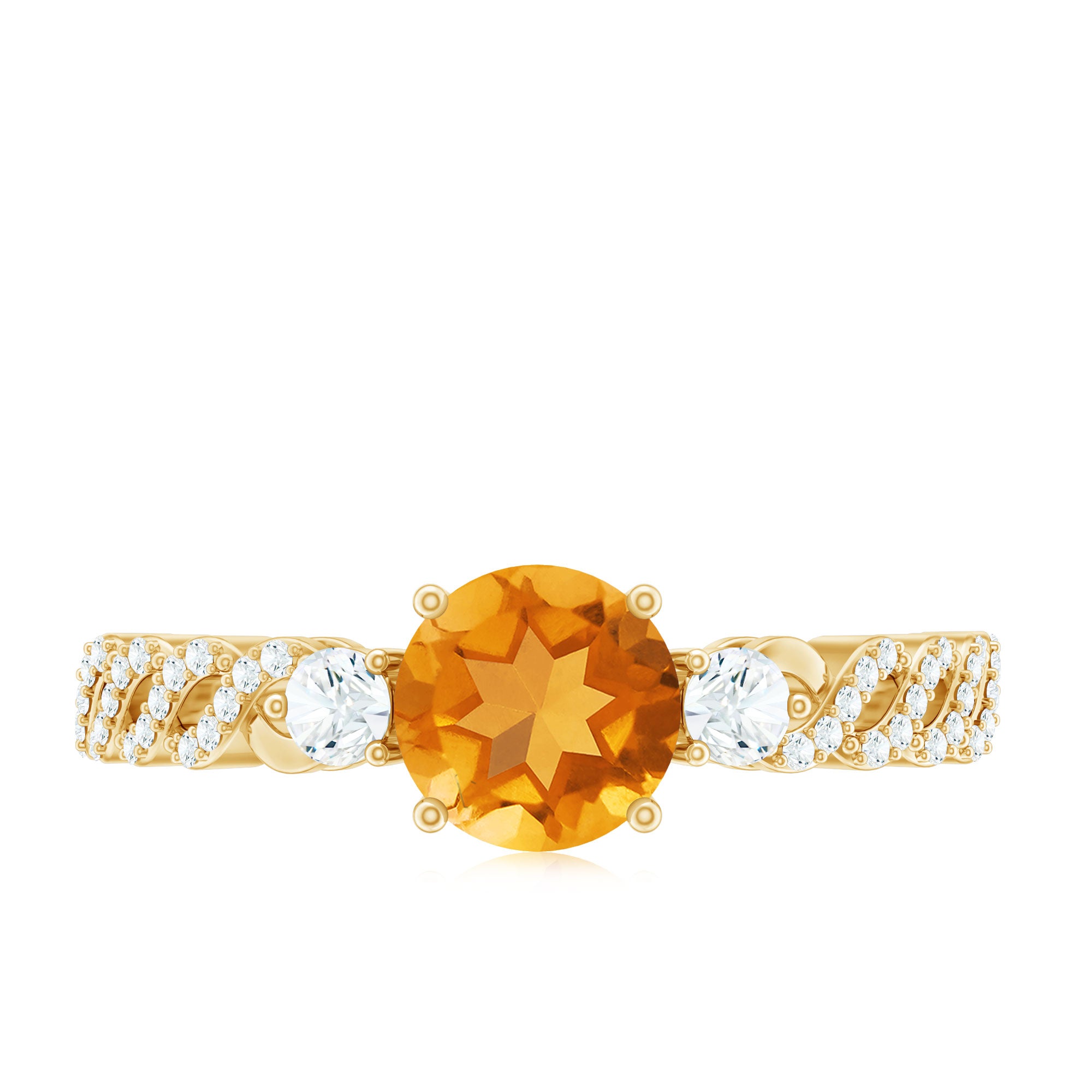 Round Shape Citrine Designer Engagement Ring with Diamond Side Stones