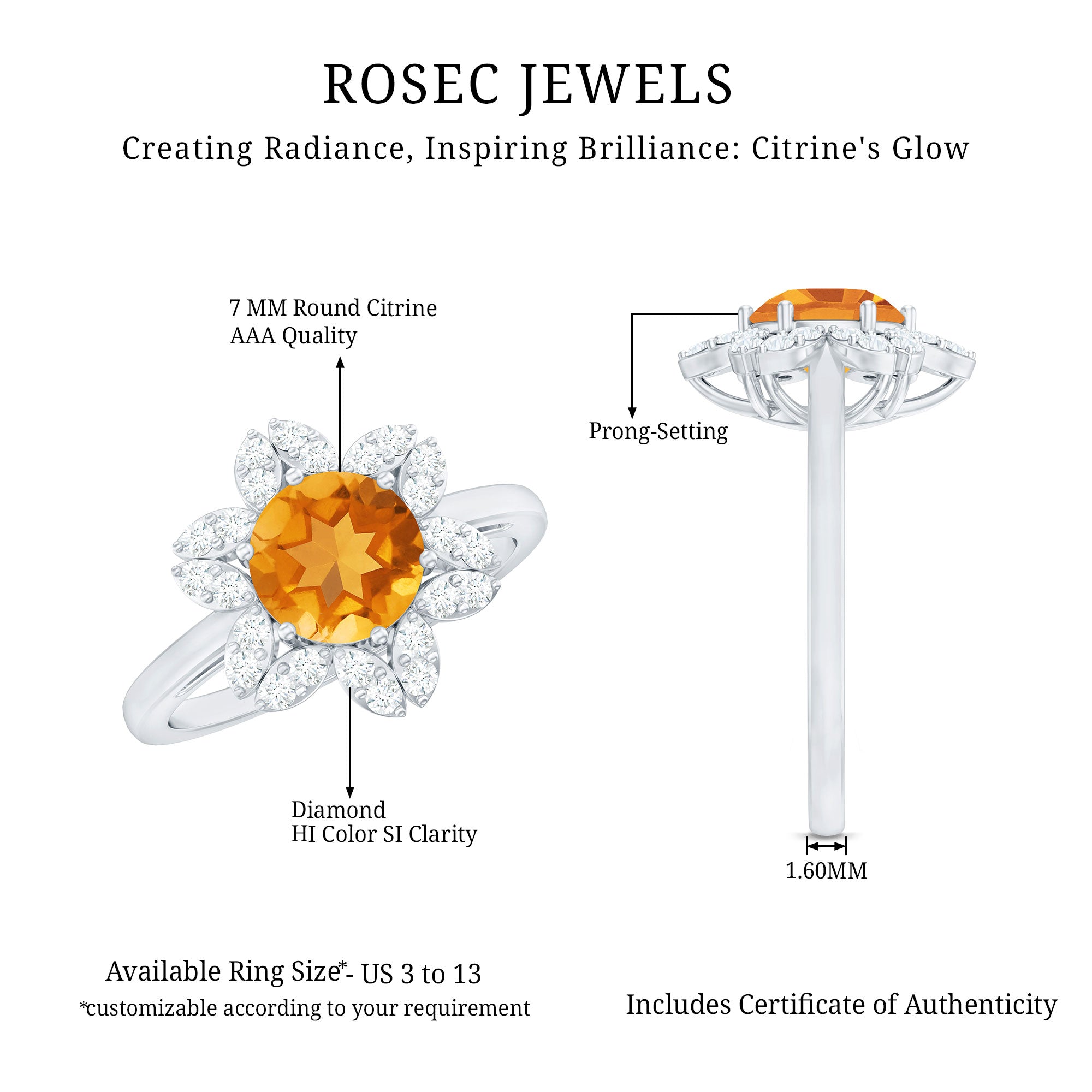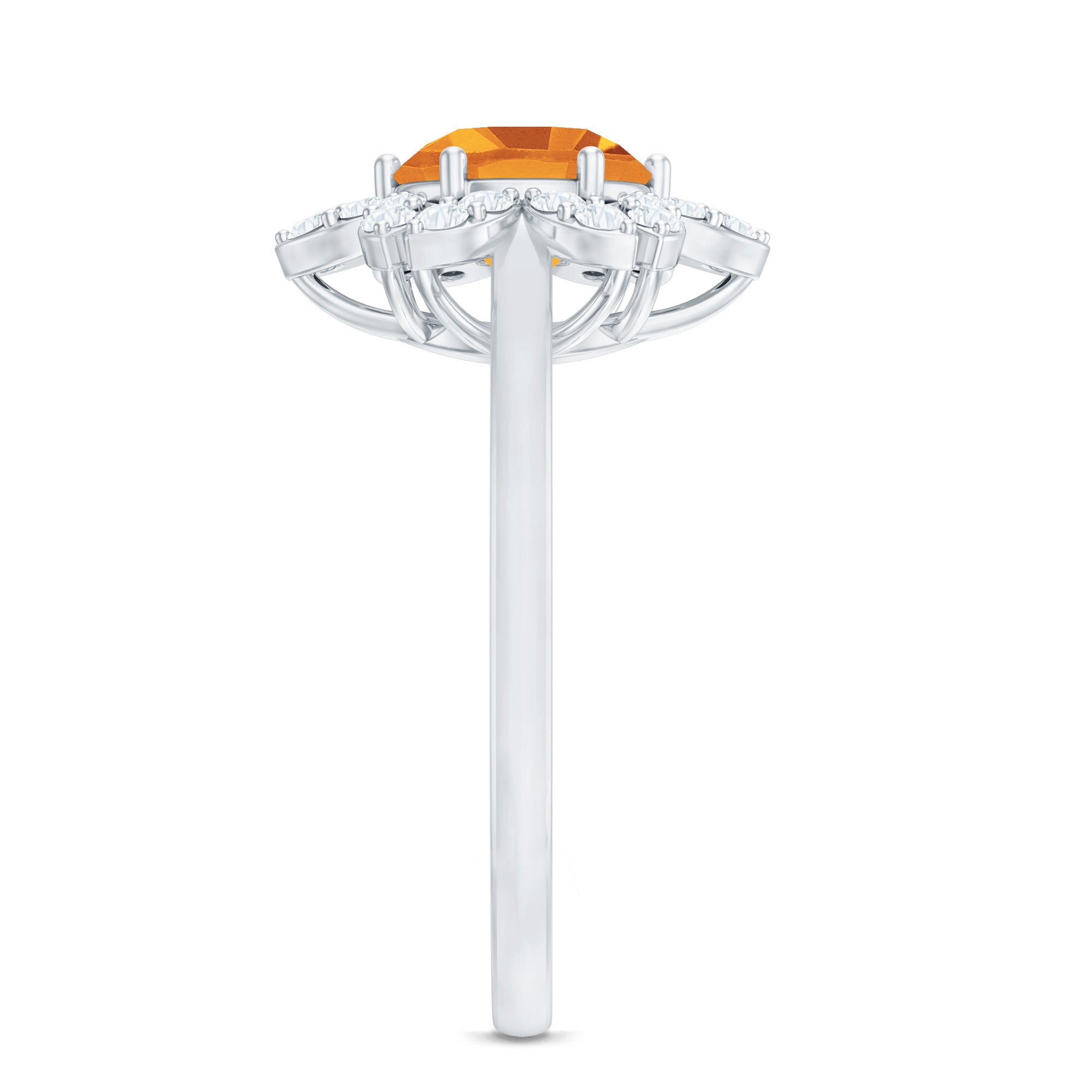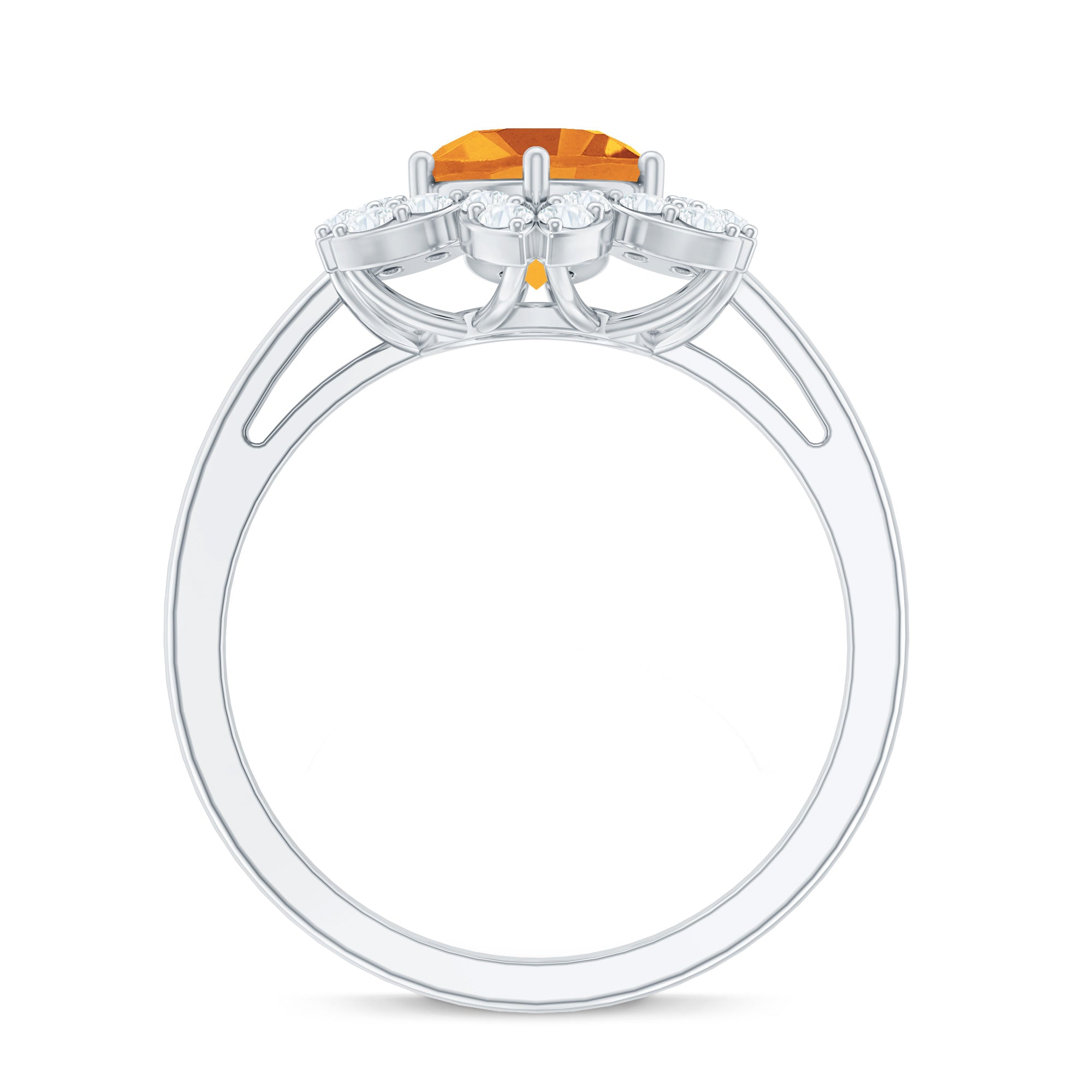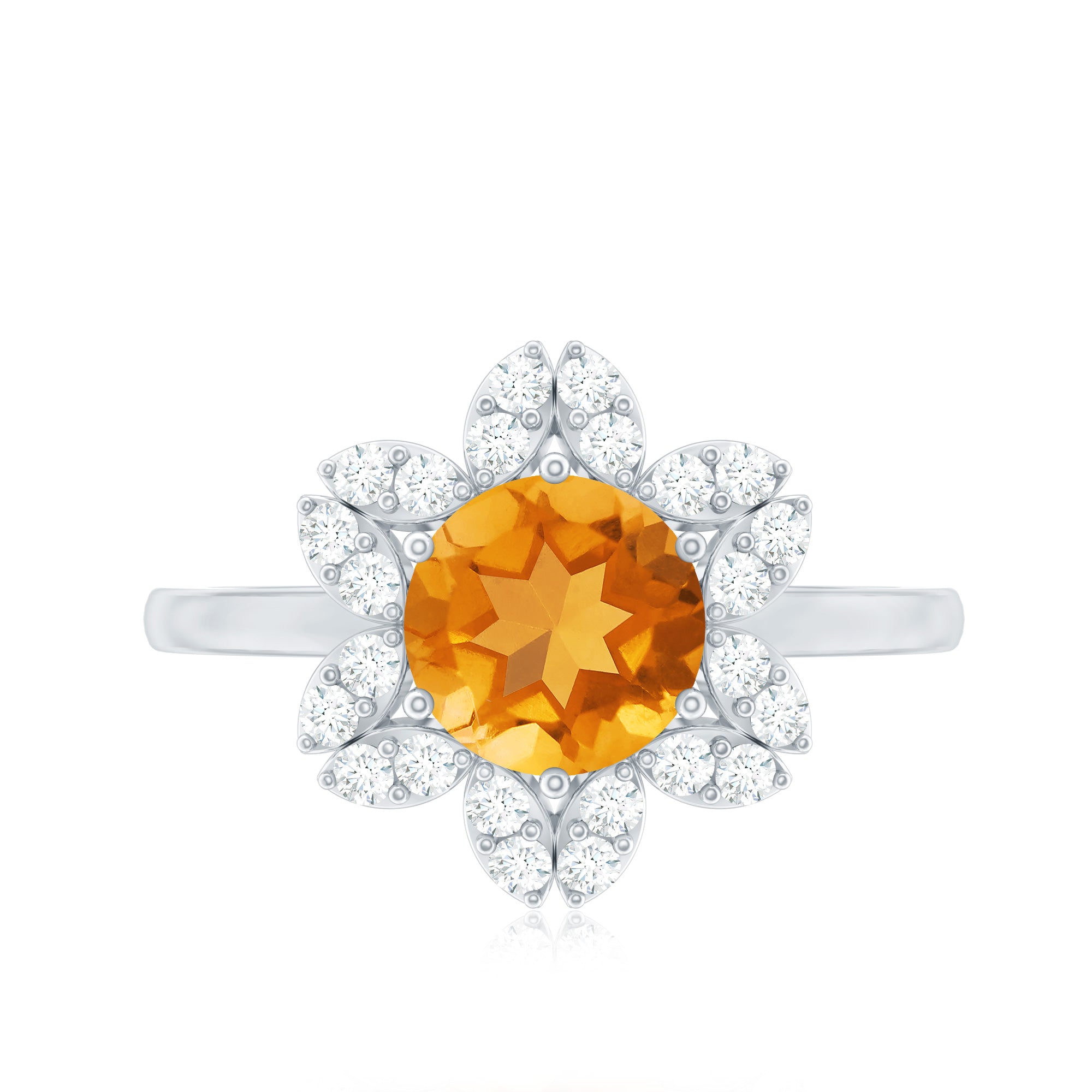 Round Shape Citrine Flower Ring with Diamond Halo