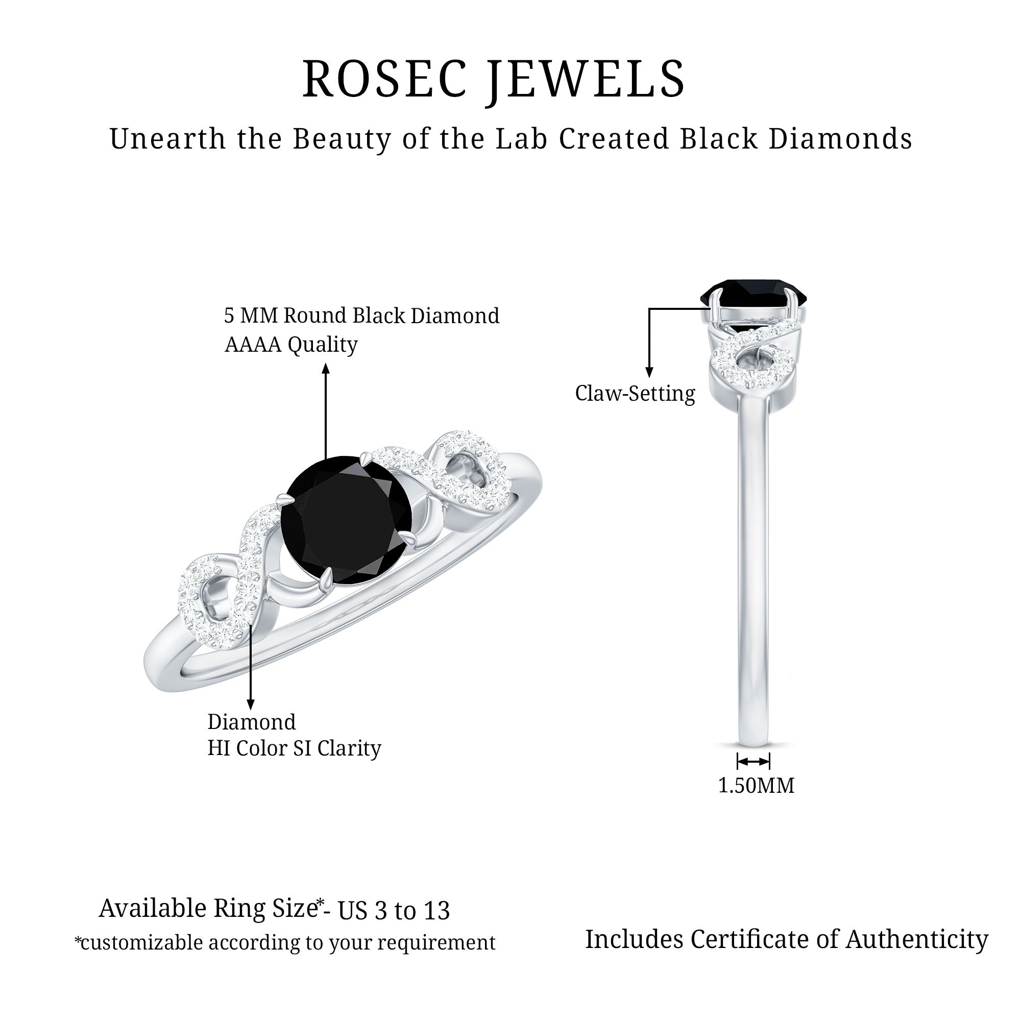 Round Shape Created Black Diamond and Diamond Infinity Engagement Ring