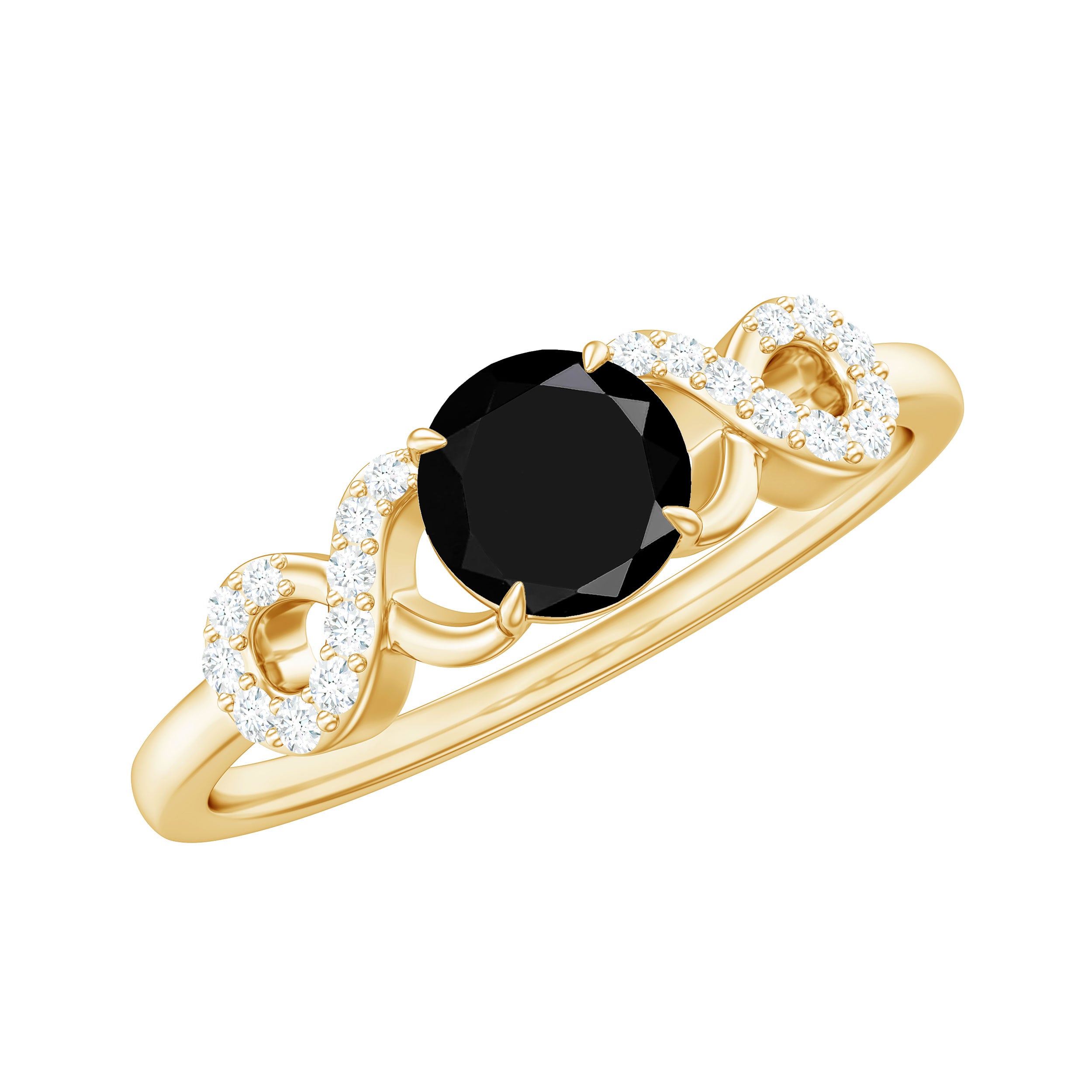 Round Shape Created Black Diamond and Diamond Infinity Engagement Ring