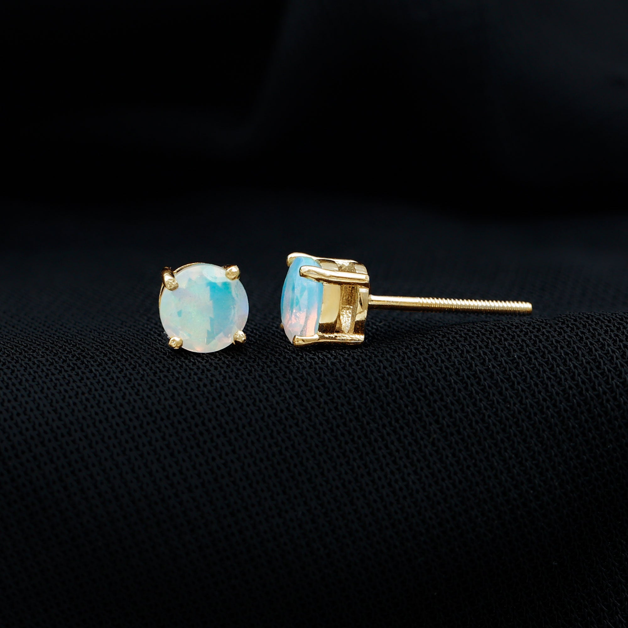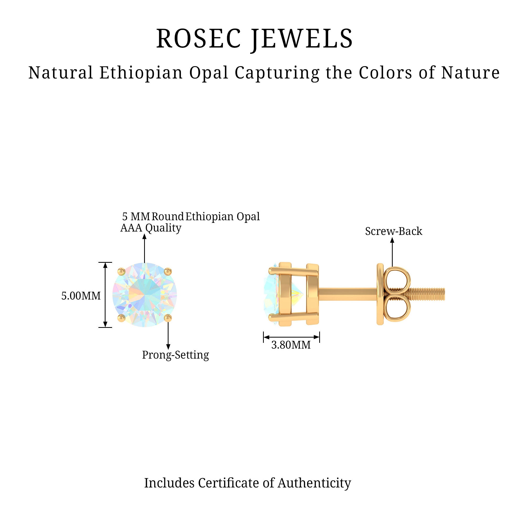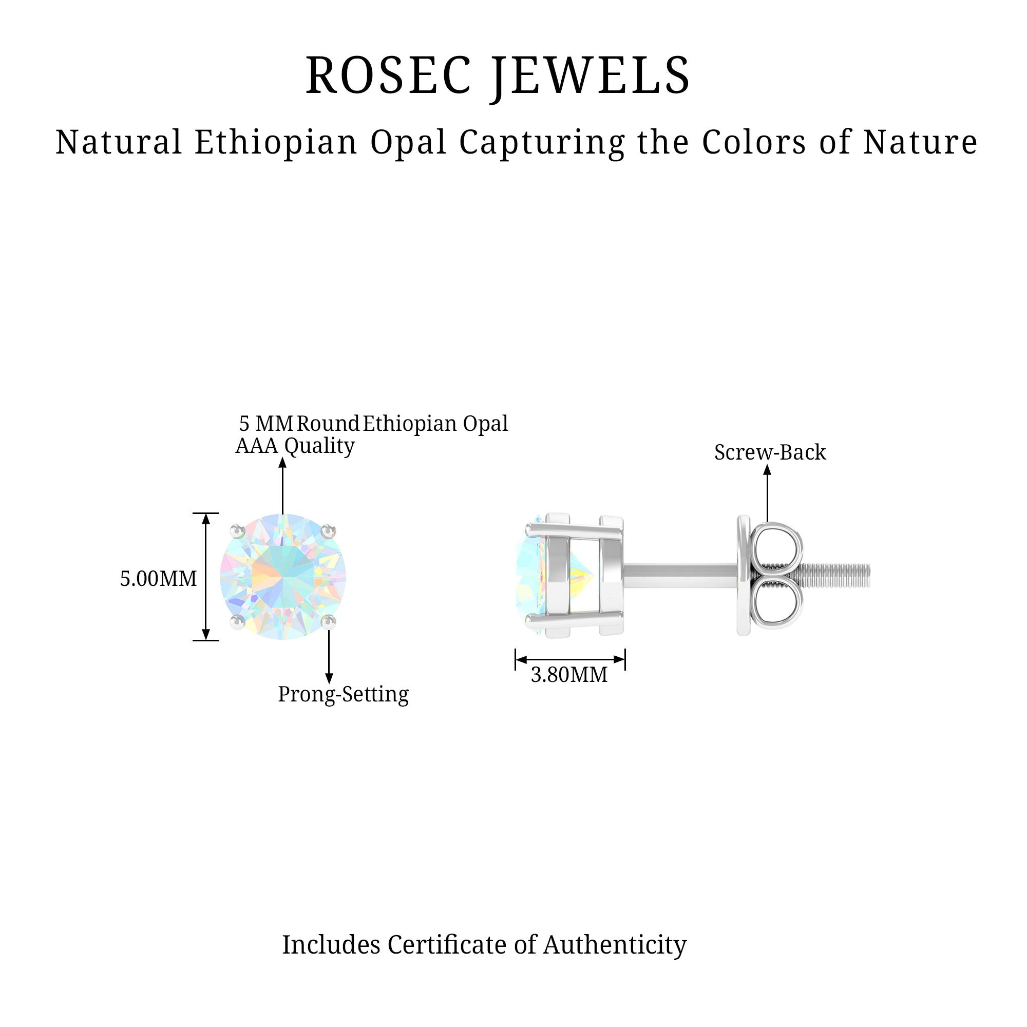 Round Shape Genuine Ethiopian Opal Solitaire Stud Earrings