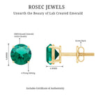 Round Shape Lab Grown Emerald Solitaire Stud Earrings