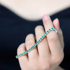 Make your gift extra special with this beautiful Lab Created Emerald Tennis Bracelet. Featuring sparkling round shaped lab created emeralds, each stone is carefully set in secure prong setting to ensure both safety and shine. This elegant Emerald Bracelet is designed as an eternity style, meaning the emeralds go all the way around, symbolizing endless love and appreciation. Perfect for weddings, special occasions, or everyday wear, this Eternity Bracelet adds a touch of timeless beauty to any outfit. It also works wonderfully as a layering piece, allowing you to pair it with another bracelet for a stylish and personalized look. The lab created emeralds used in this bracelet are eco-friendly, making it a thoughtful choice for those who care about sustainability and the environment. More than just jewelry, this Green Tennis Bracelet is a meaningful gift that your loved one will treasure for years to come. Whether given for a birthday, anniversary, or just to show how much you care, it is a symbol of lasting affection and style.