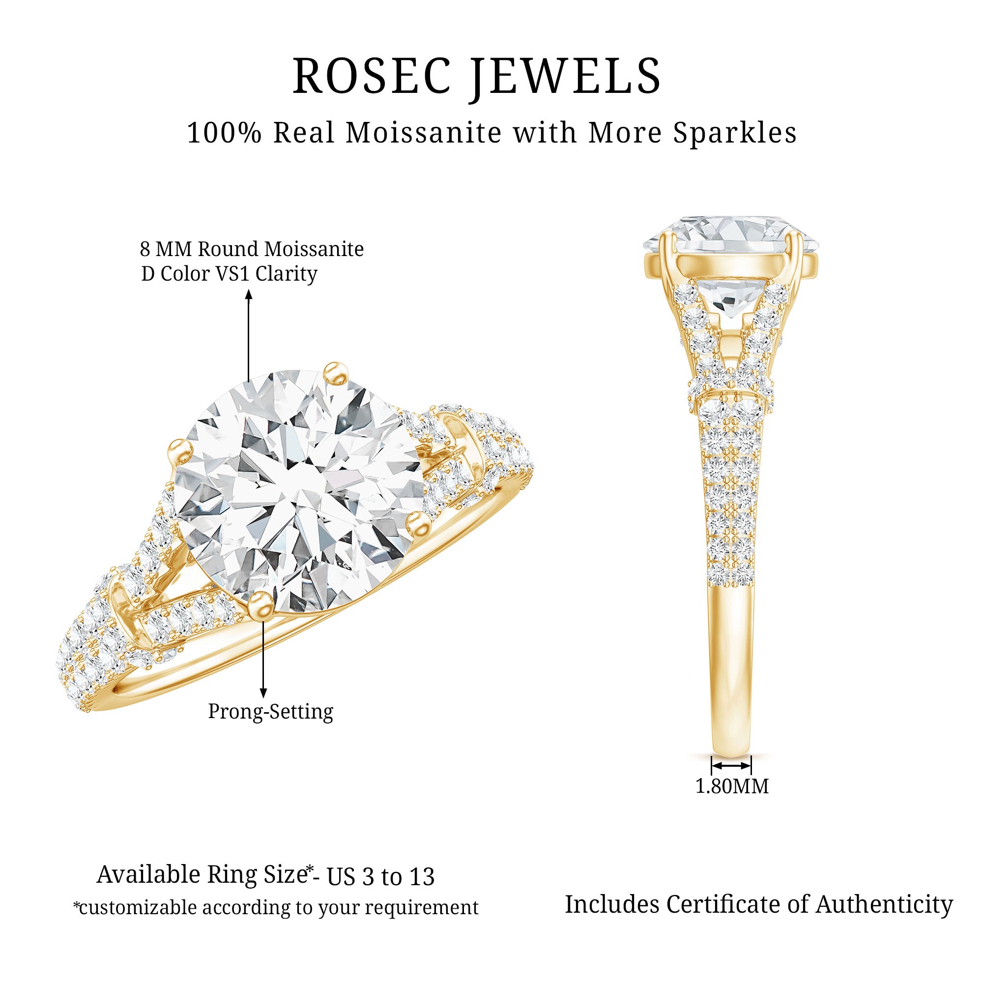 Round Shape Moissanite Solitaire Engagement Ring in Split Shank