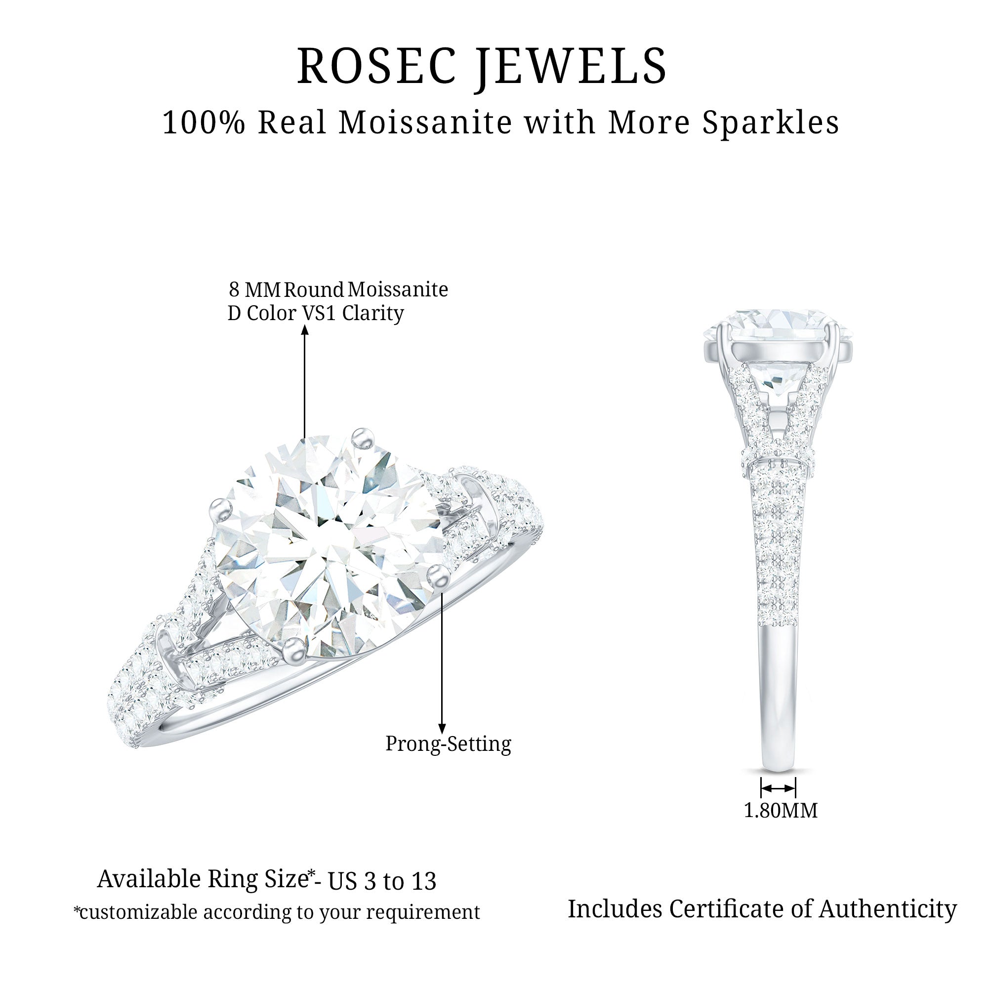 Round Shape Moissanite Solitaire Engagement Ring in Split Shank