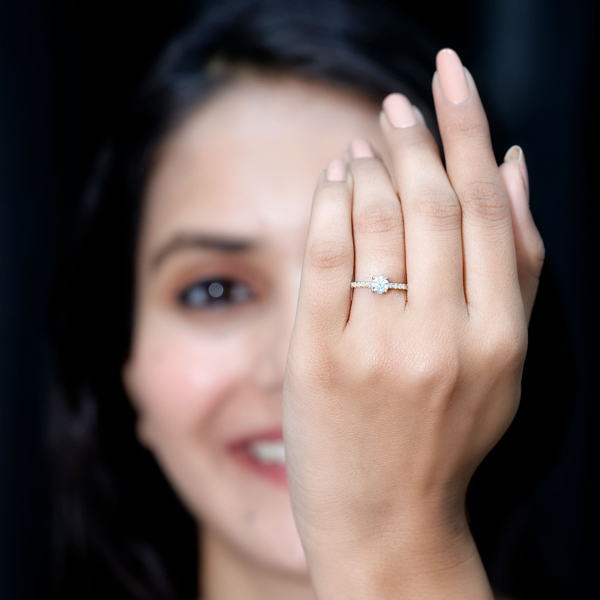 Round Shape Moissanite Solitaire Promise Ring with Side Stones