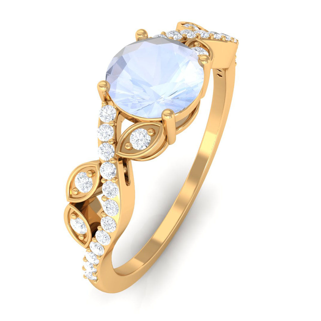 Round Shape Moonstone Designer Engagement Ring with Diamond
