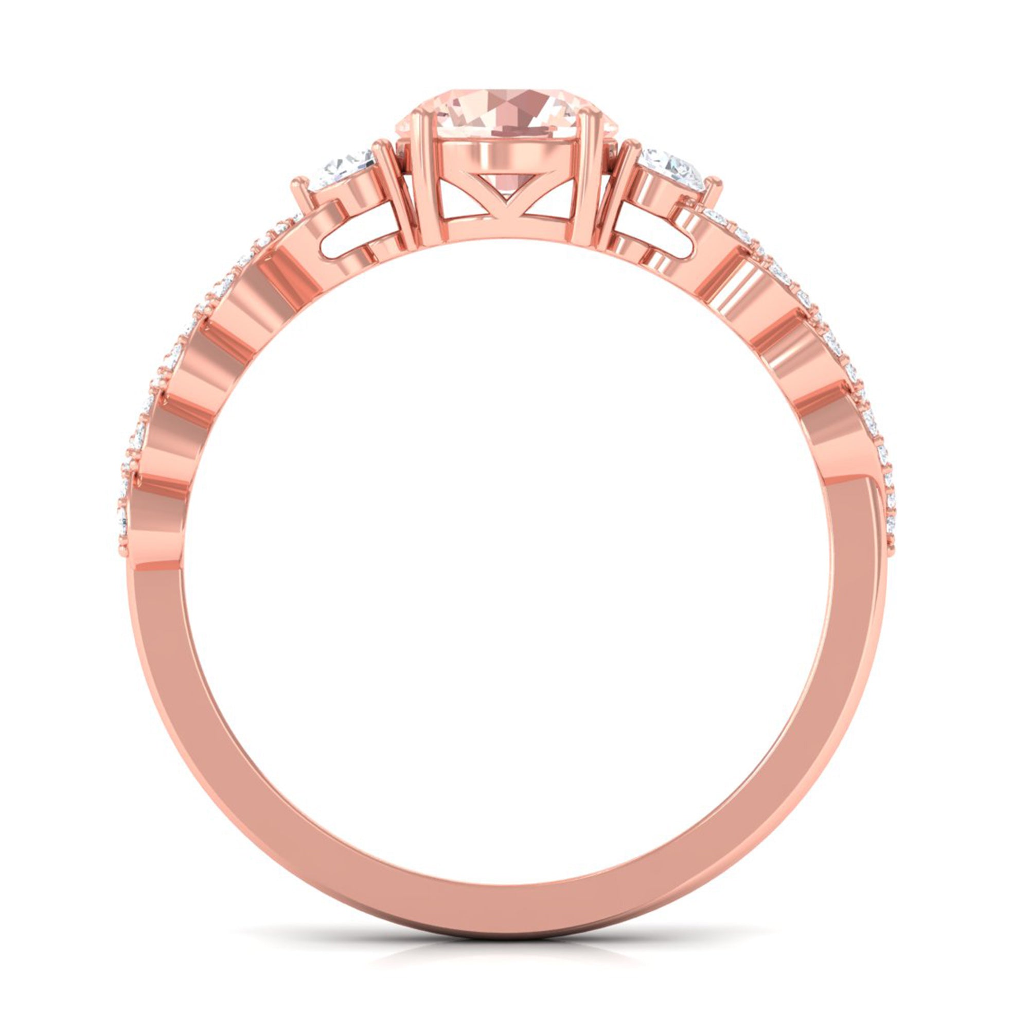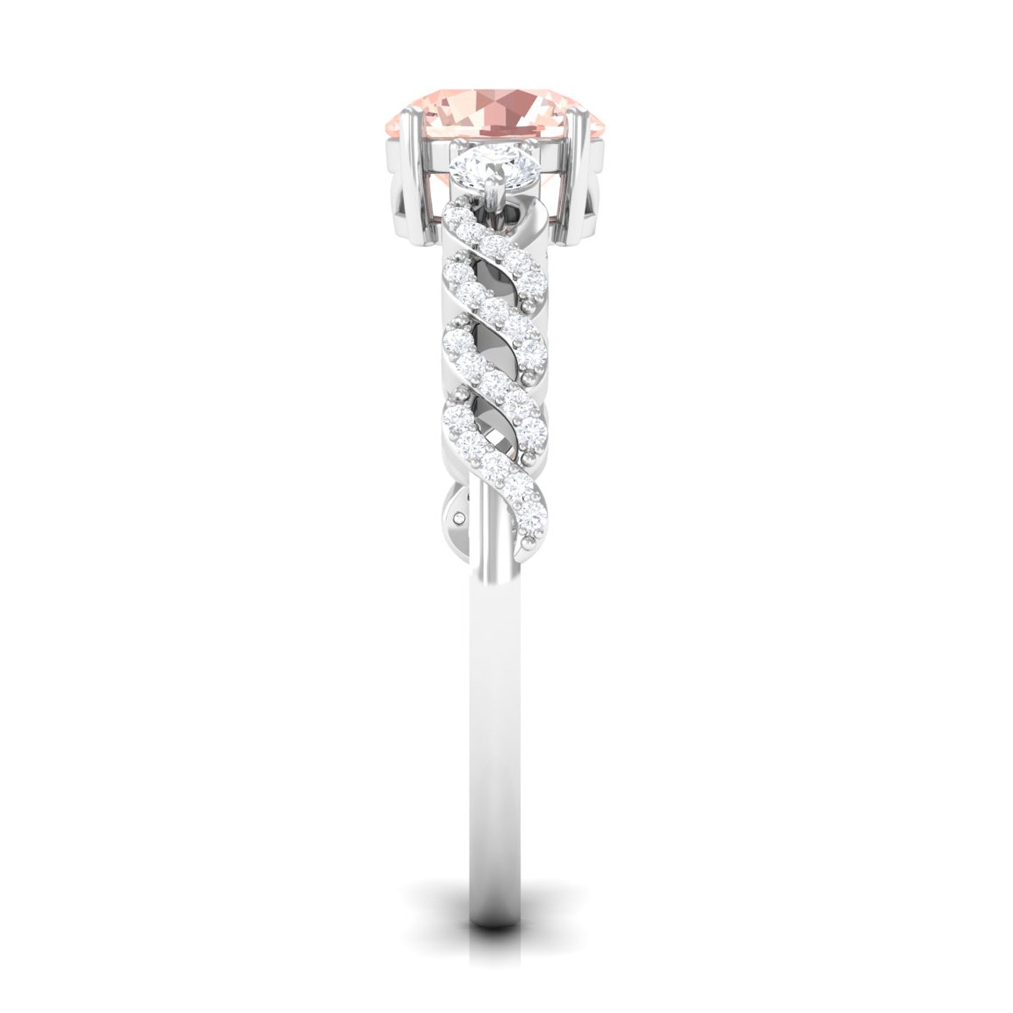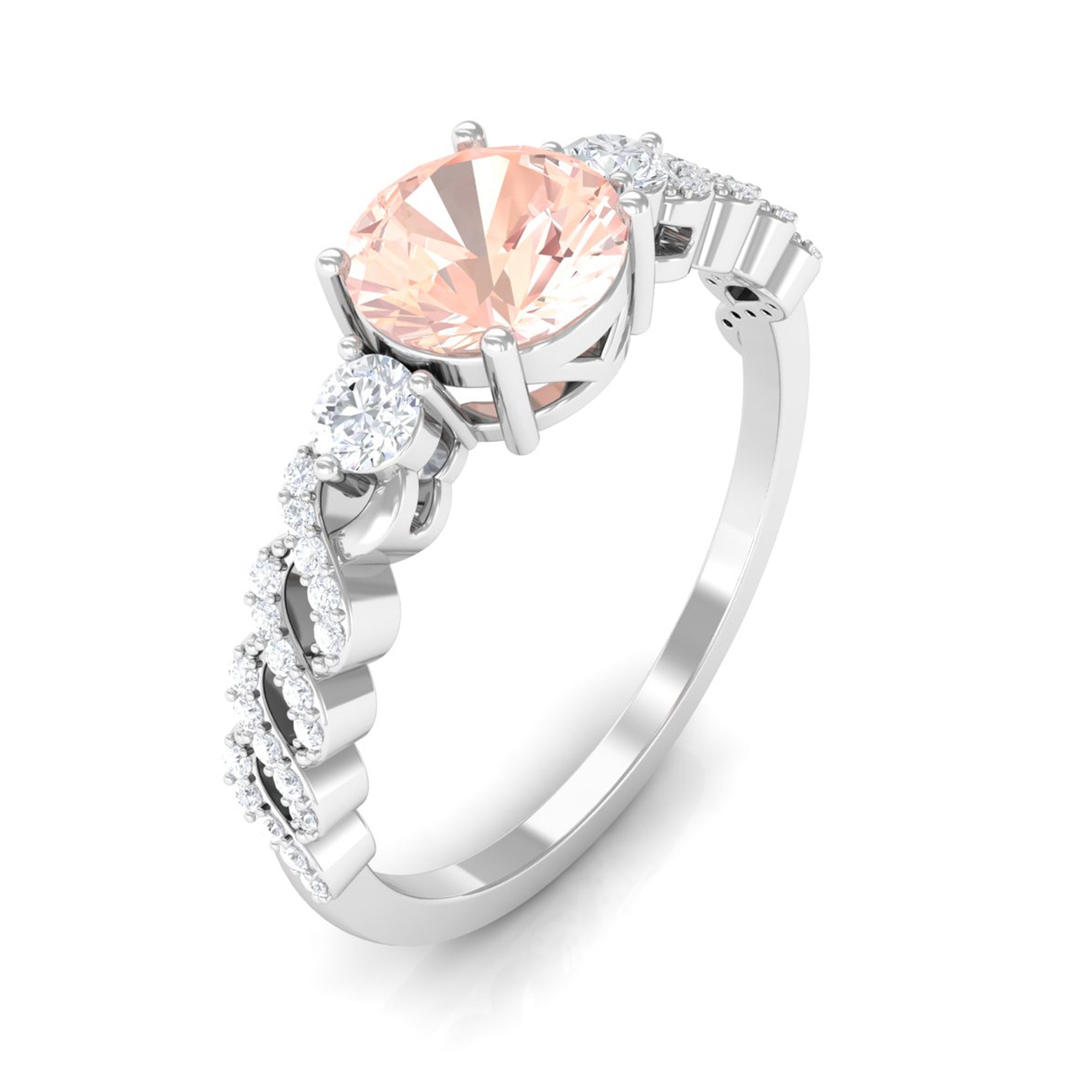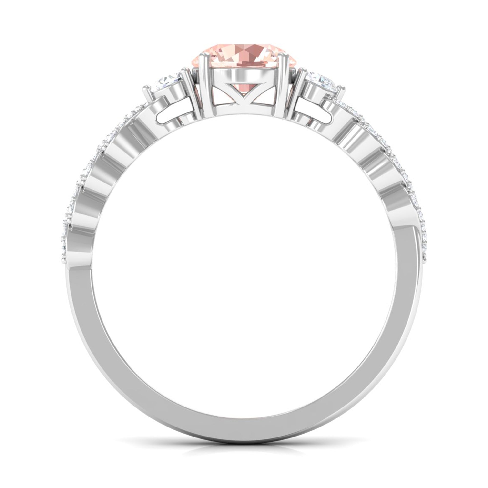 Round Shape Morganite Designer Engagement Ring with Diamond Side Stones