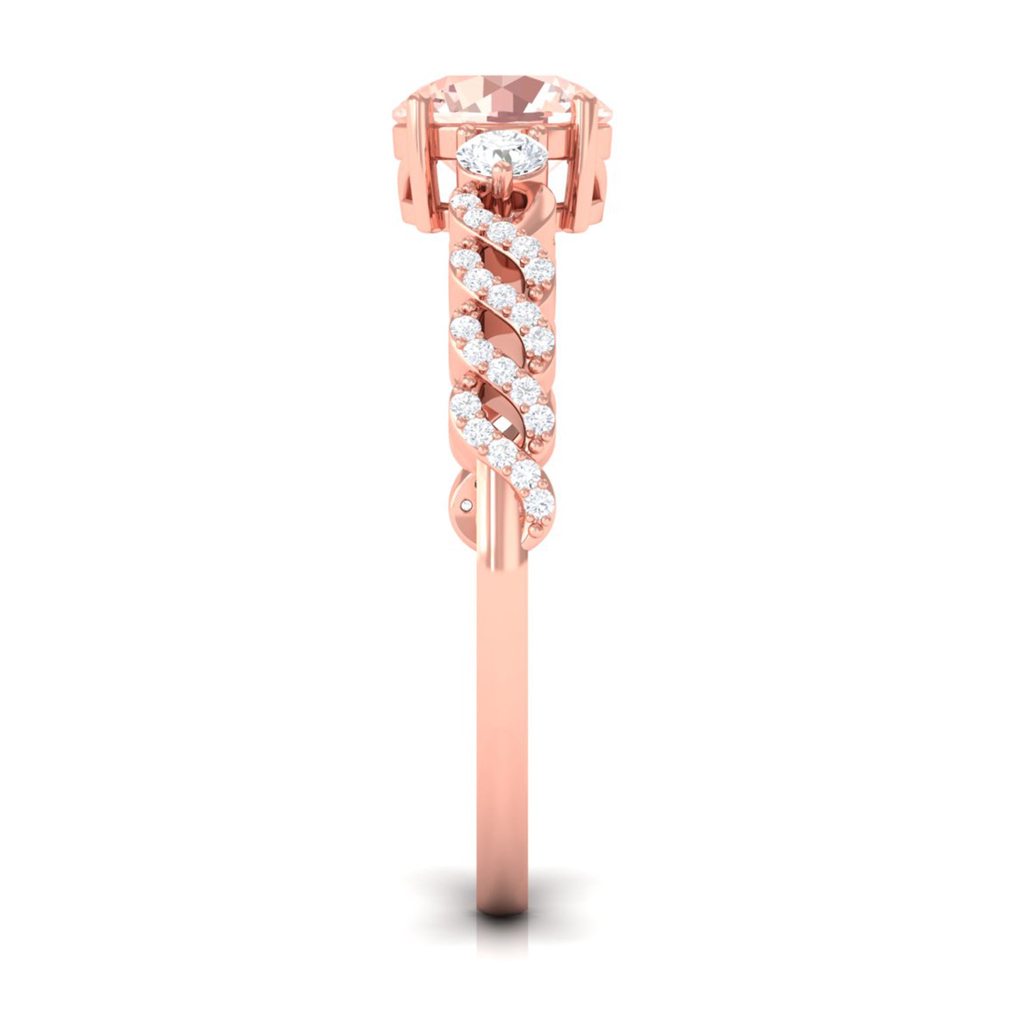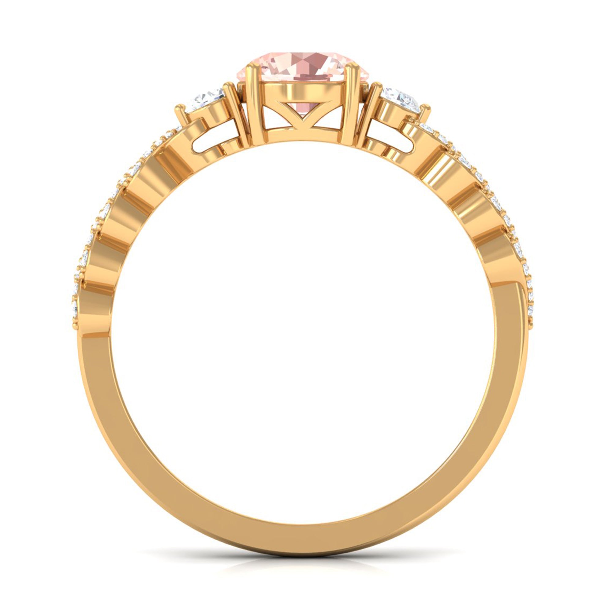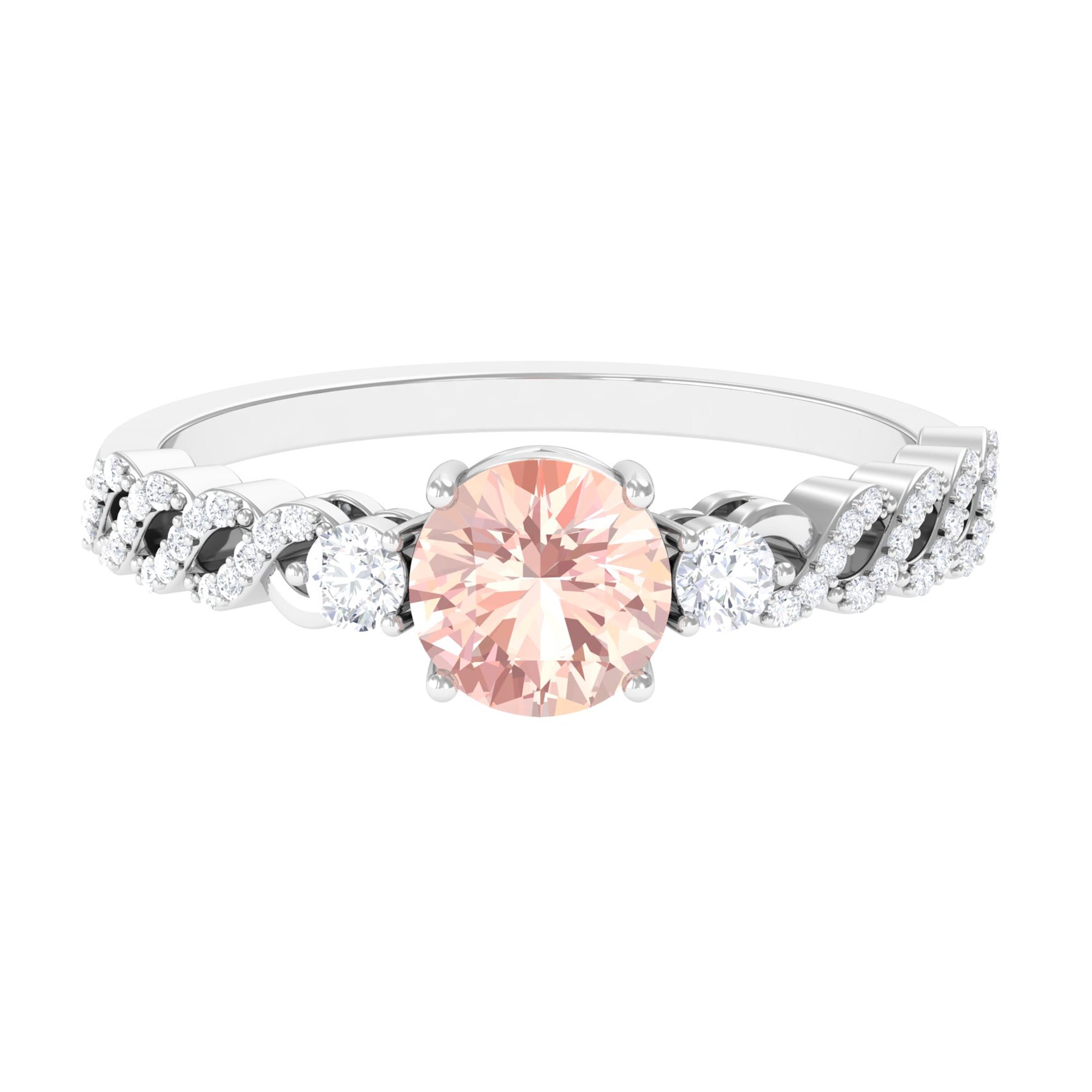 Round Shape Morganite Designer Engagement Ring with Diamond Side Stones