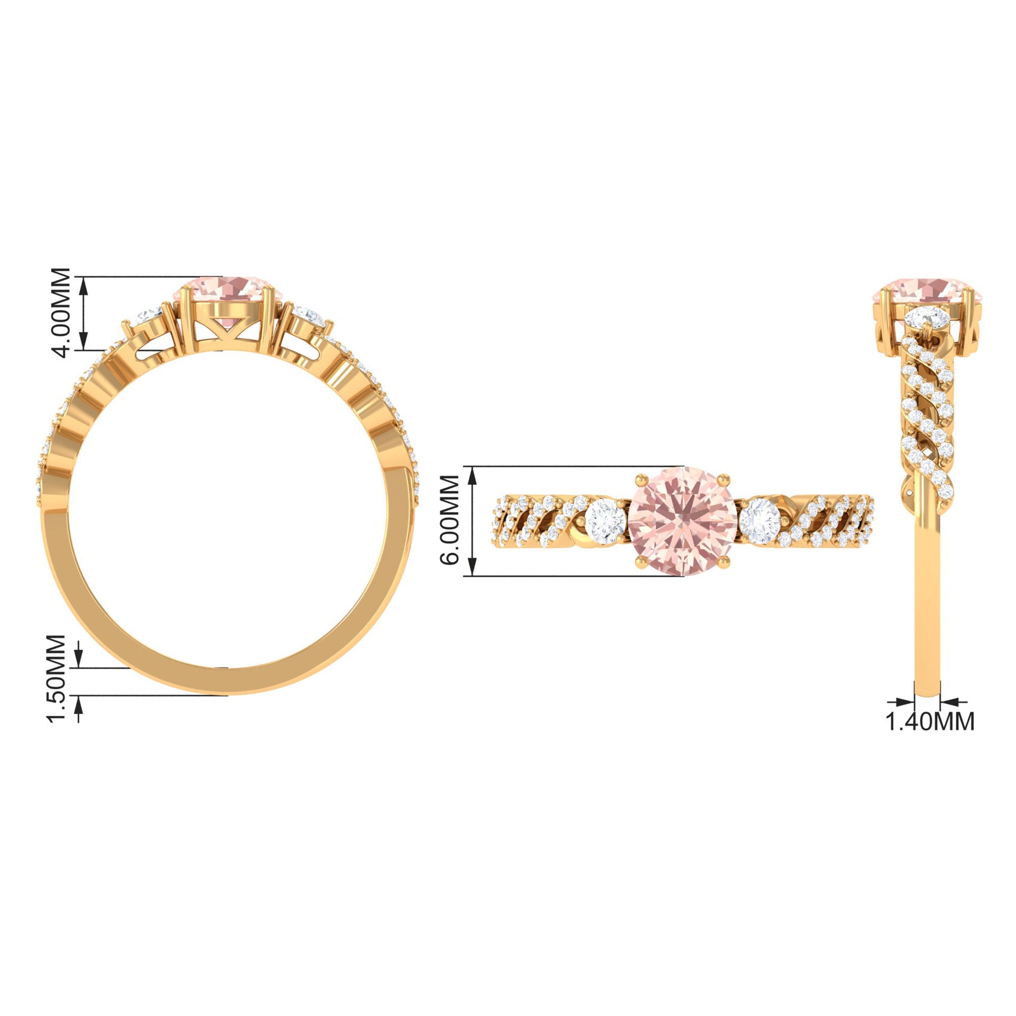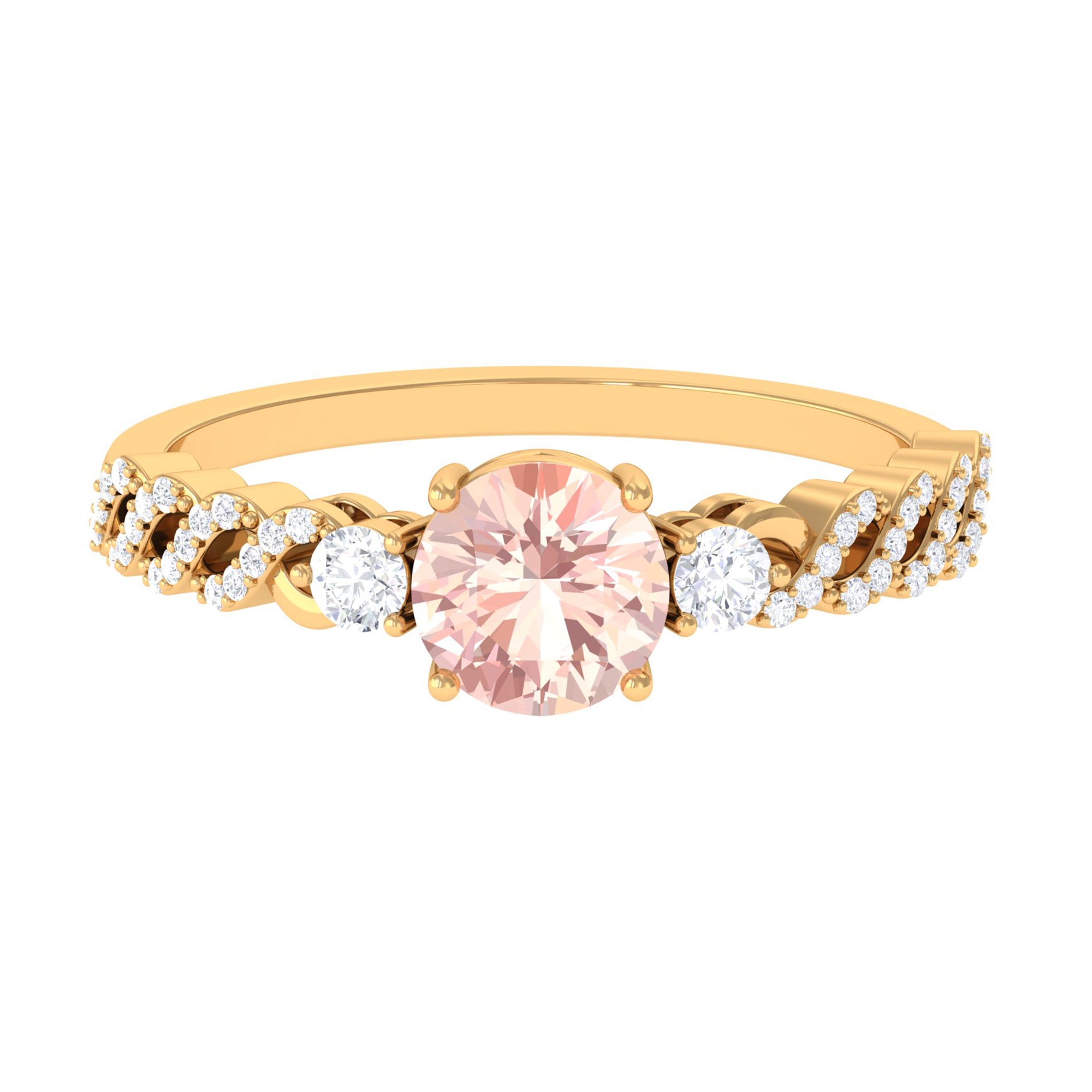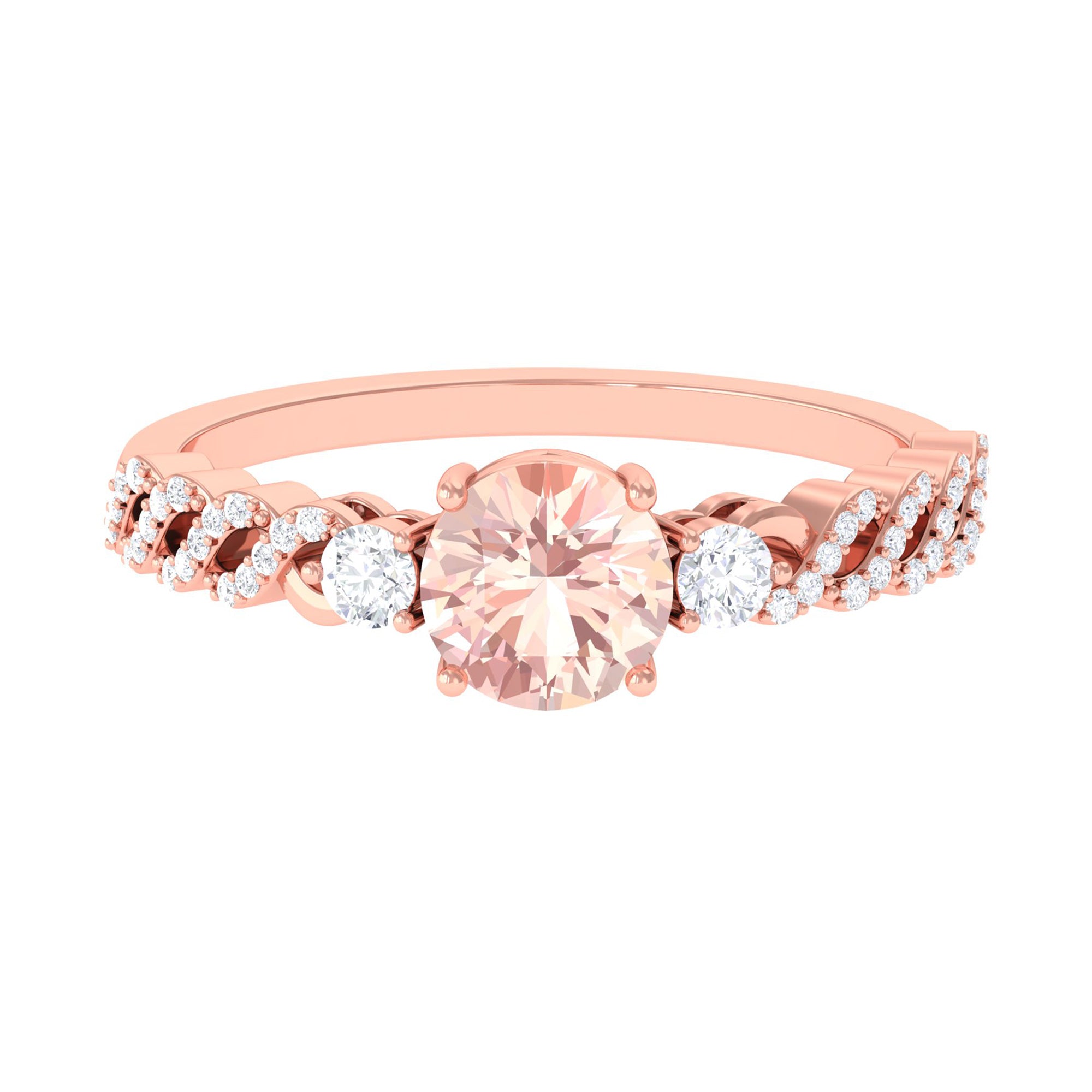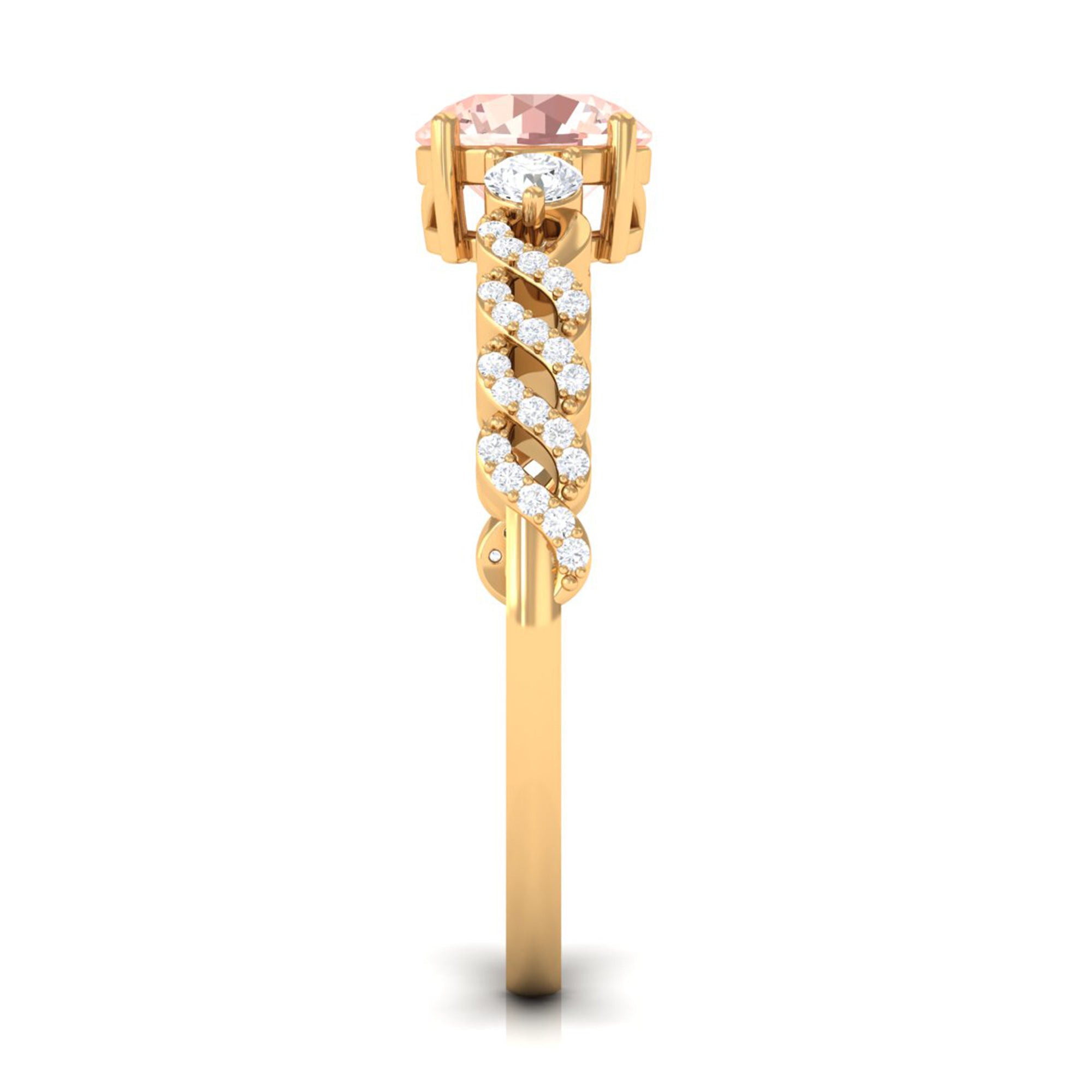 Round Shape Morganite Designer Engagement Ring with Diamond Side Stones