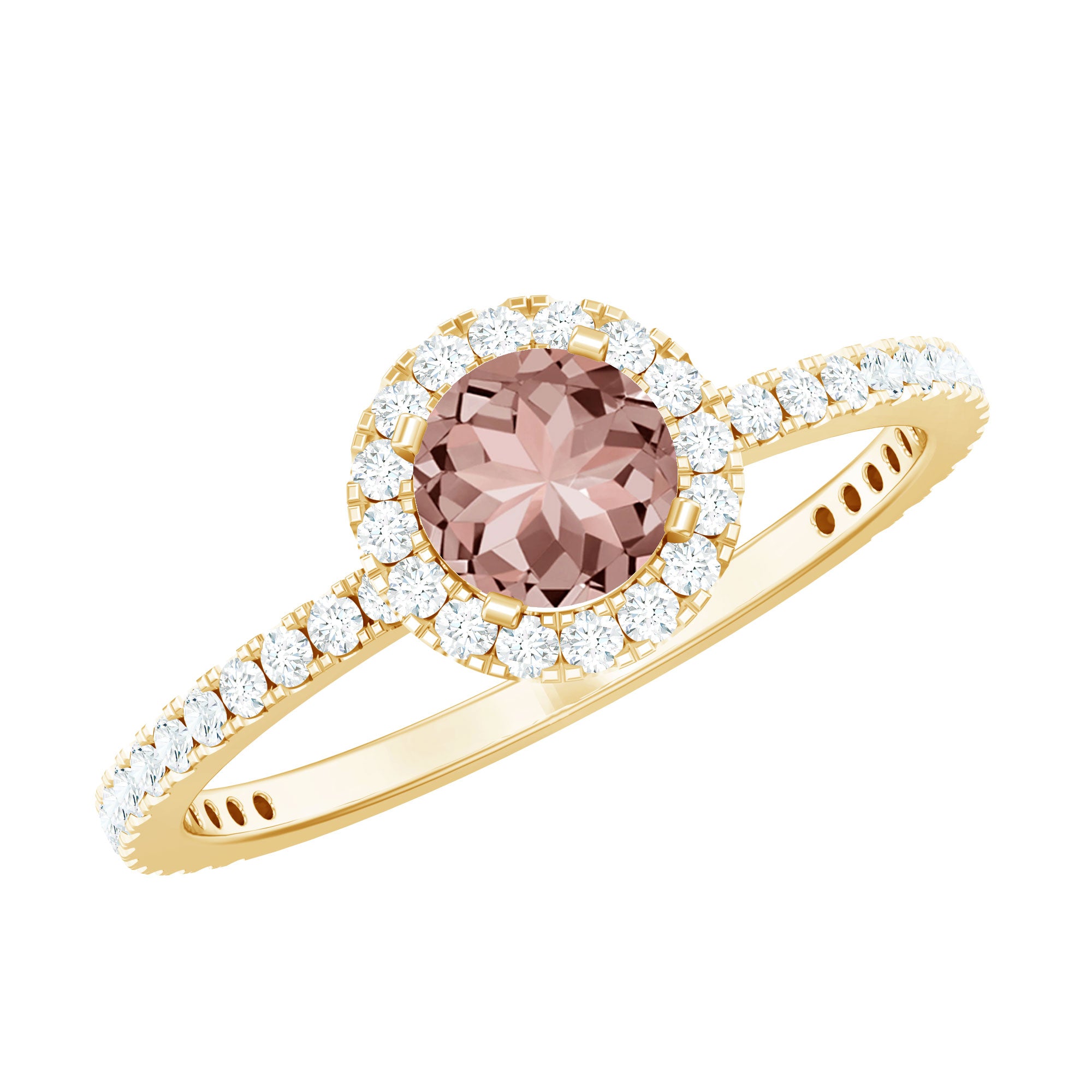 Round Shape Morganite Halo Engagement Ring with Diamond