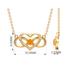 Round Shape Orange Sapphire and Gold Infinity Heart Necklace in Prong Setting