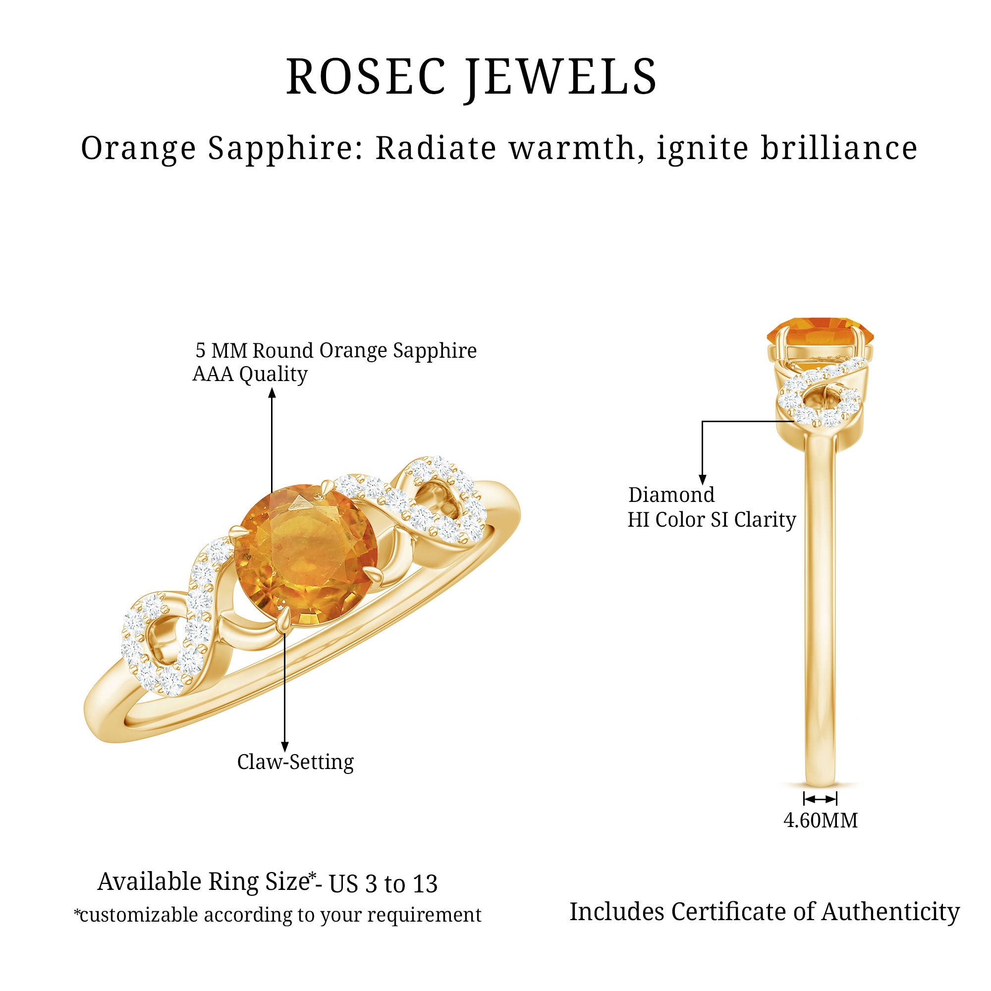 Round Shape Orange Sapphire Infinity Ring with Diamond