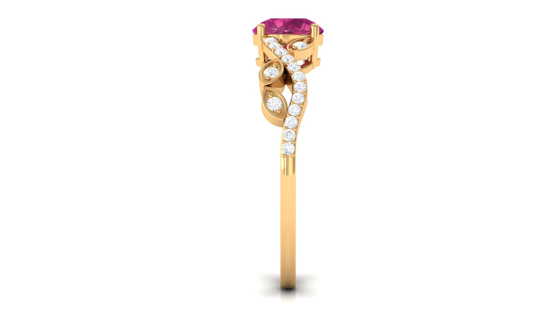This designer engagement ring exudes luxury and style with its dazzling Round Shape Pink Tourmaline at the center, capturing attention with its bold and fiery pink hue. The shank of the ring is decorated with stunning Diamond stones, adding extra sparkle and glamour. Crafted with a meticulous attention to detail, this Pink Tourmaline engagement ring is designed to impress with its perfect balance of sophistication and contemporary flair. The Round Shape Pink Tourmaline is held in a secure prong setting that ensures its lasting beauty, making it a perfect choice for a bride who seeks a ring that is both unique and timeless.