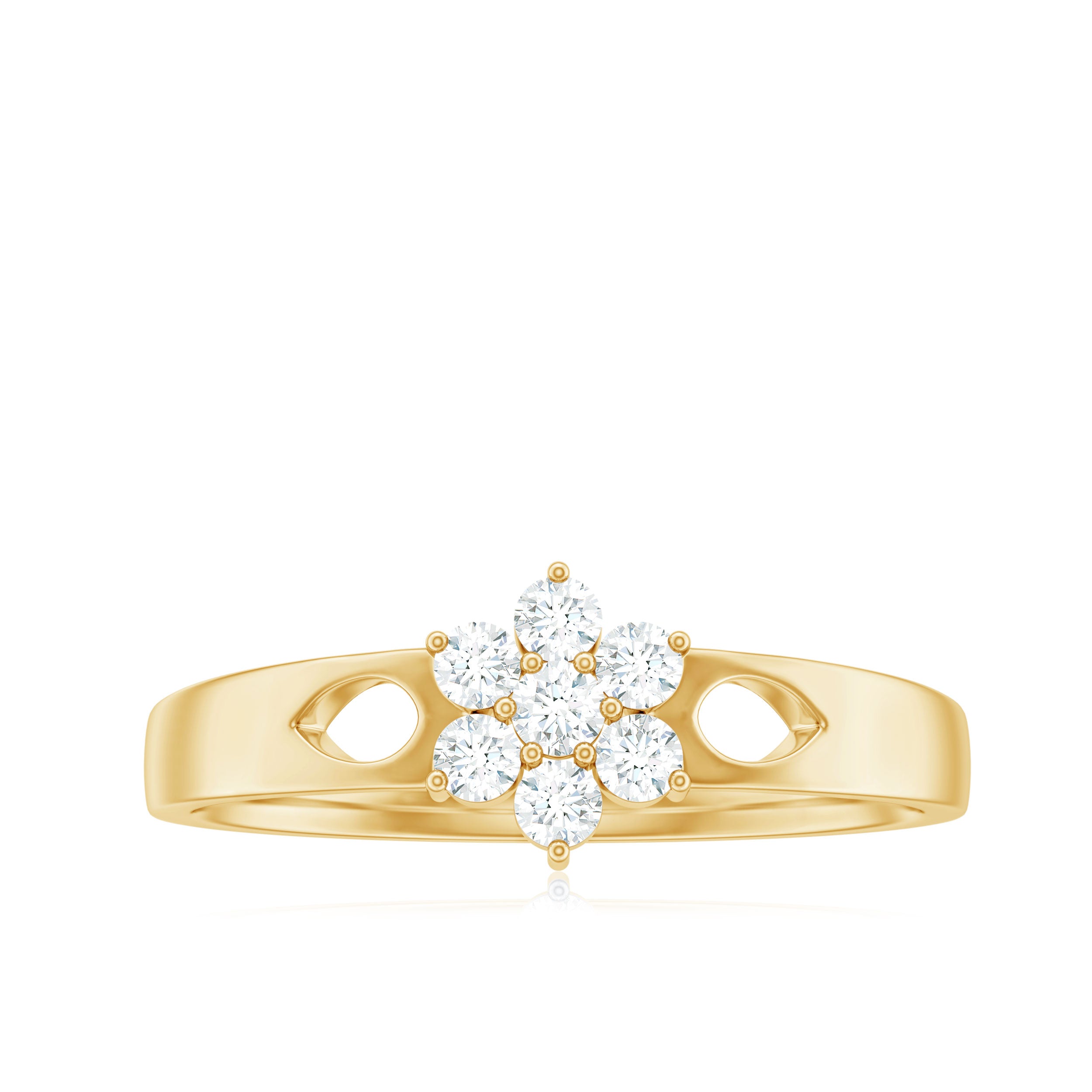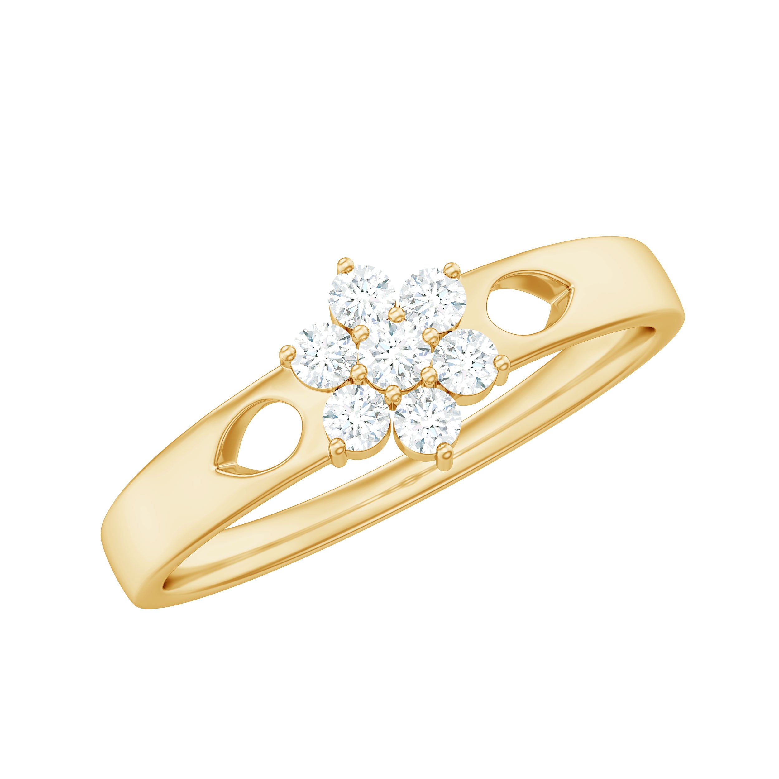 Round Shape Real Diamond Flower Anniversary Ring in Gold