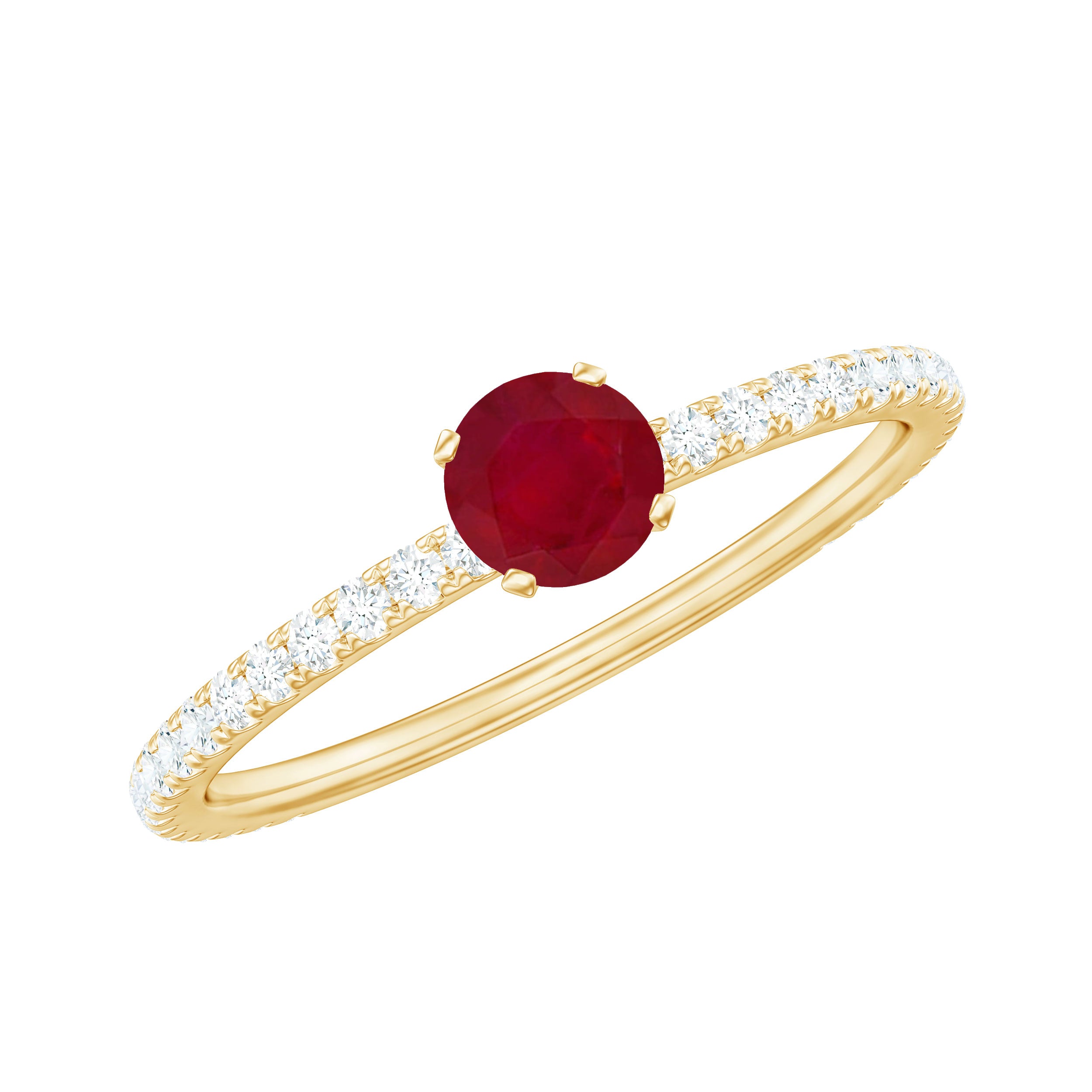 Round Shape Ruby Dainty Solitaire Ring with Diamond