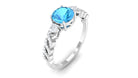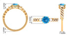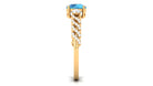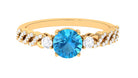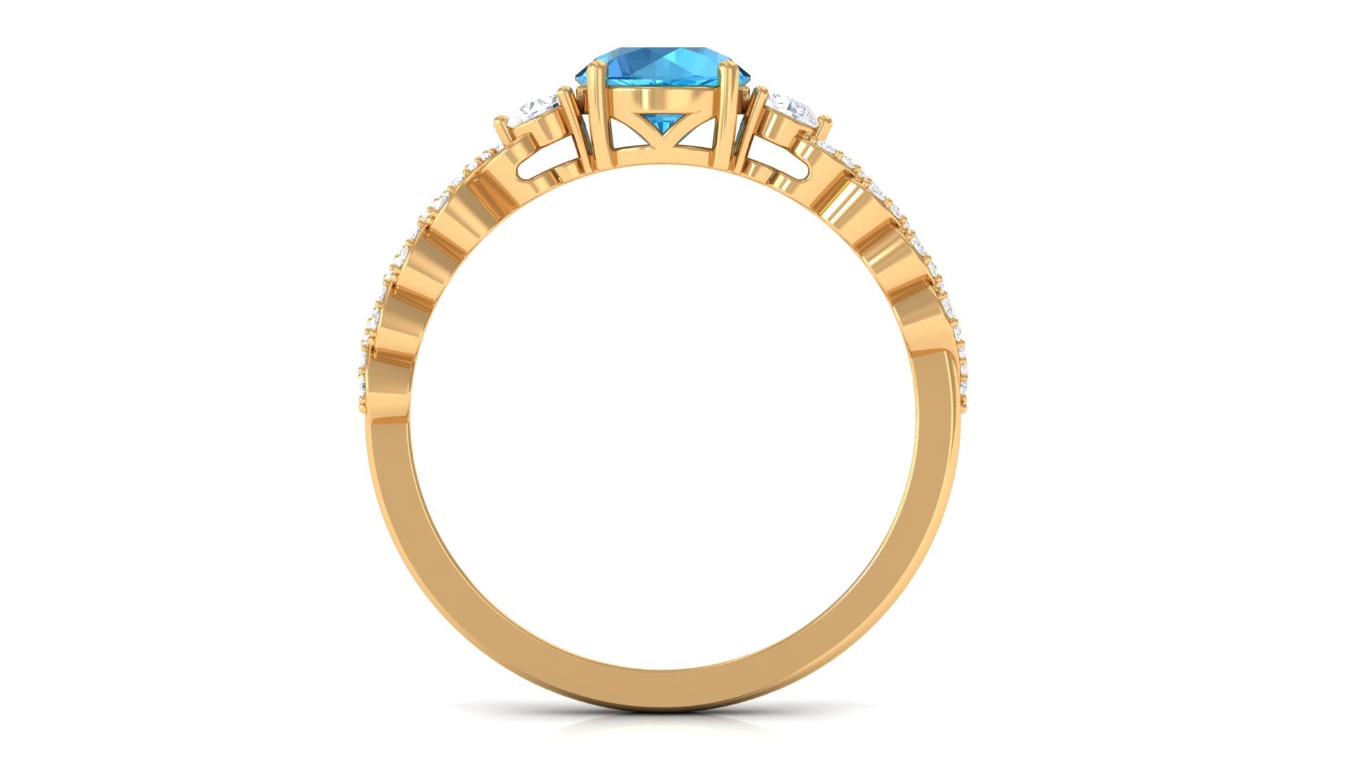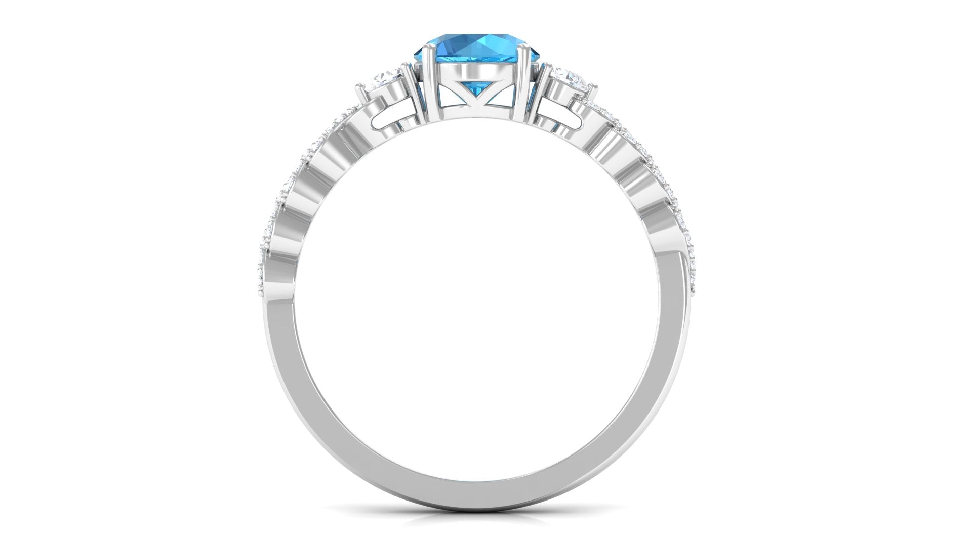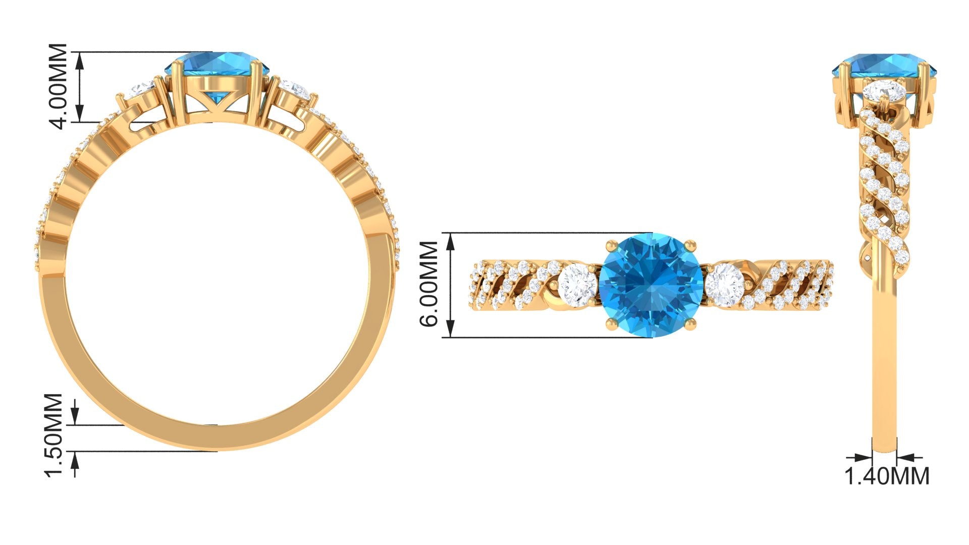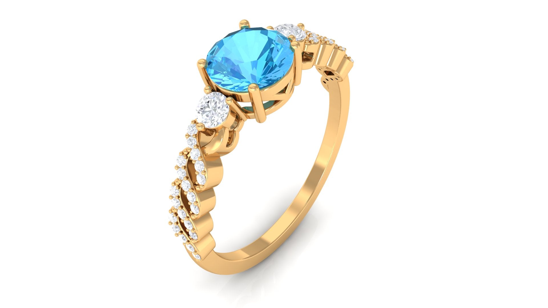 Round Shape Swiss Blue Topaz Designer Engagement Ring with Diamond Side Stones