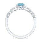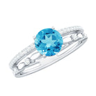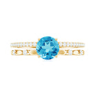 Round Shape Swiss Blue Topaz Solitaire Double Band Ring with Diamond