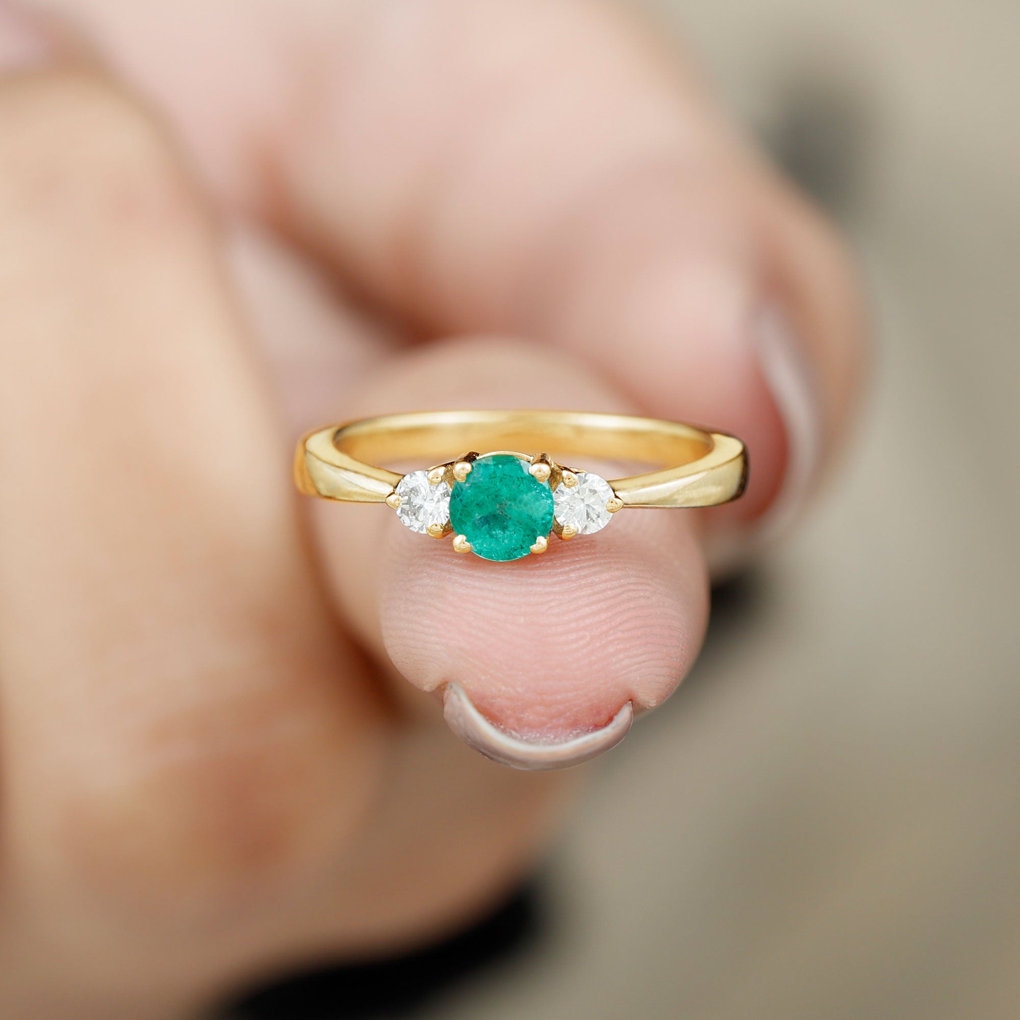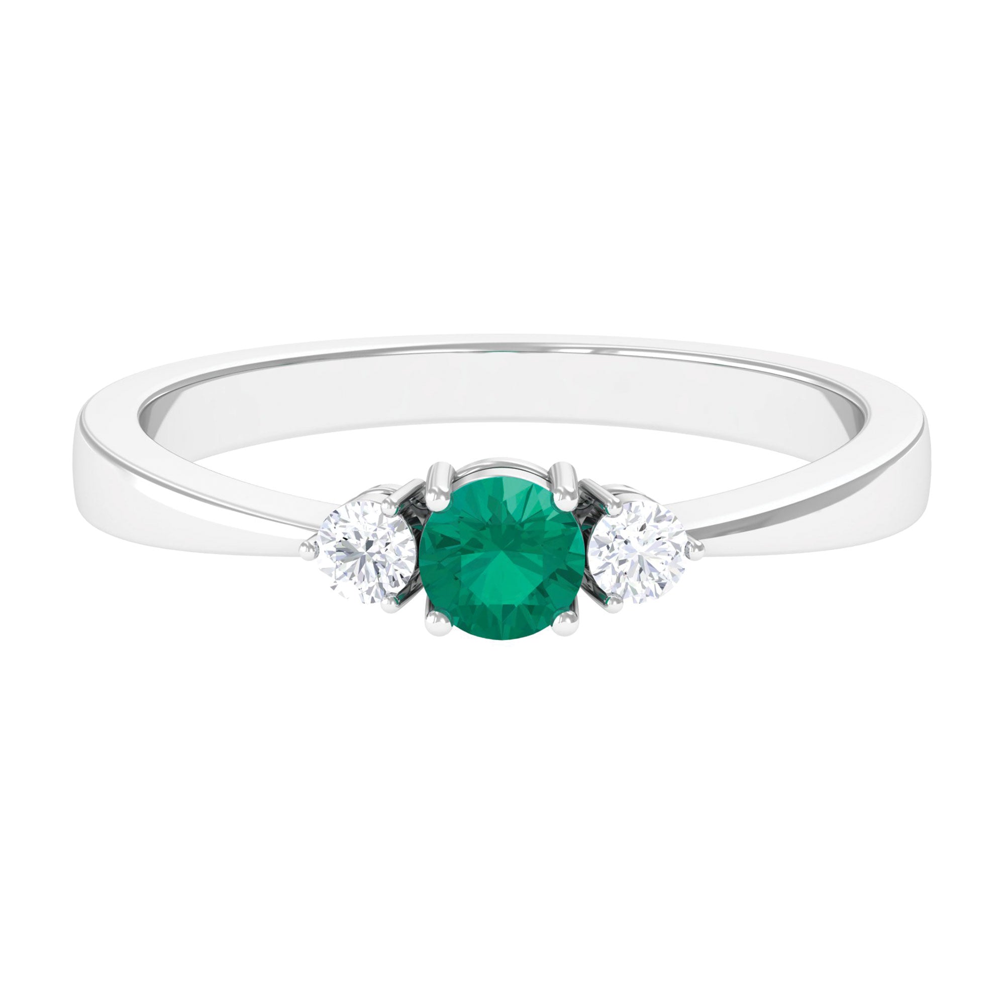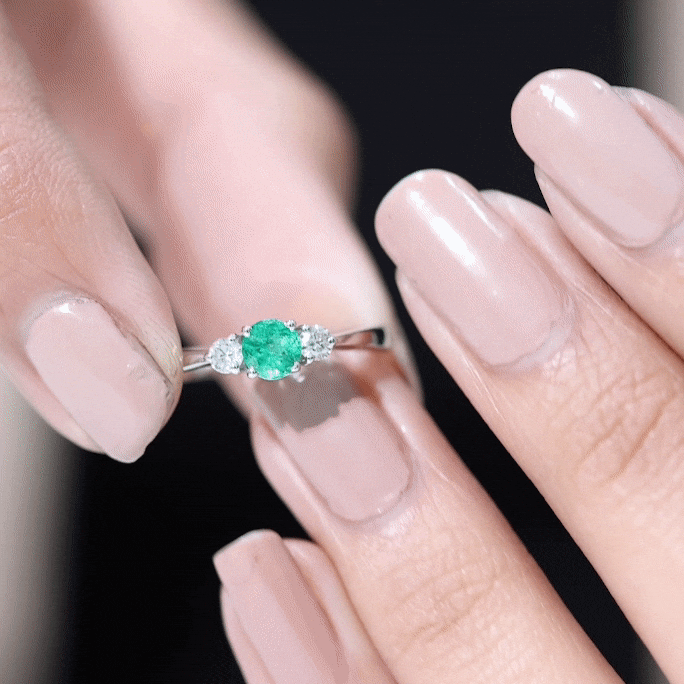 Round Shaped Real Emerald and Diamond Three Stone Promise Ring