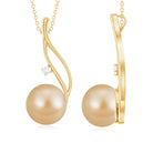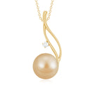 Round South Sea Pearl Leaf Pendant with Moissanite