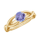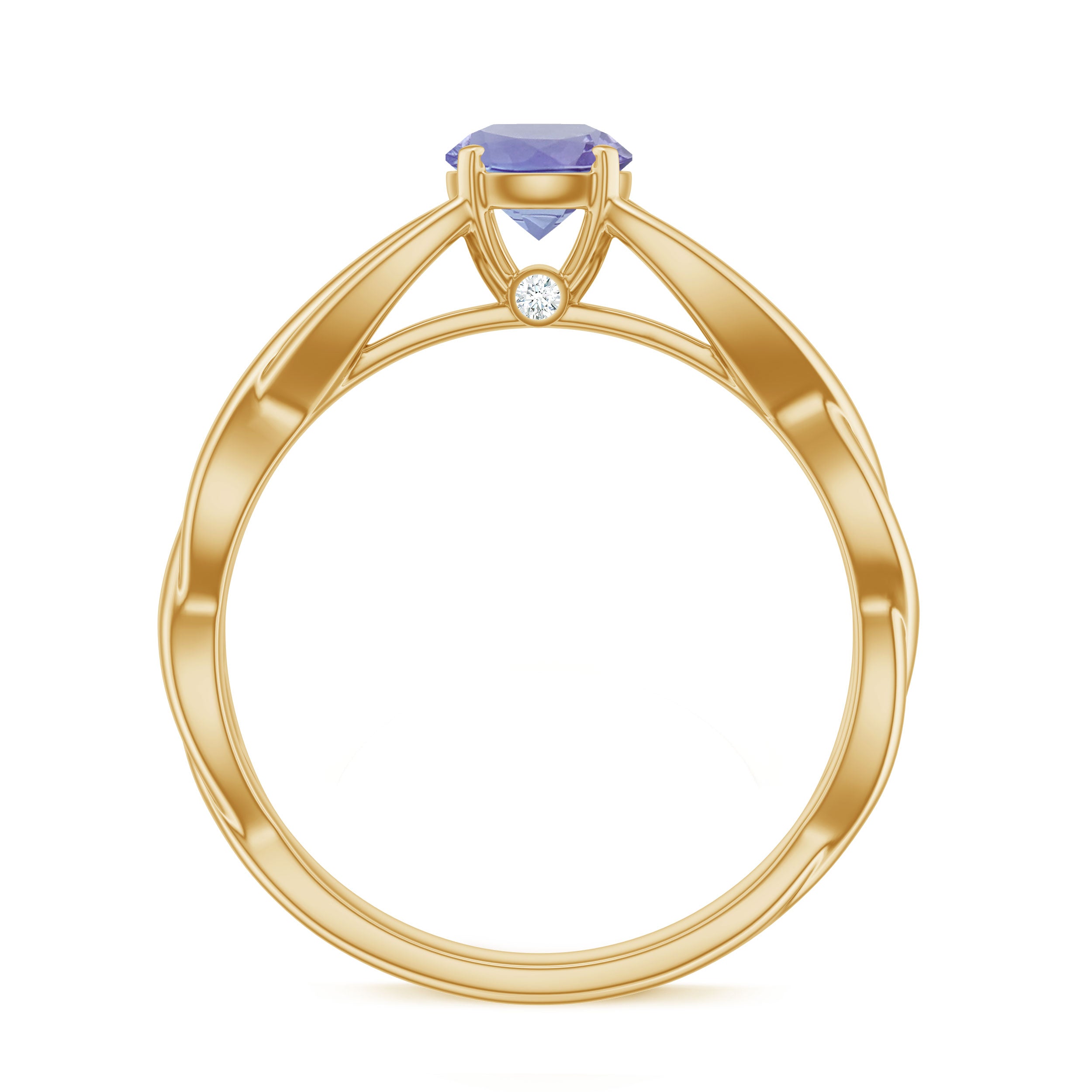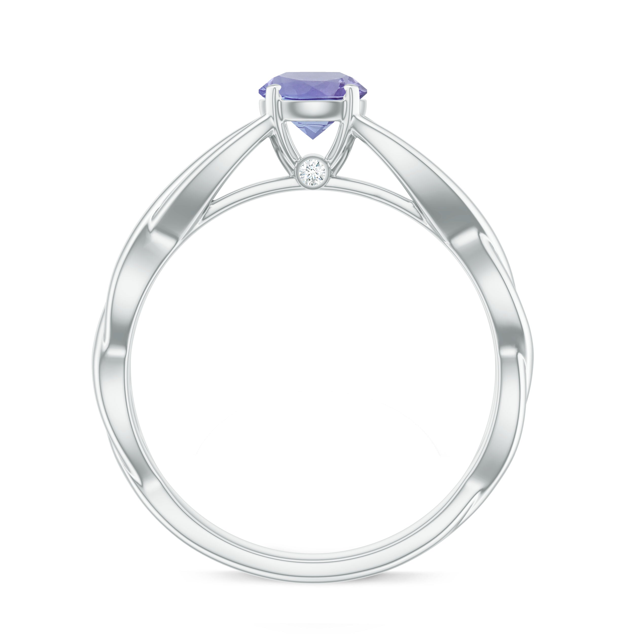 Conventional with a twist of contemporary, this Tanzanite Solitaire Crossover Ring offers you the best of both worlds! Mesmerizing with its unique purple hue, the Single Centerpiece of 5 MM Round Shape Tanzanite secured by Peg Head Setting catches the attention at one glance, made all the more eye-striking by the embellishment of sparkly Round Shape Diamond beneath. The stone sits atop a Crossover Shank that effortlessly does the job of lending it a flamboyant feel.