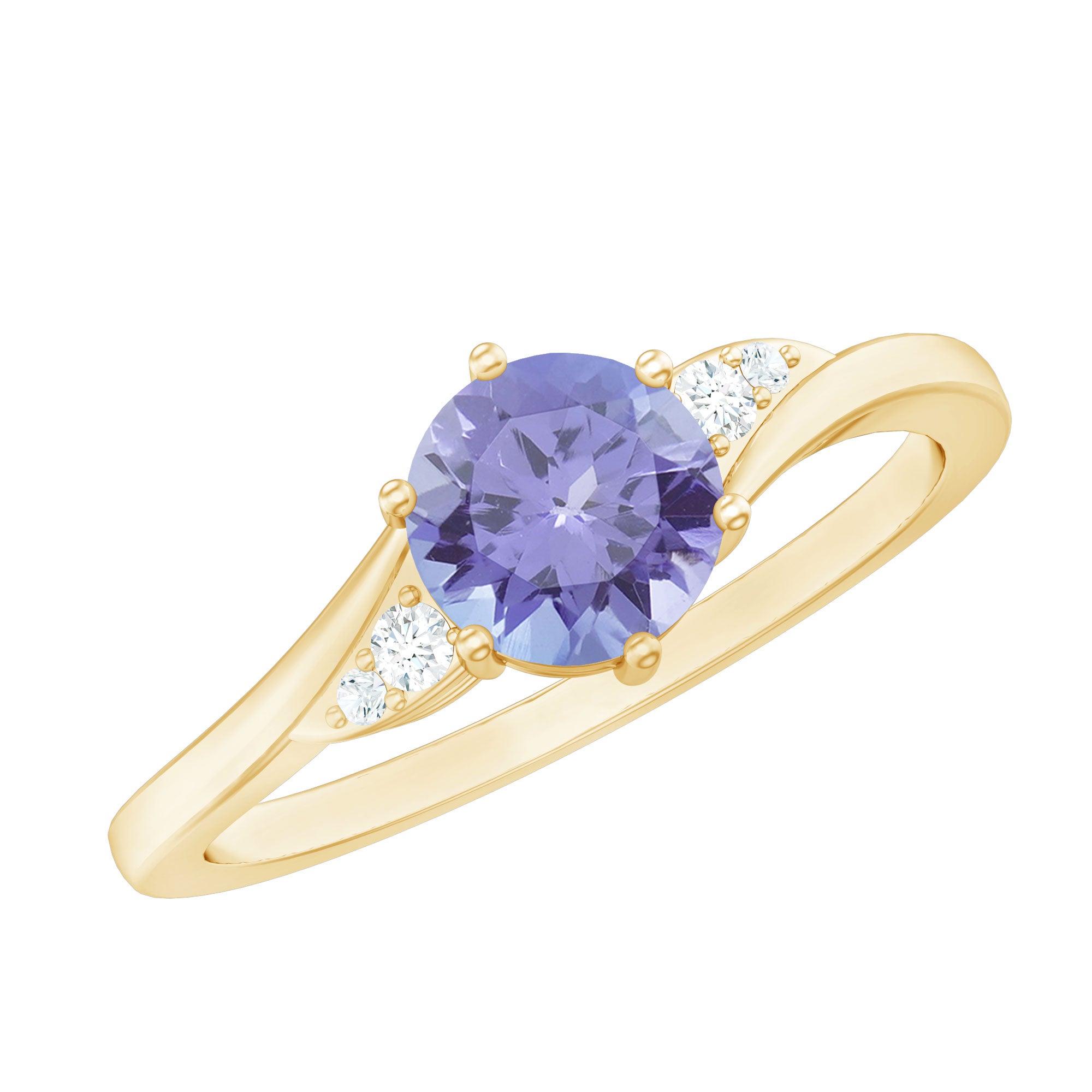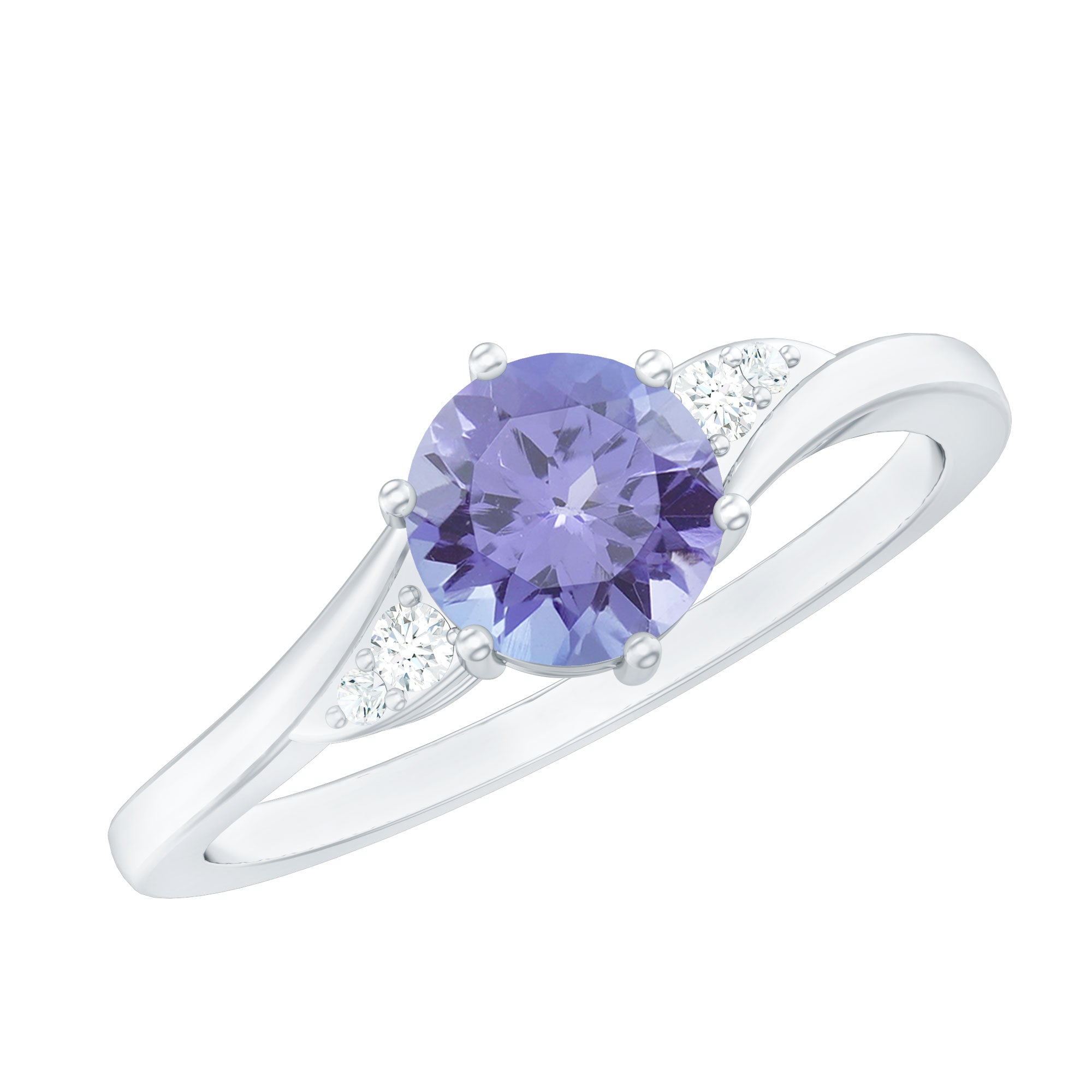 Round Tanzanite Solitaire Engagement Ring with Diamond