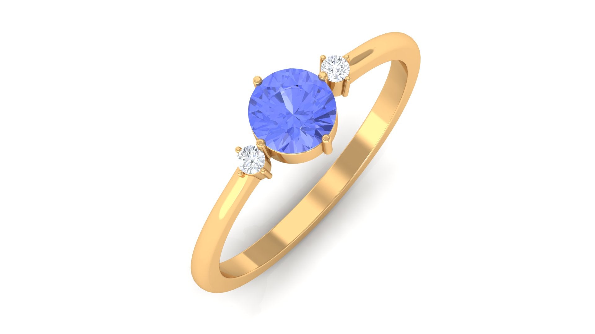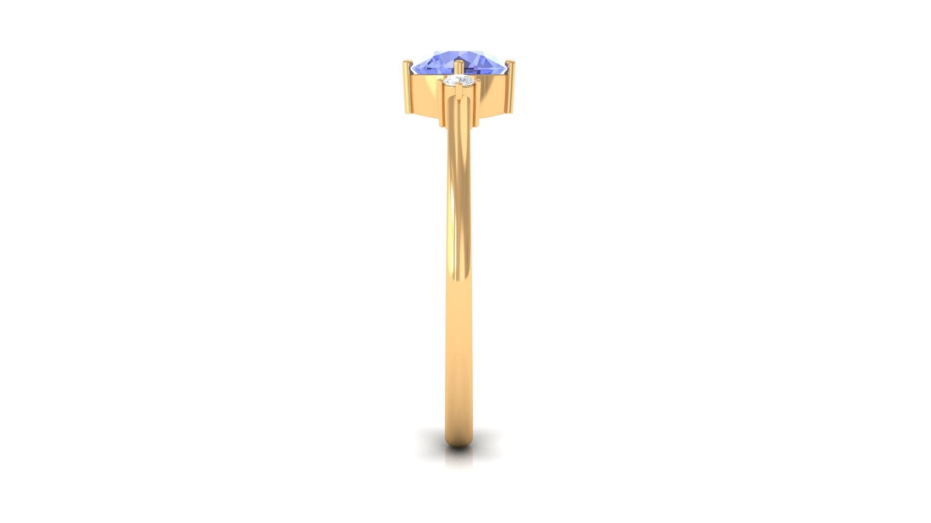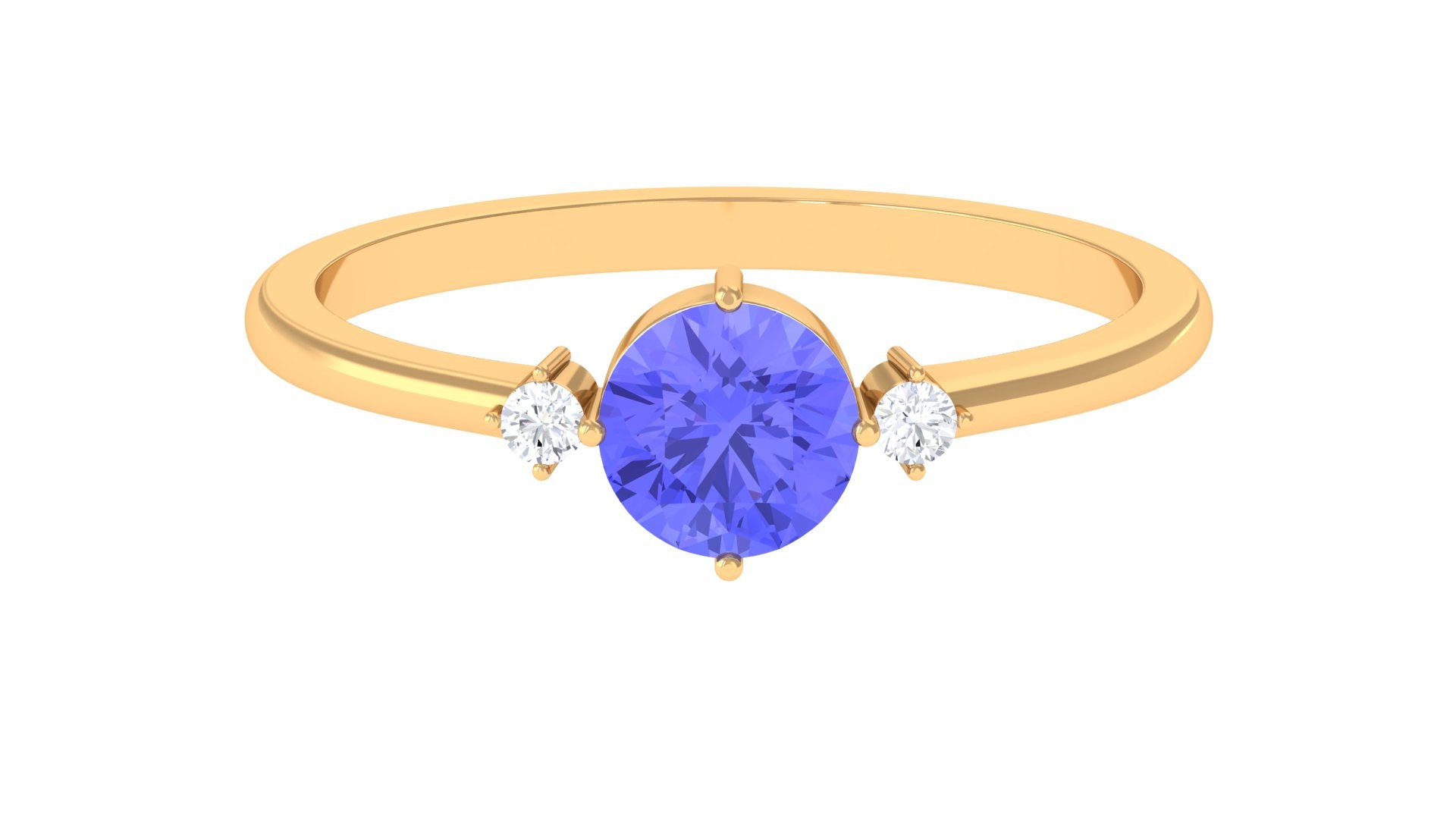 Minimalist but eye-catching, this Tanzanite Promise Ring can never fail to woo her. Shining subtly in the royal pop of purple, the centerpiece of 6 MM Round Shape Tanzanite captivates with its allure, held by 4 Prong Diagonal Setting. The stones of 6 MM Round Shape Diamond on either sides complement its royal charm with a dash of elegance. This Certified Tanzanite Ring fits with your casual and fancy attires alike.