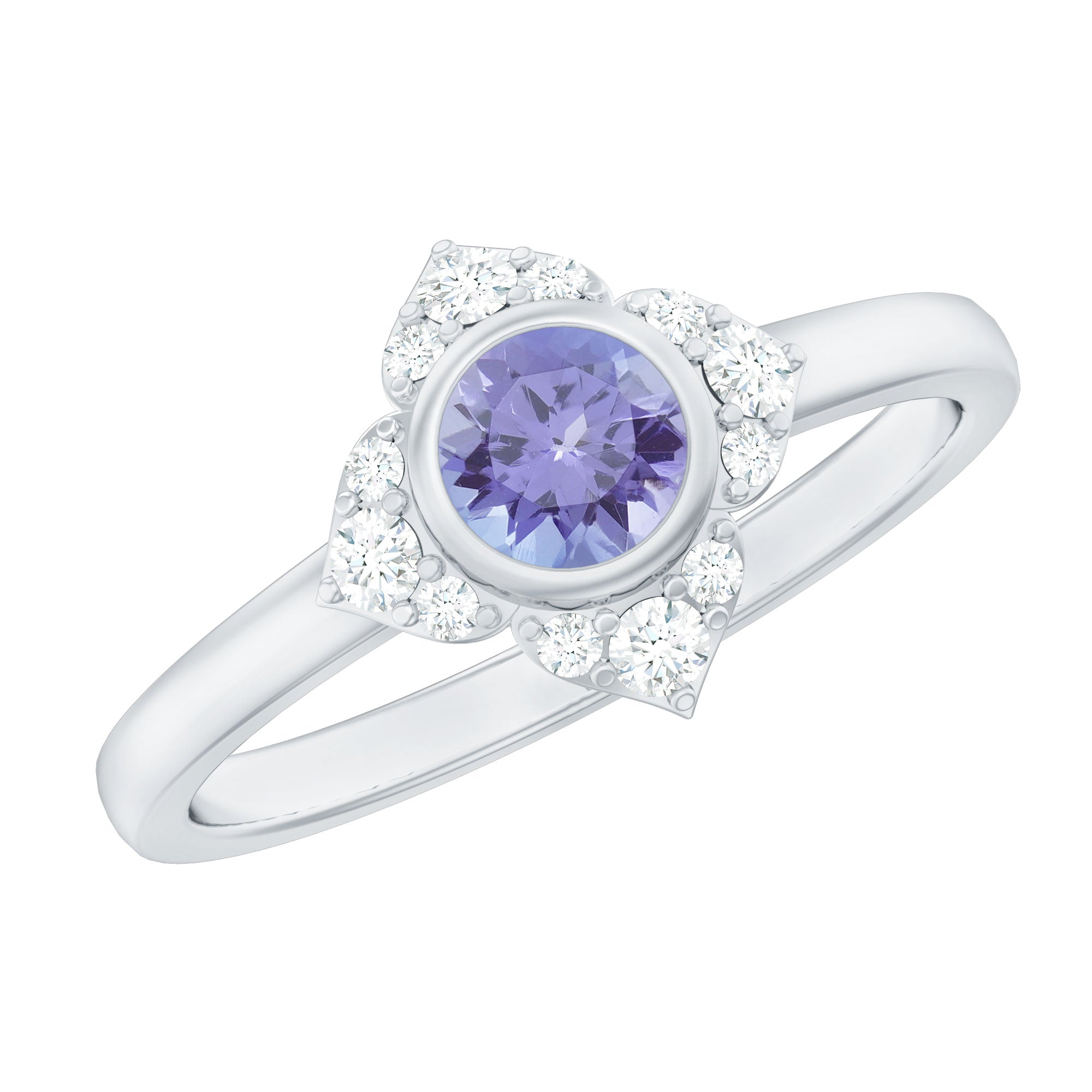 Round Tanzanite Vintage Engagement Ring with Diamond Accent