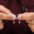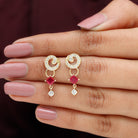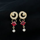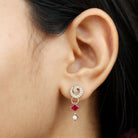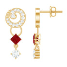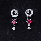Add charm to your look with these sparkling Drop Dangle Earrings adorned with Princess Cut Ruby and round shape Diamonds.