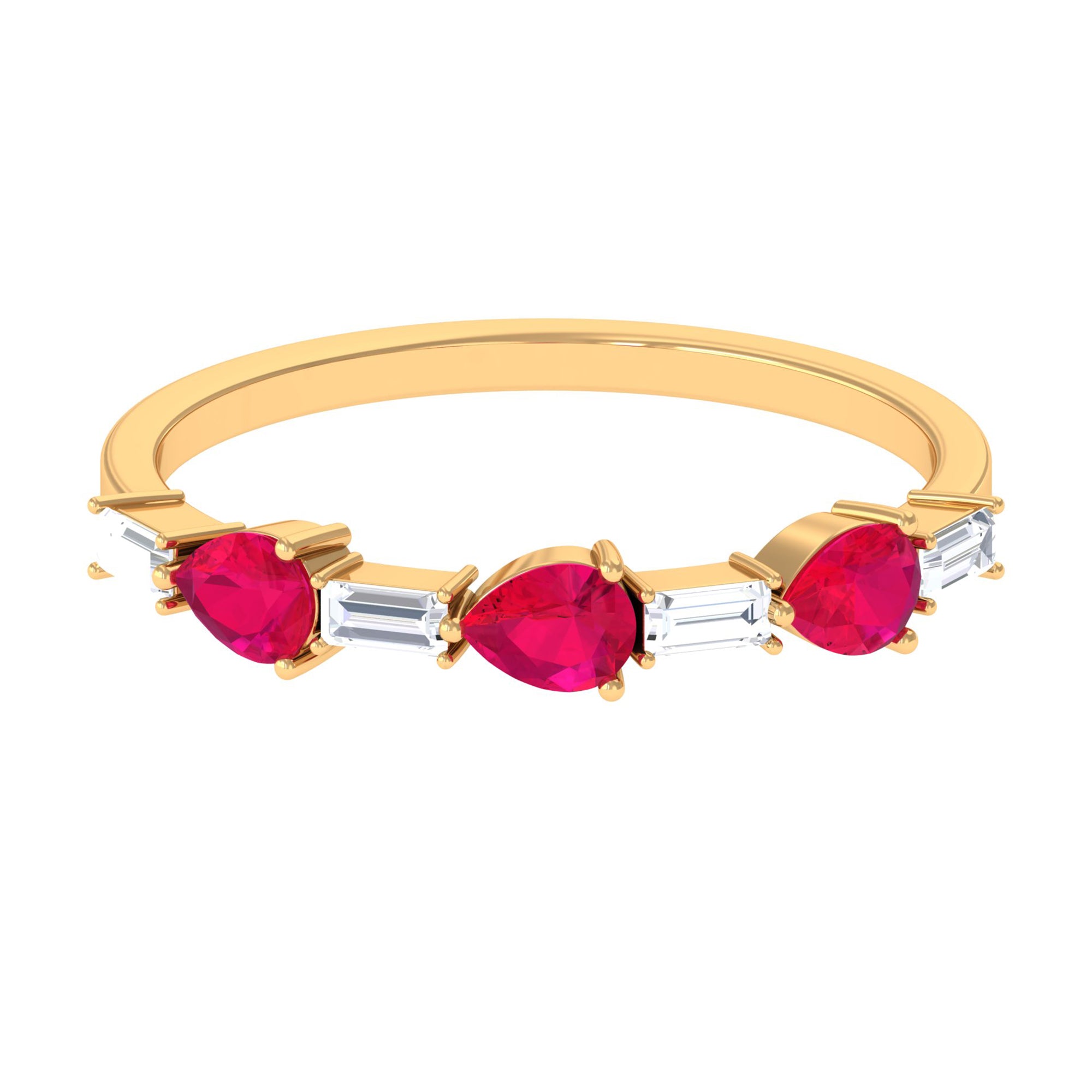Unleash modern sophistication with this Half Eternity Ring with Ruby and Diamond in East West Style, a fusion of timeless allure and contemporary design.