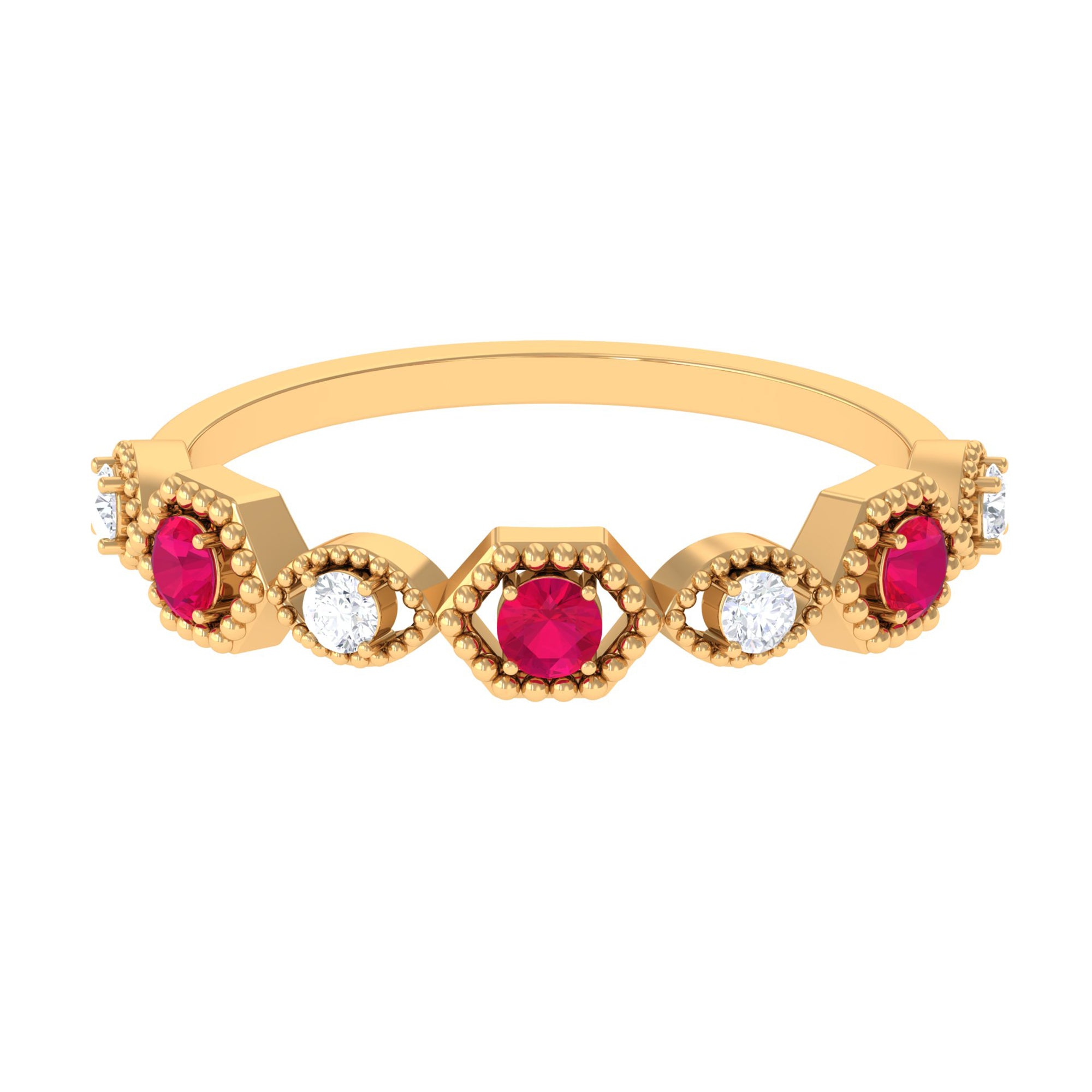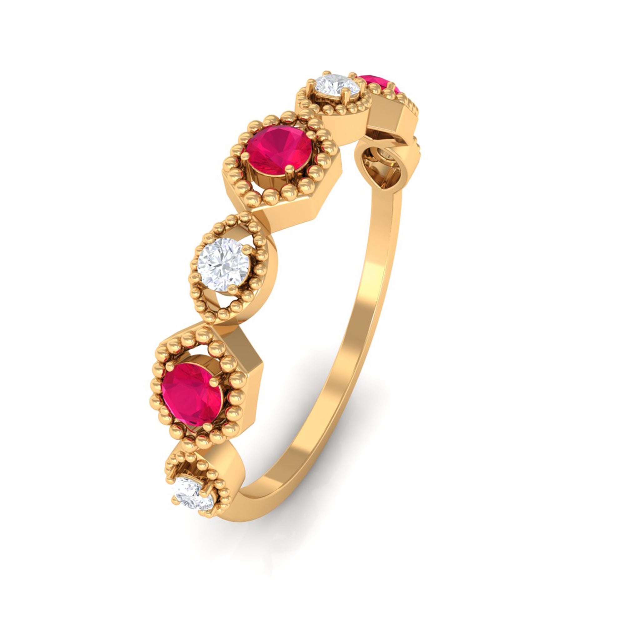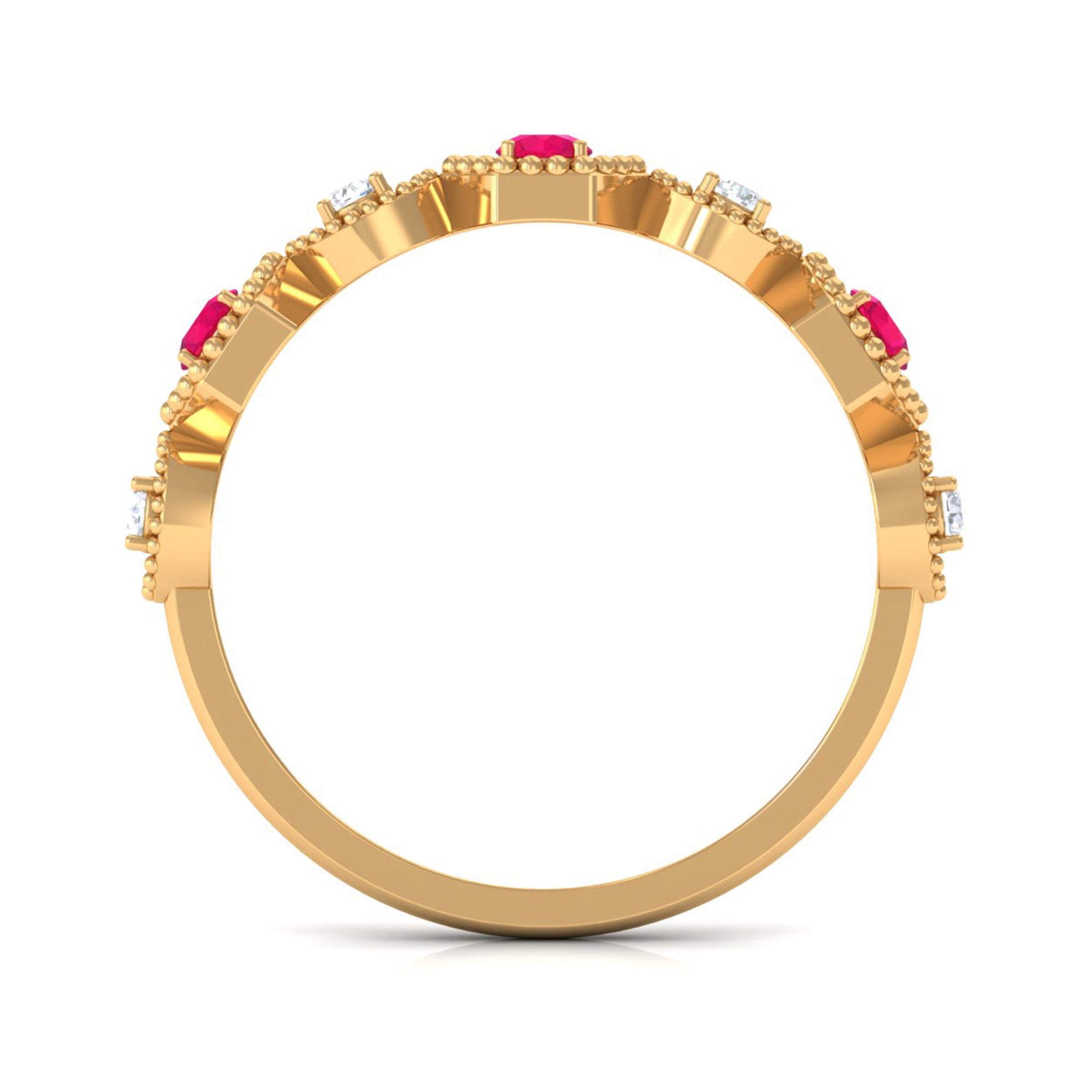 Radiate brilliance with this Half Eternity Ring with Ruby and Diamond gemstones in Prong Setting, showcases the captivating beauty of each stone.