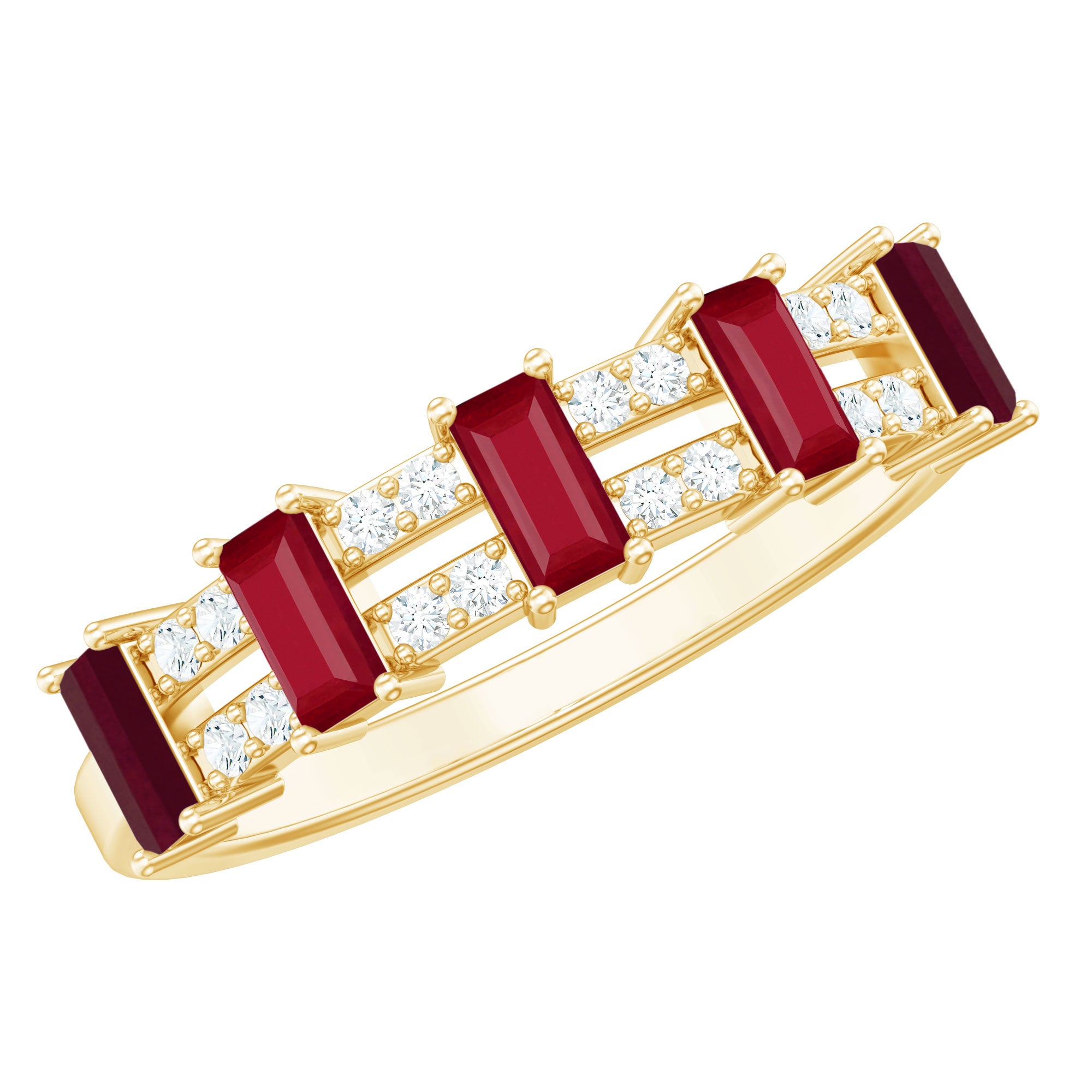 Make a bold statement with this Wide Half Eternity Band Ring featuring Ruby and shimmering Diamond, a stunning blend of elegance and glamour.