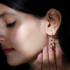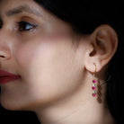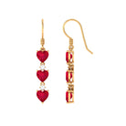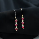 3 Heart Lab Grown Ruby Dangle Earrings with Moissanite