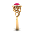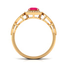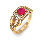 Accentuate your look with this Vintage Ruby Engagement Ring and grab all the attention at the party. The Round Ruby is held in prong setting beautifully exhibiting an effortless charm and the round diamond arranged as accent. The Milgrain details are augmenting an opulent appeal of this Ruby and Diamond Ring.
