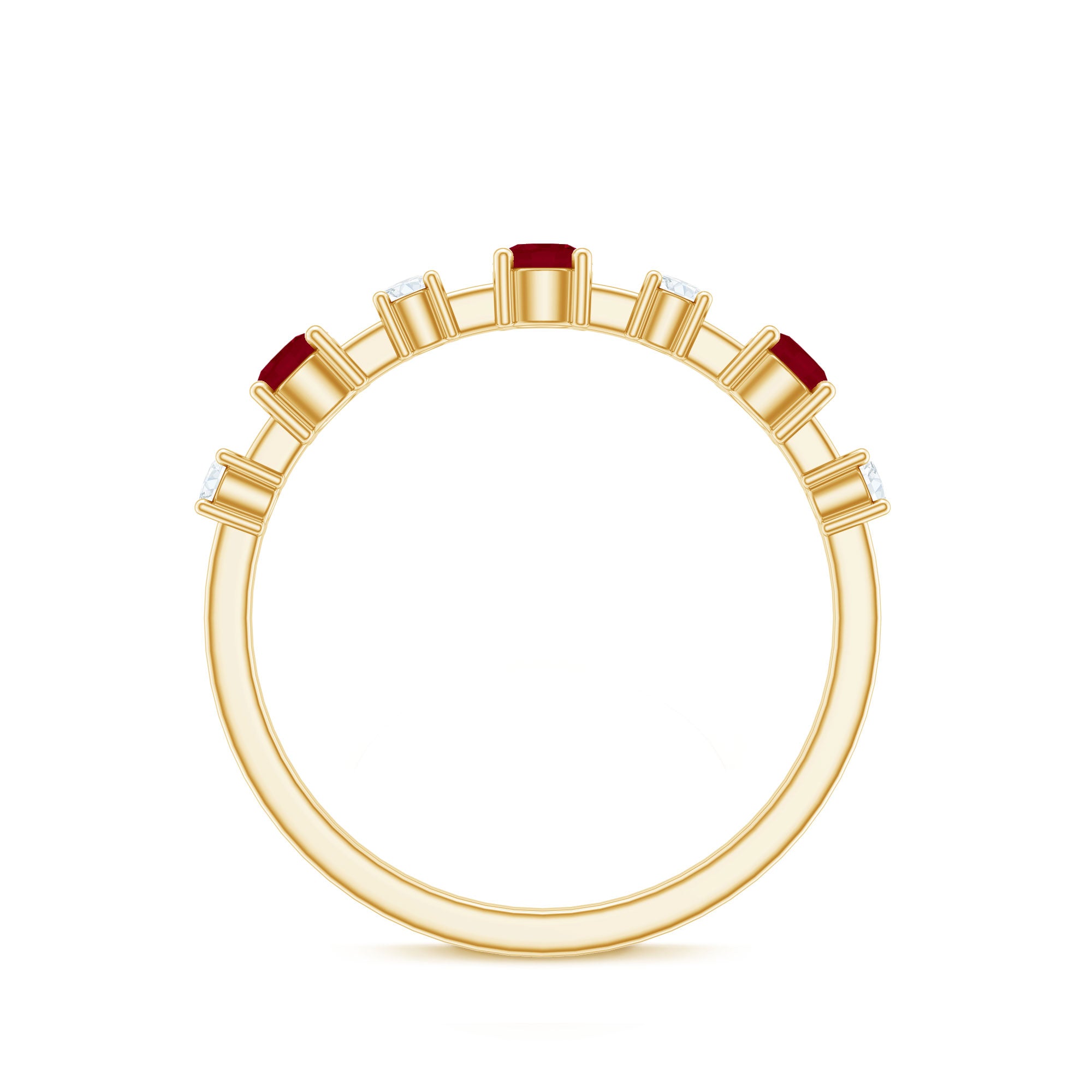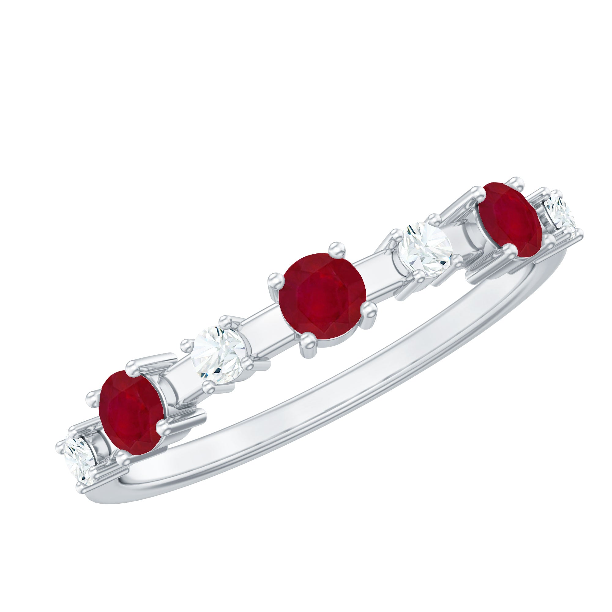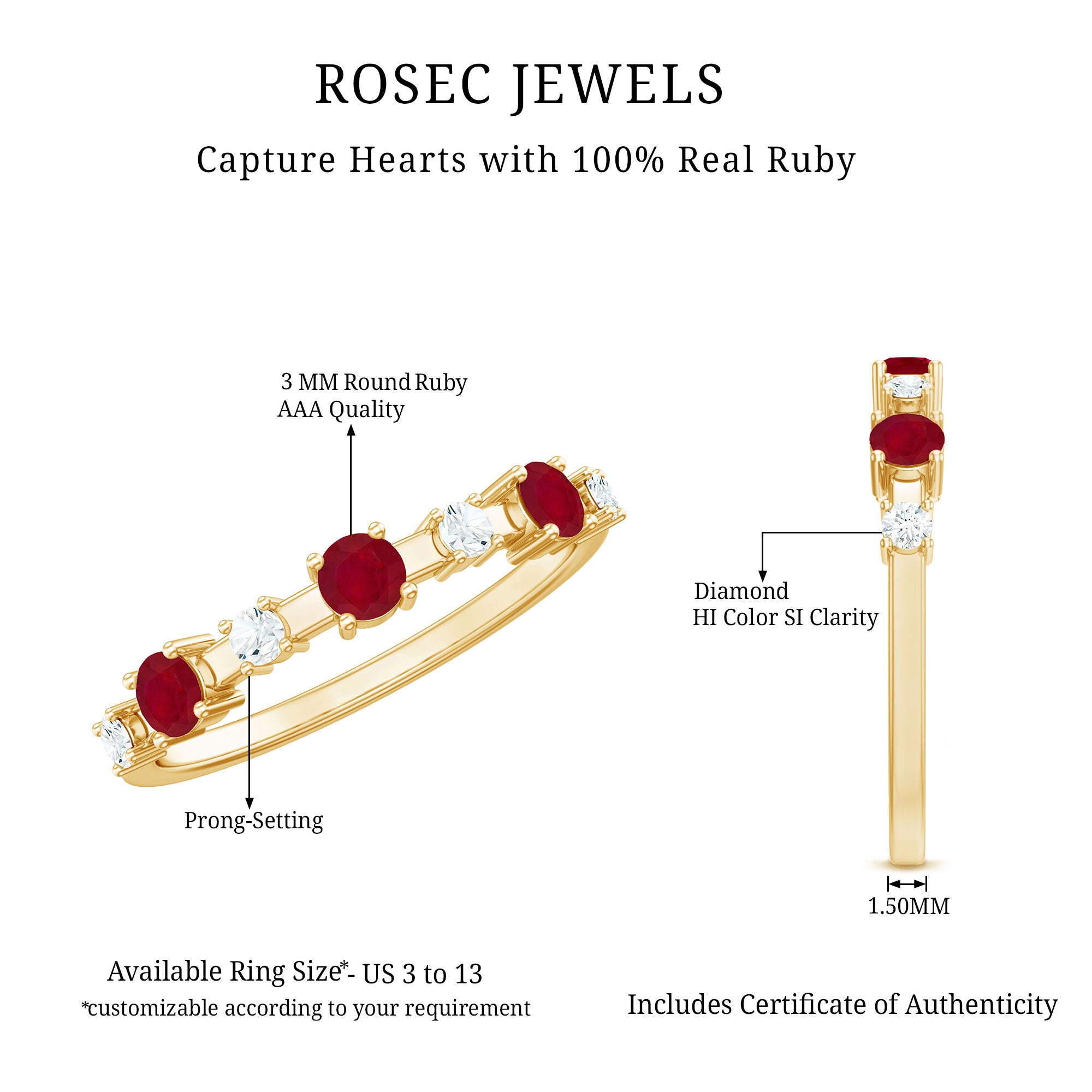 Experience lasting beauty with this Half Eternity Ring adorned with Ruby and shimmering Diamond gemstones, a captivating blend of elegance and brilliance.