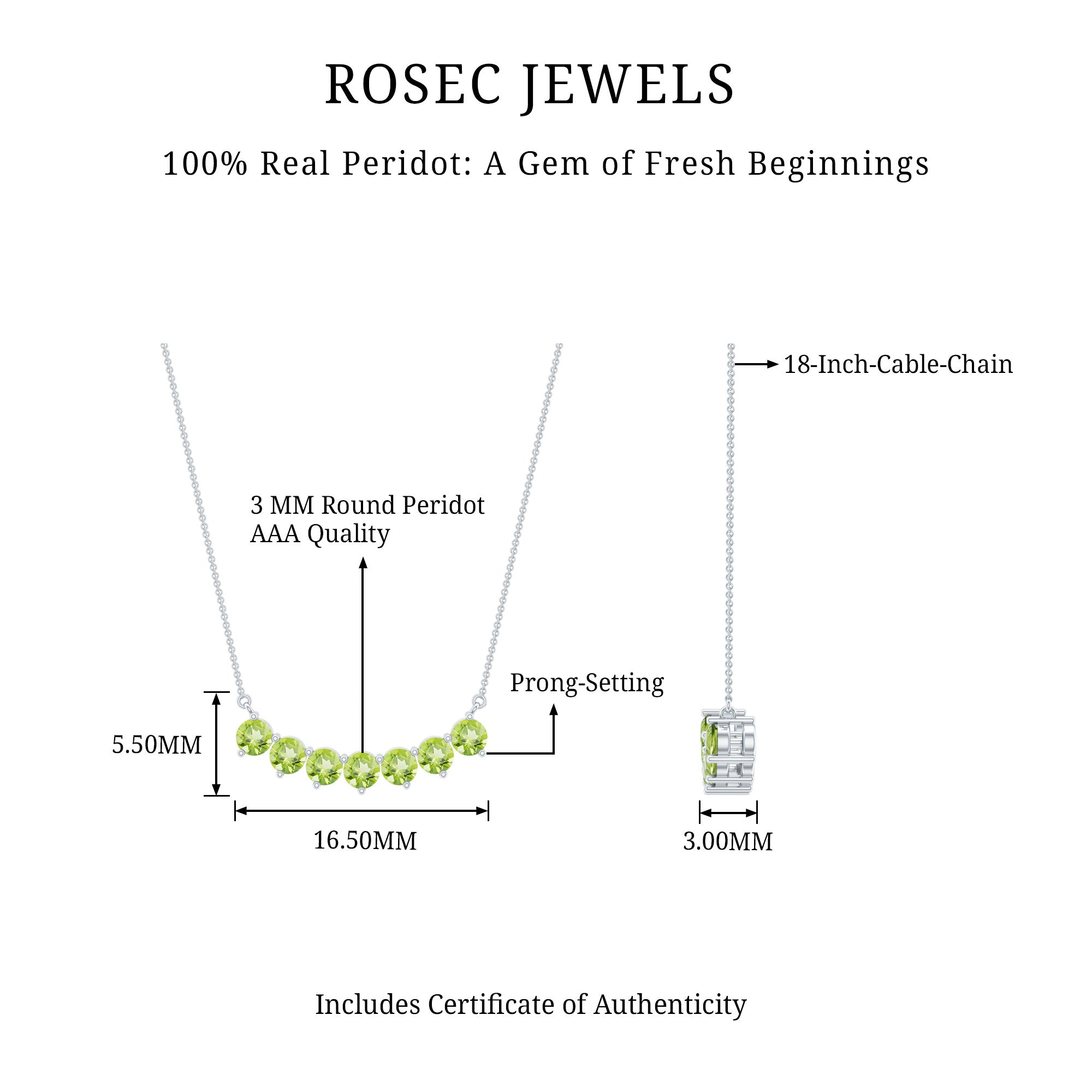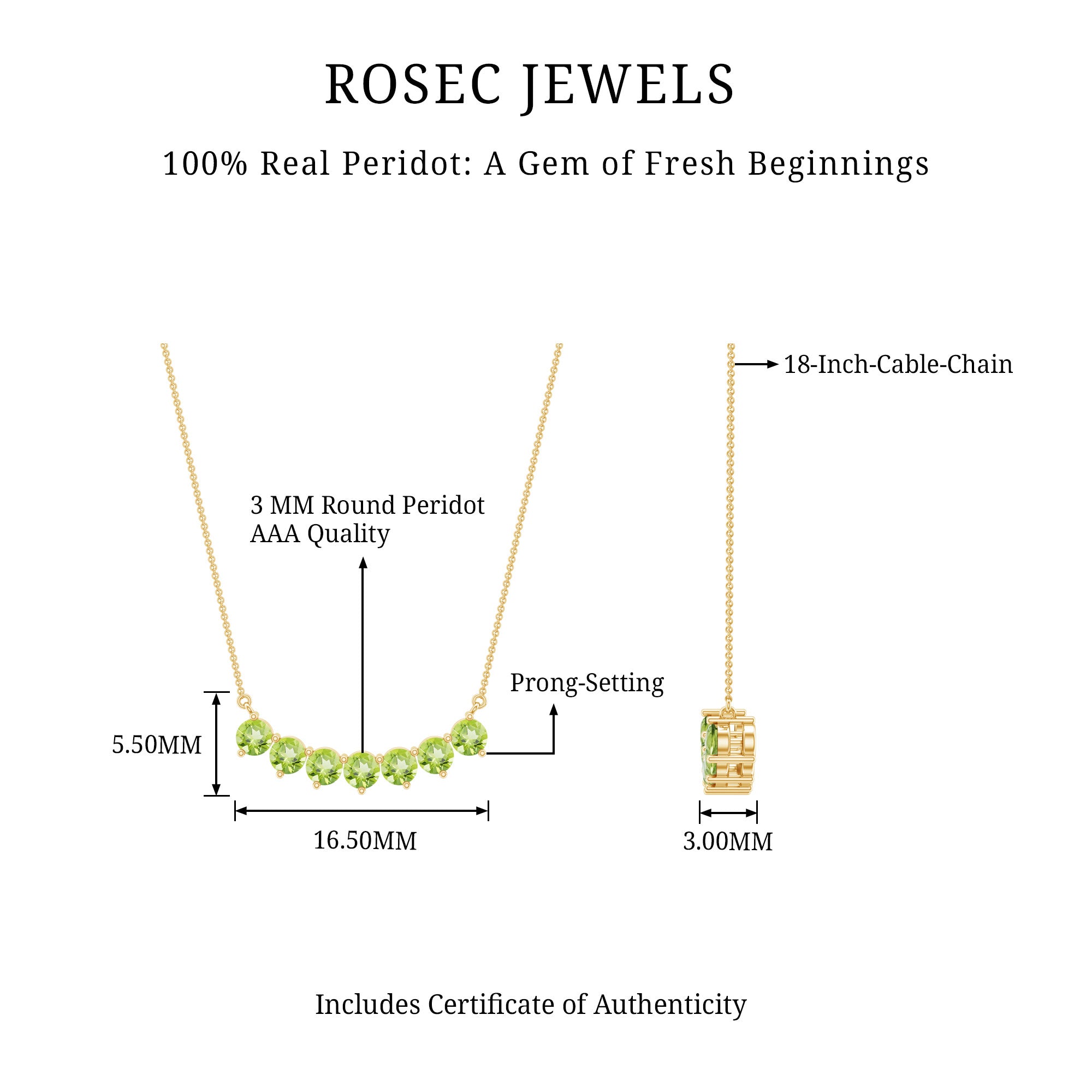 The Bar Necklace is embellished with Round Shape Peridot Gemstone in 3 Prong Setting. Grab this Seven Stone Bar Necklace to gift to your Valentine which she will admire a lot.