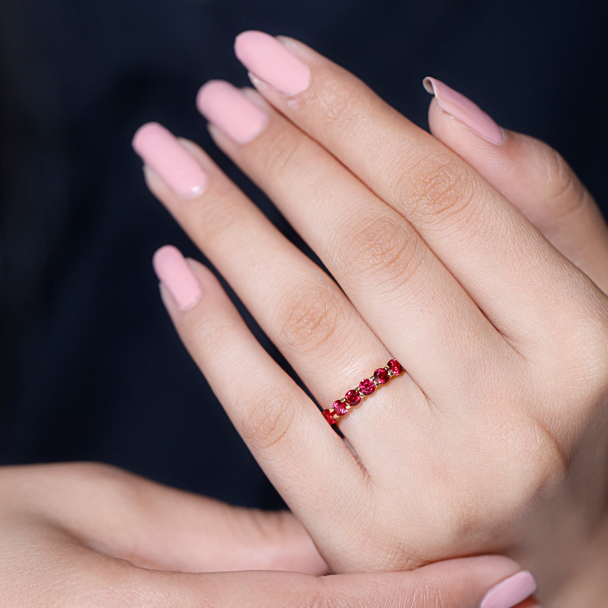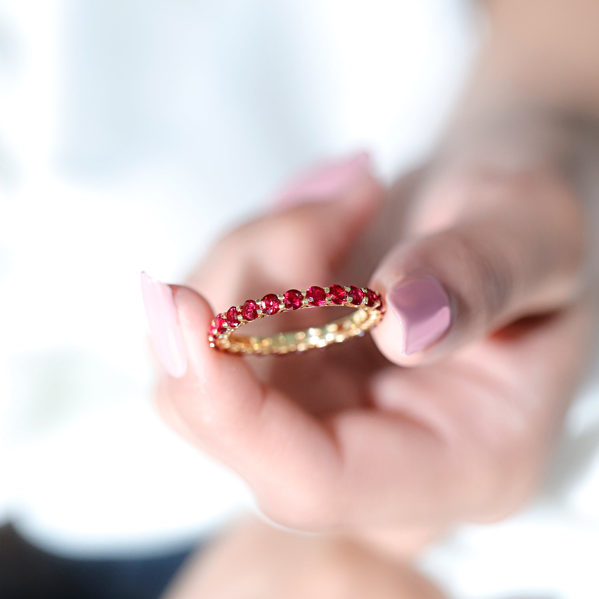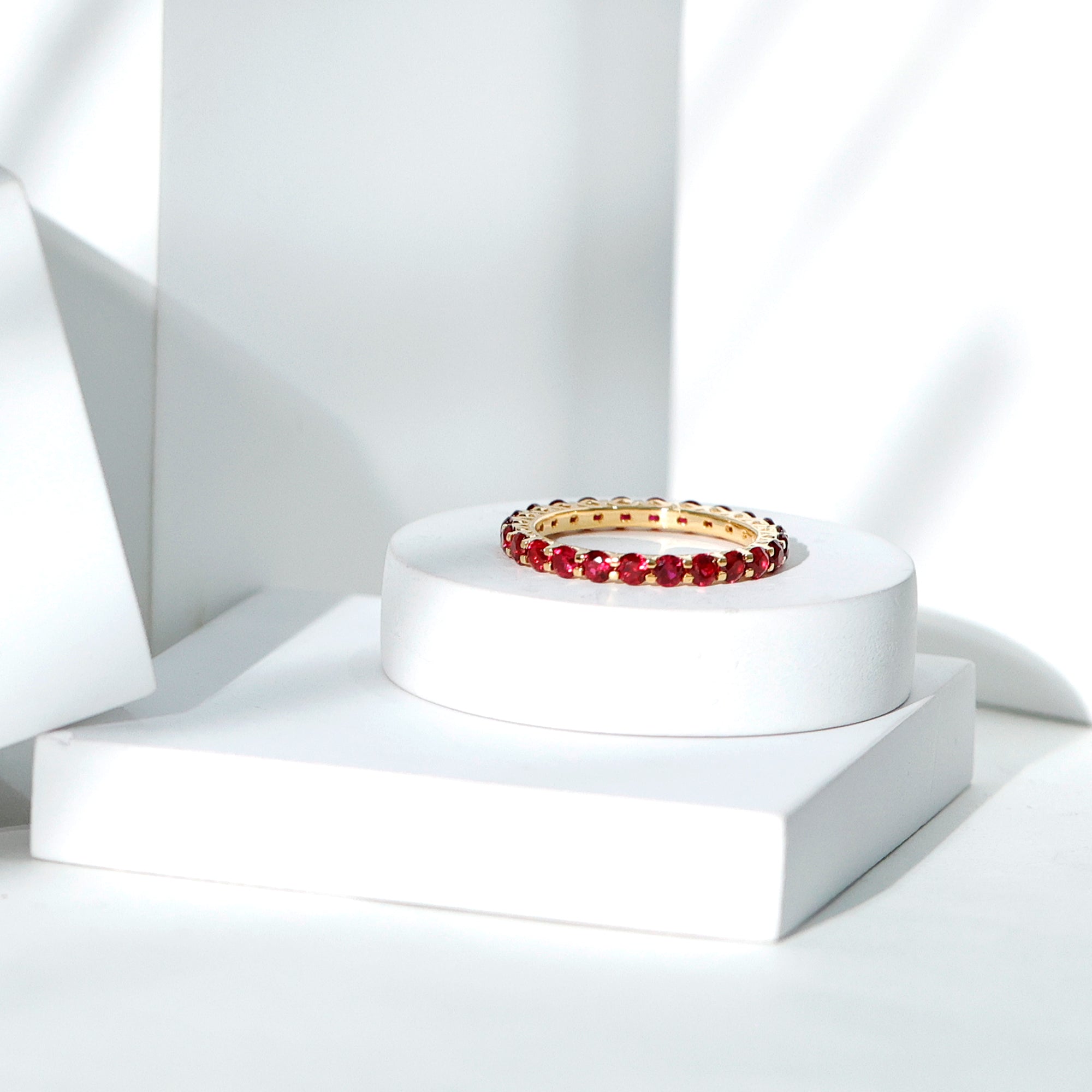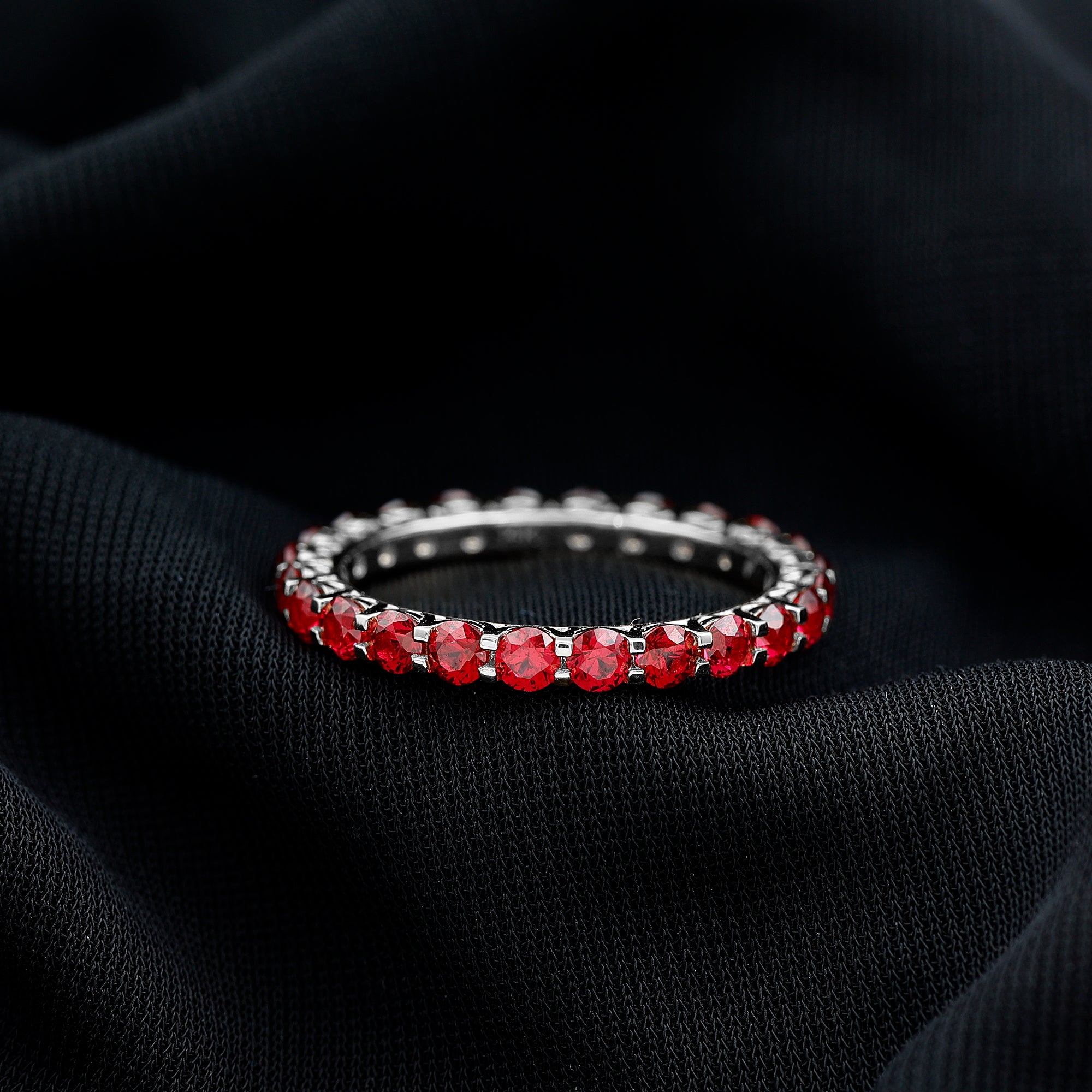 Shared Prong Set Round Created Ruby Full Eternity Band Ring