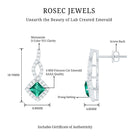 • These Princess Cut Emerald Earrings display the classic brilliance of AAAA Quality lab emerald and D color with VS1 clarity moissanite, making them an ideal accessory for your special day.